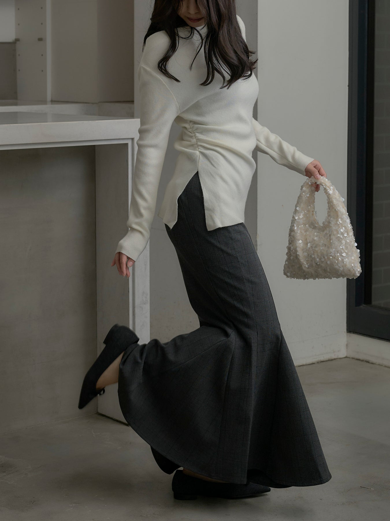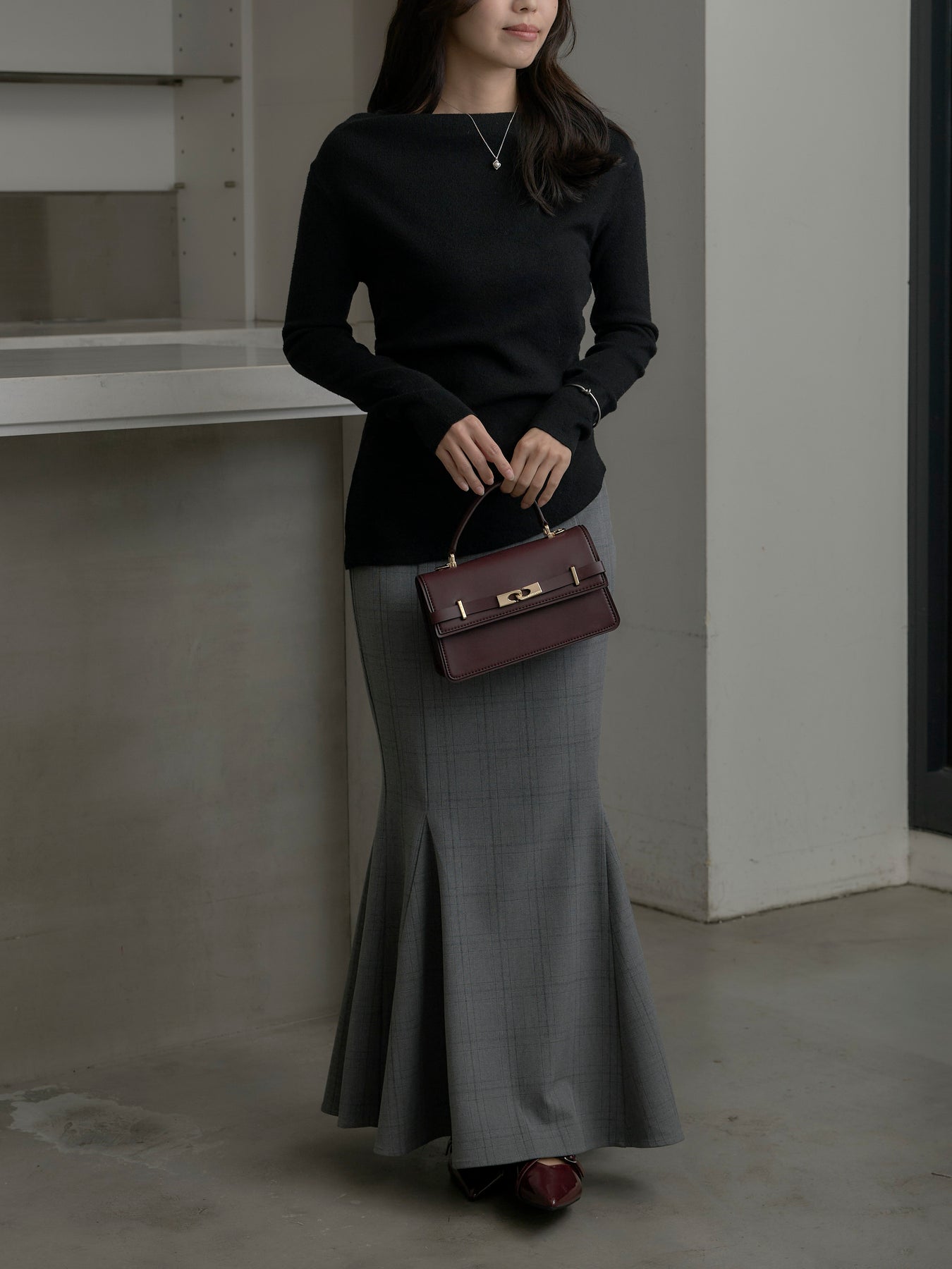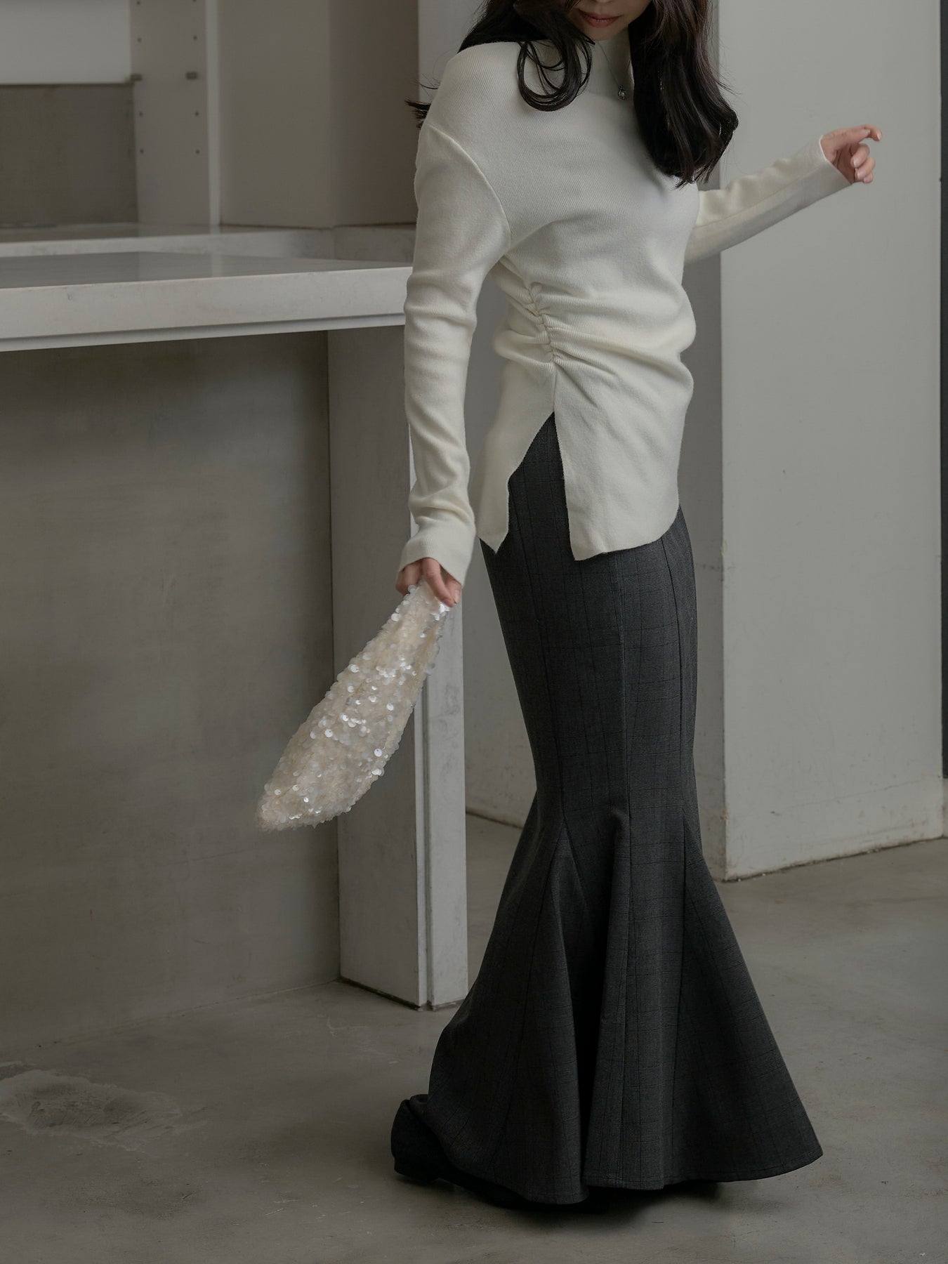 上品なチェック柄が印象的なマーメイドスカート。