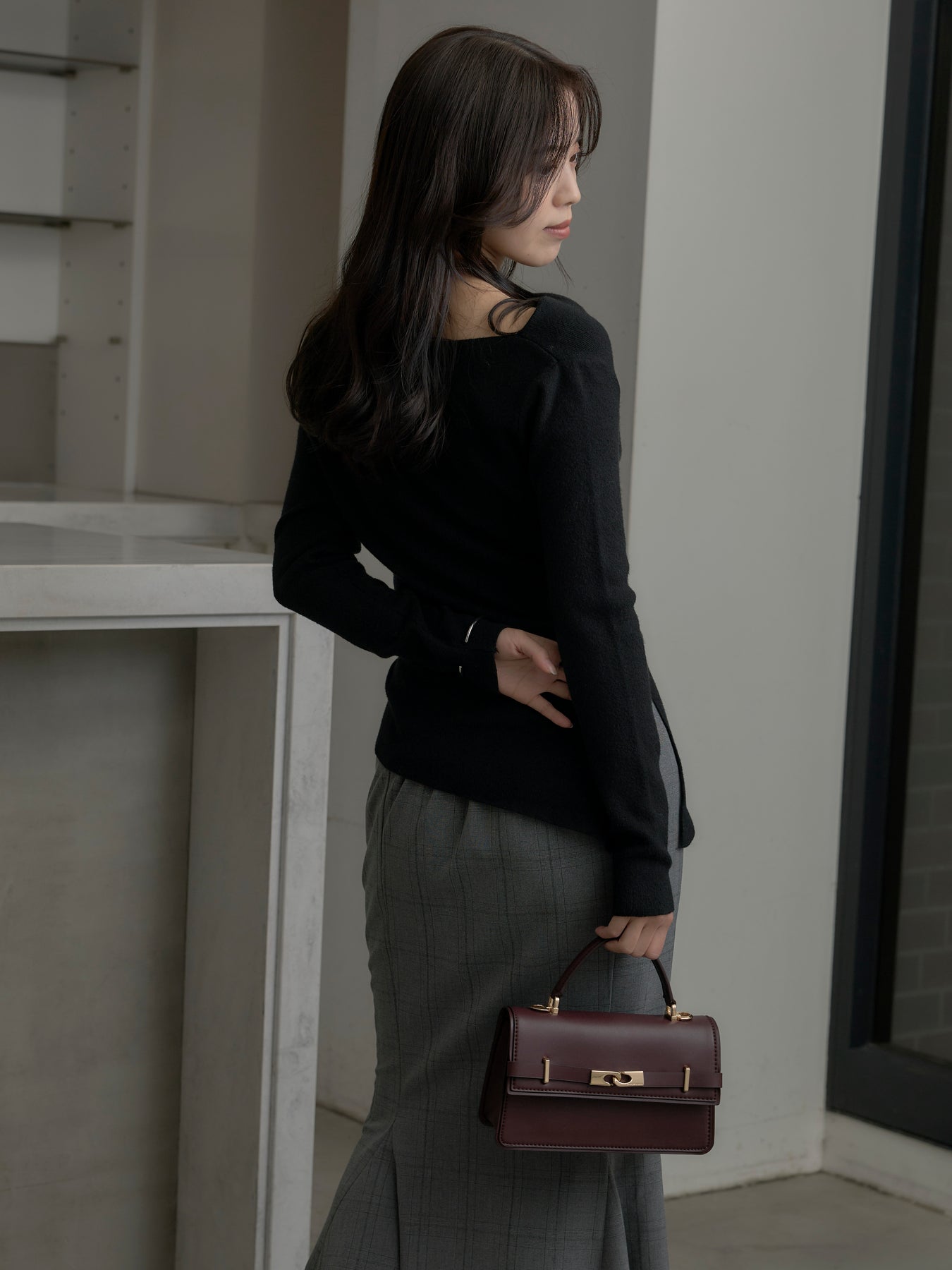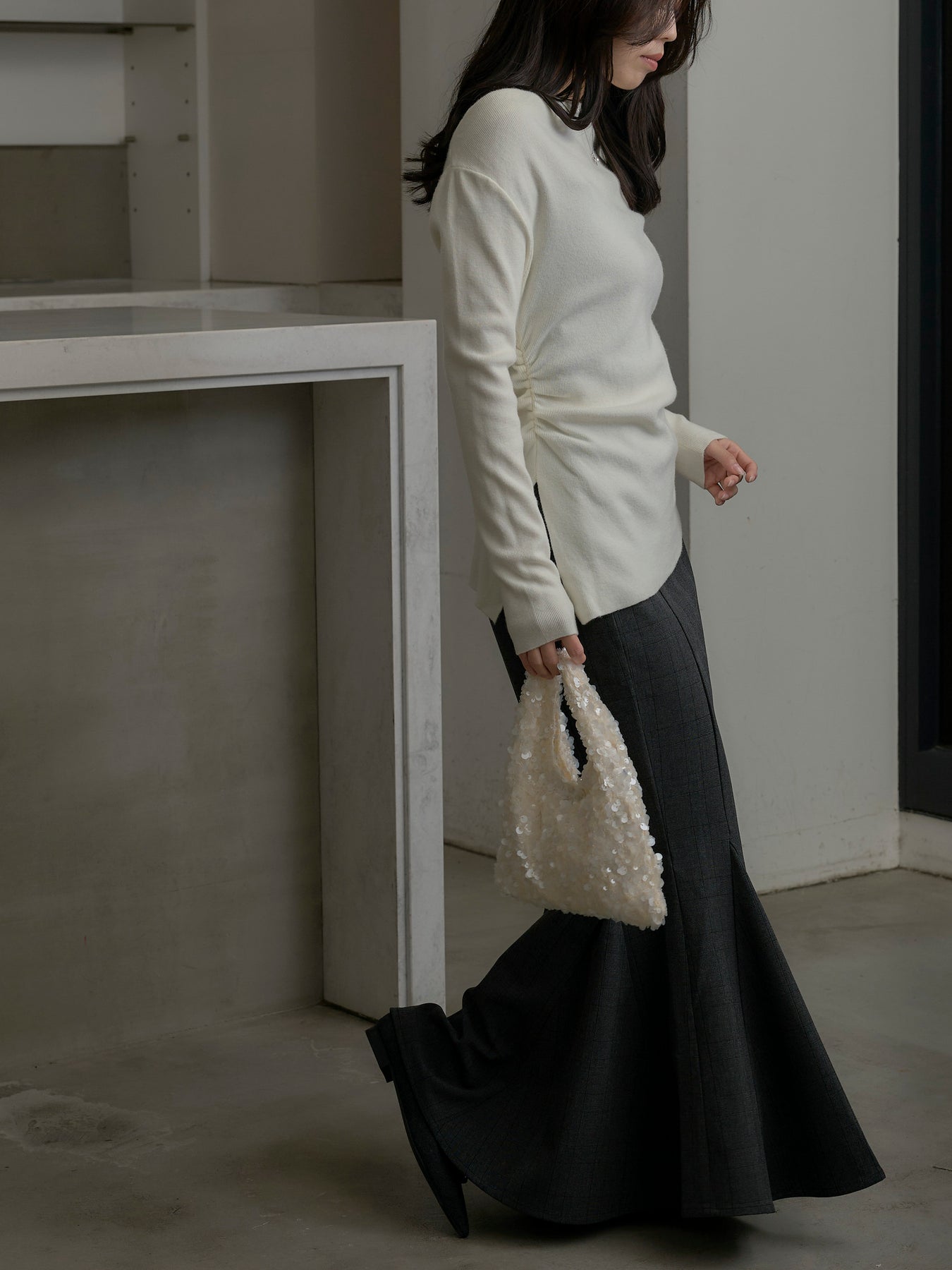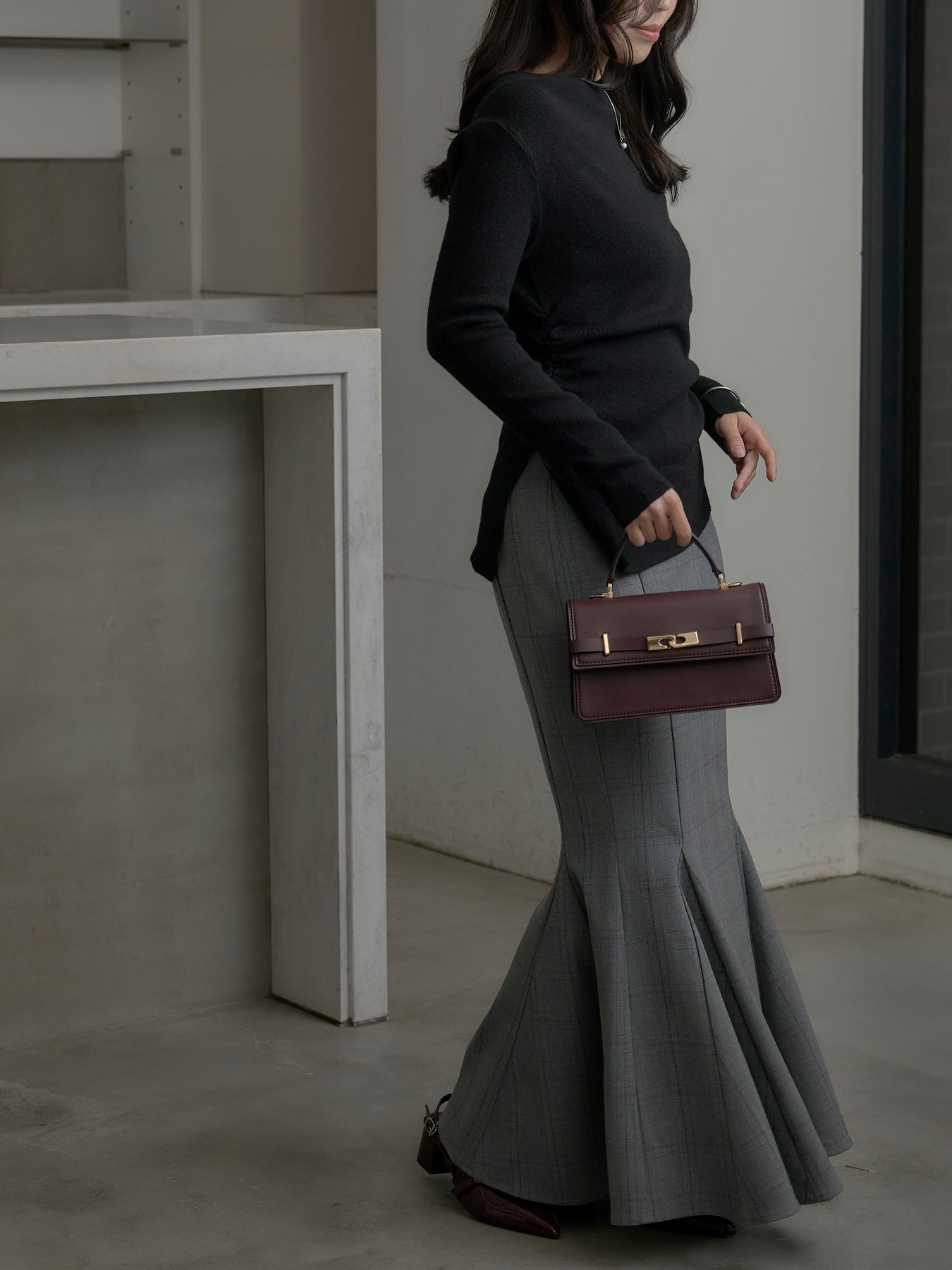 上品なチェック柄が印象的なマーメイドスカート。