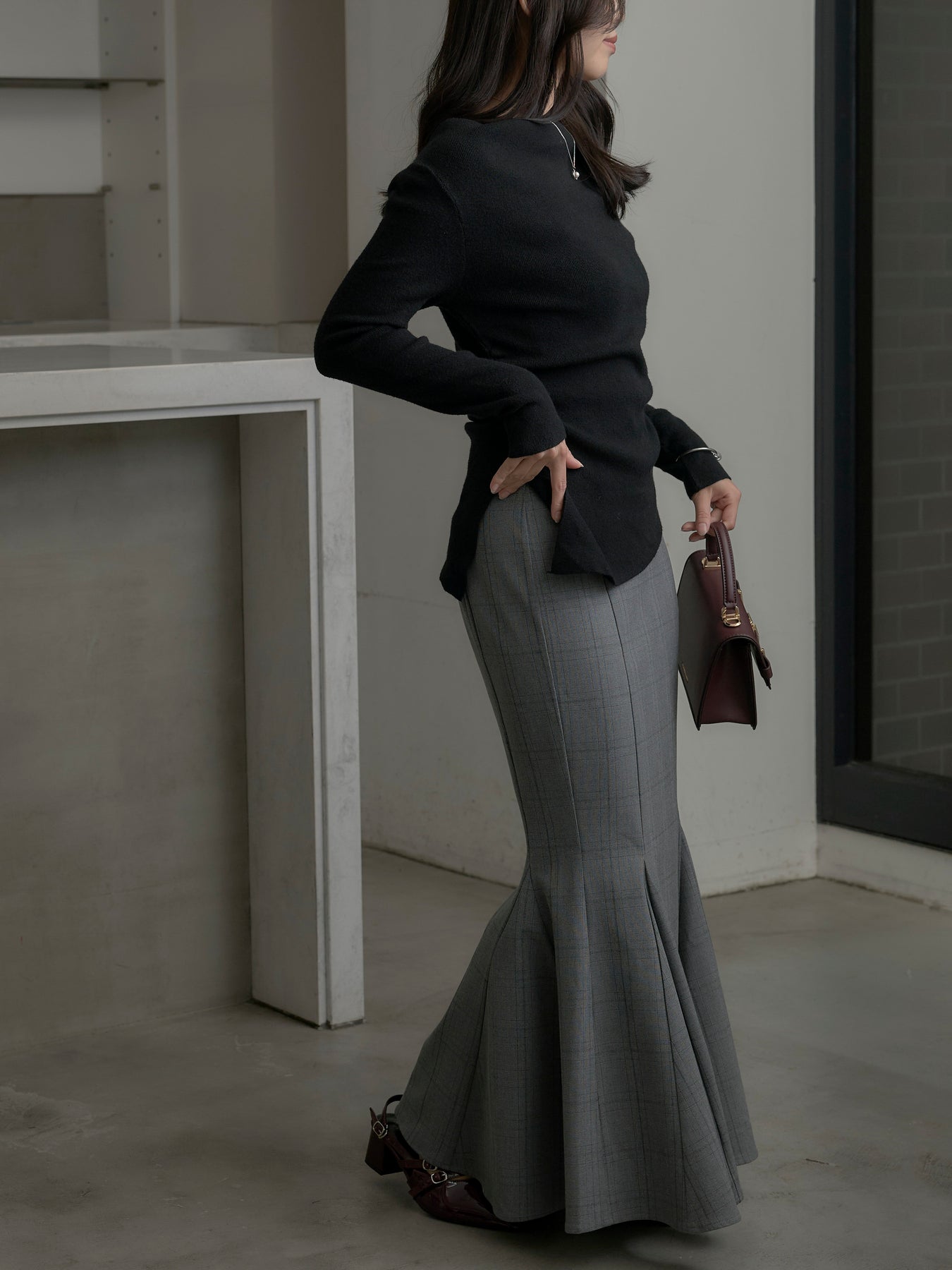 ◆ 【Essential】チェック柄マーメイドスカート
