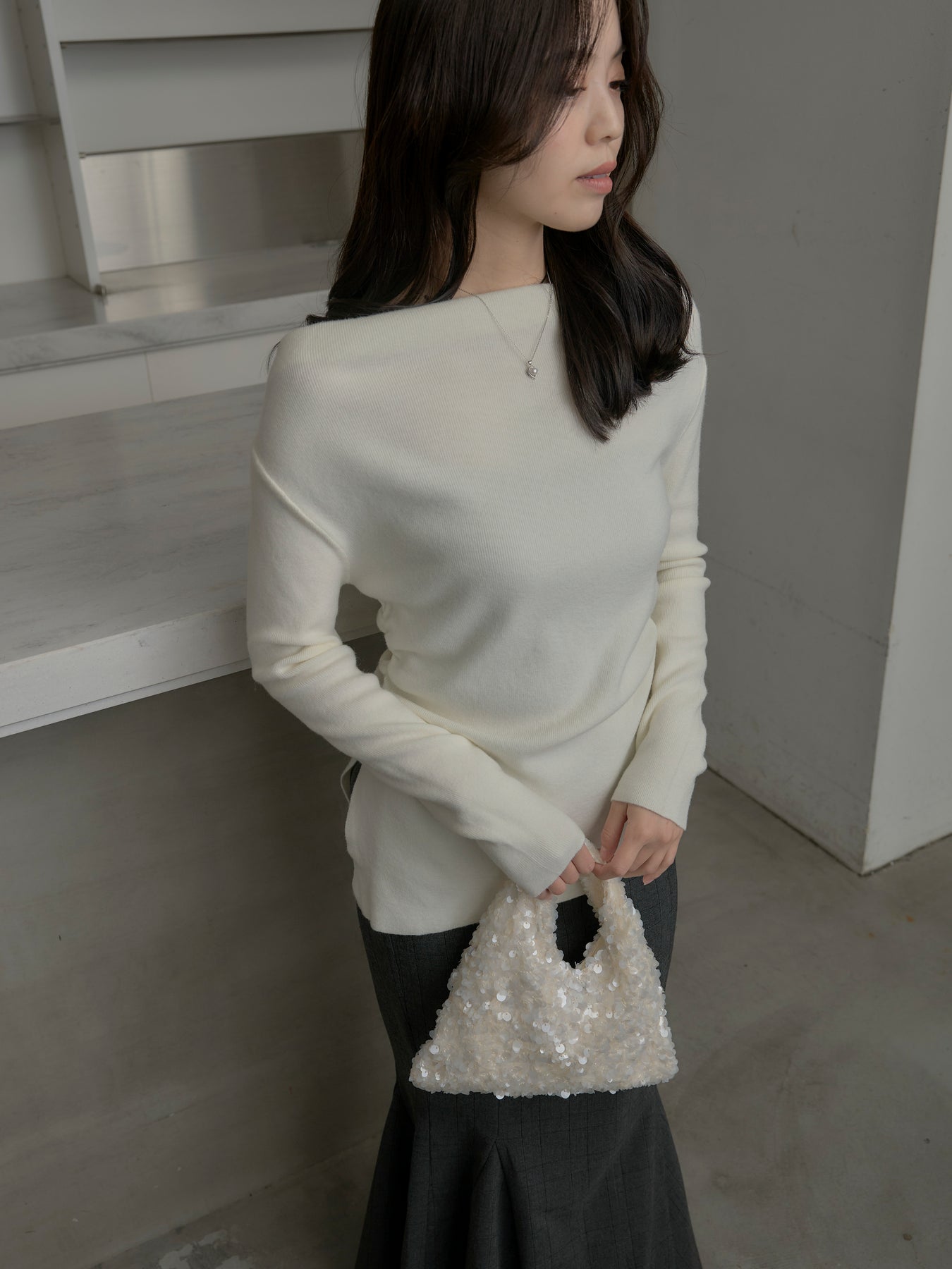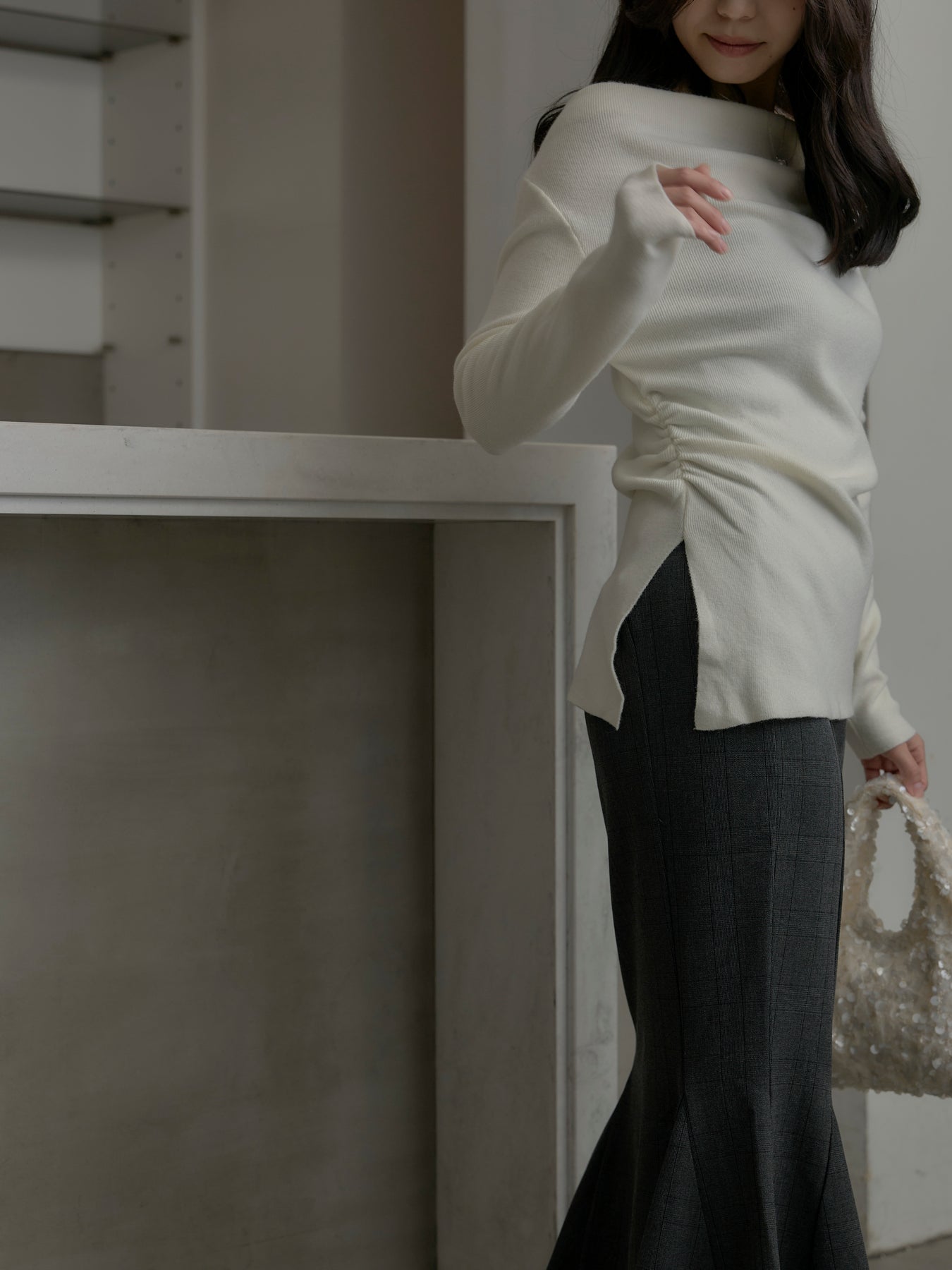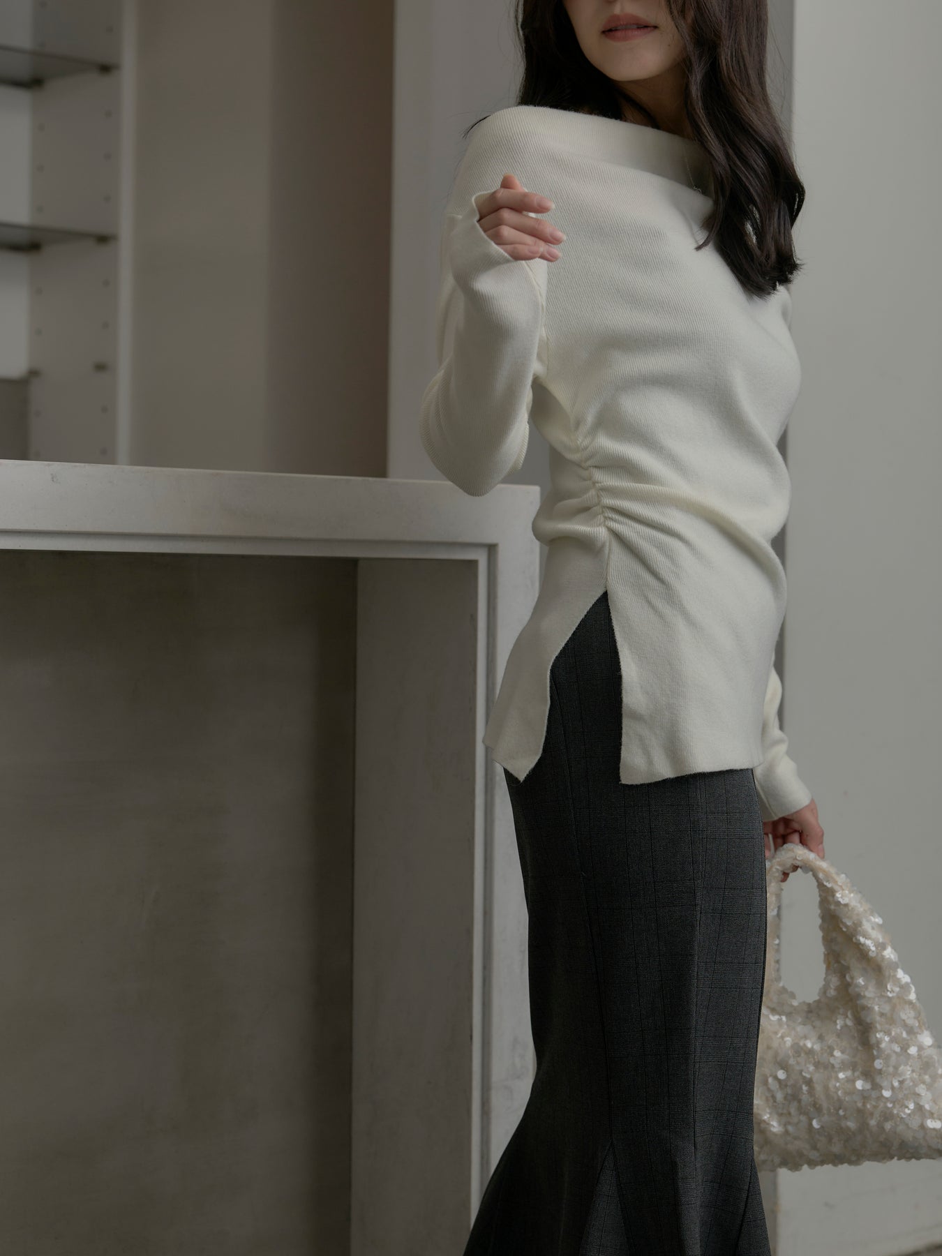 ◆ サイドスリットボートネックニットトップス