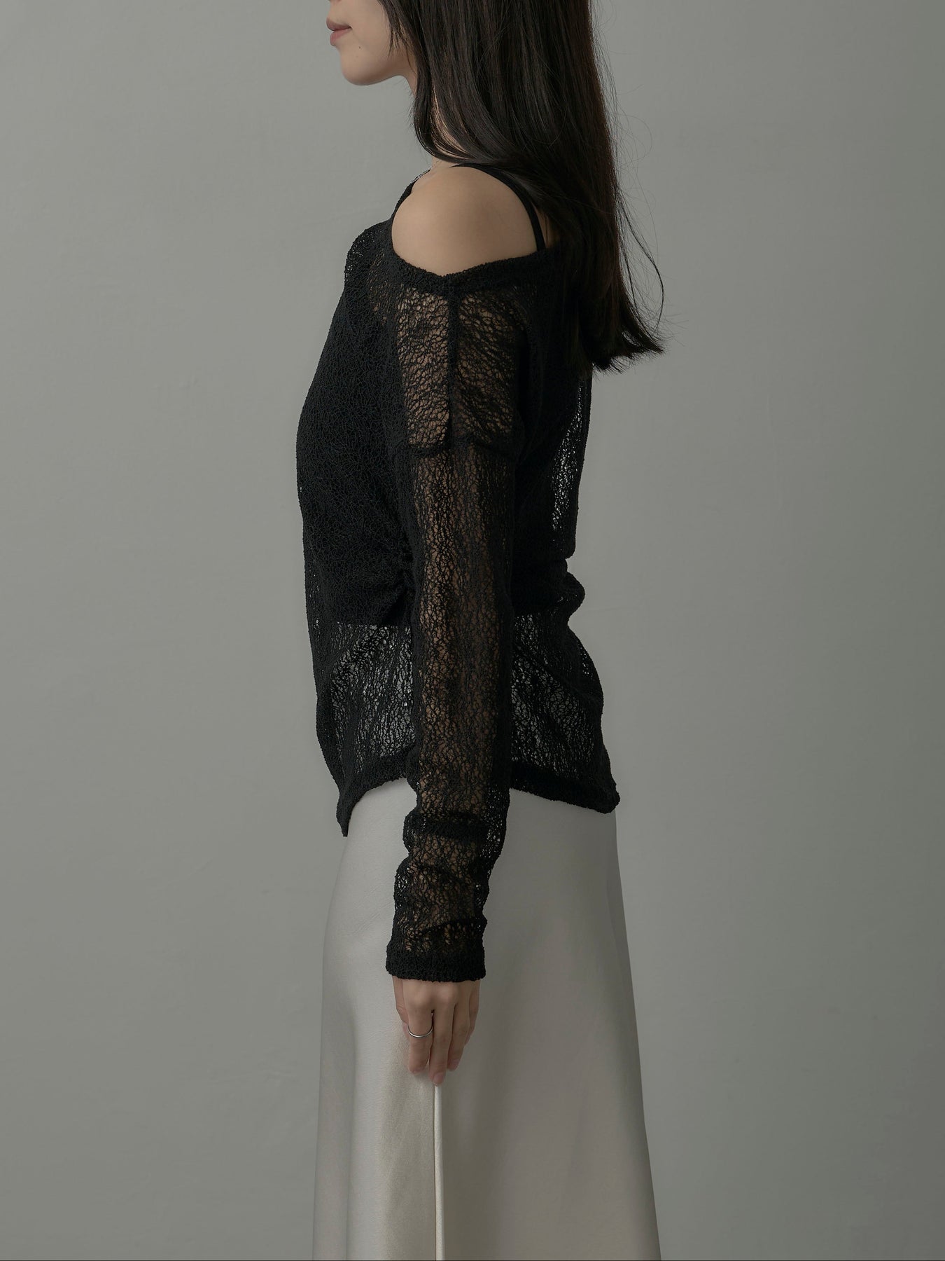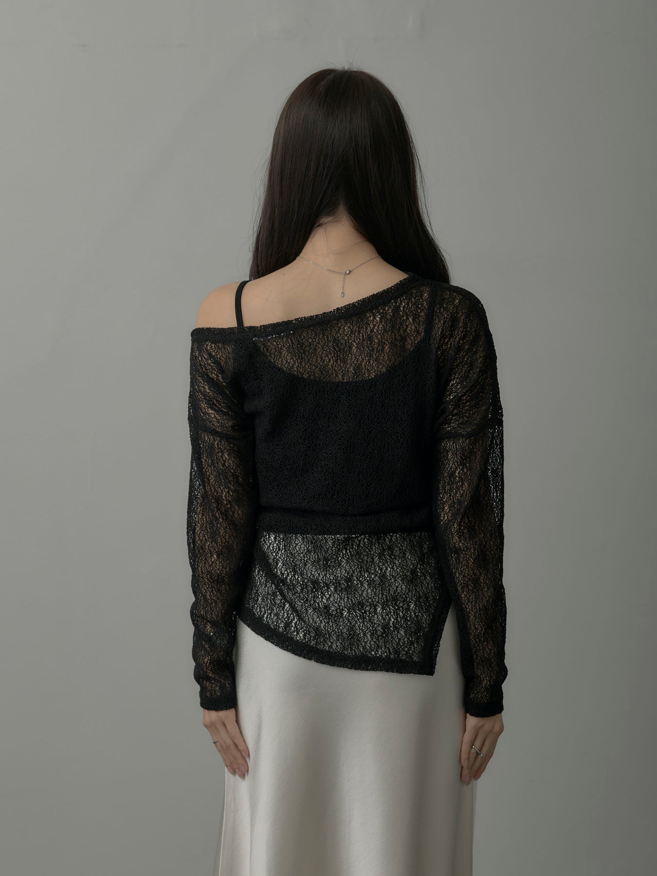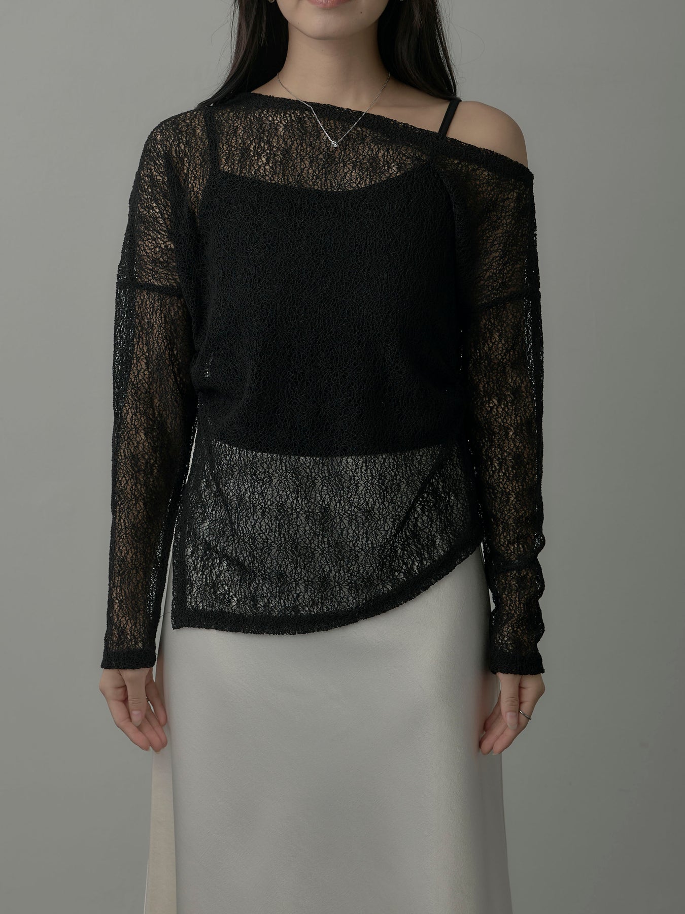 繊細なレース素材が印象的なシアートップス。ワンショルデザインが程よい透け感が抜け感を与えます。インナー付きなのも嬉しいポイント。秋冬アウターのインナーにもぴったりです。デイリーから特別なシーンまで幅広く活躍する一枚。