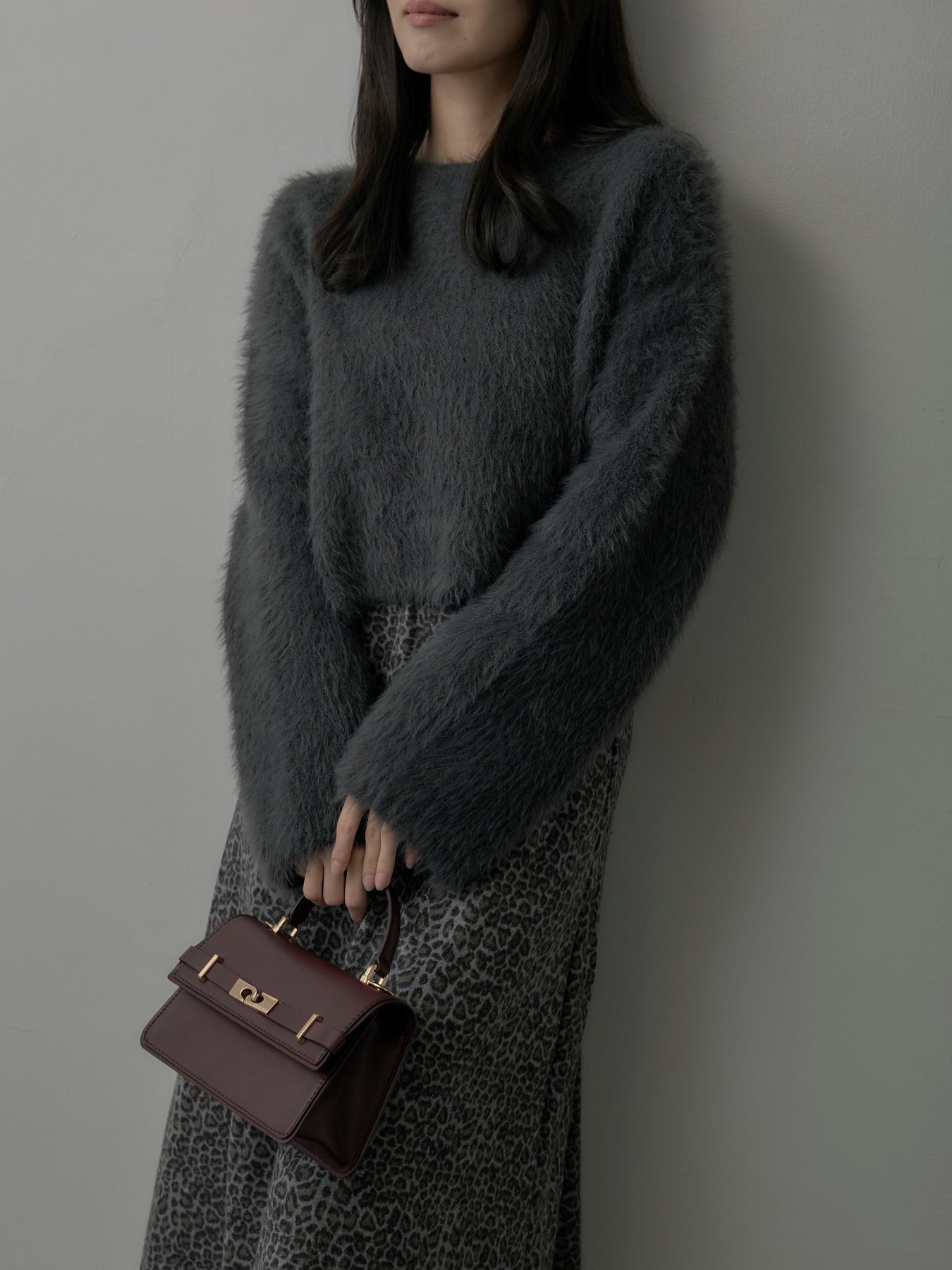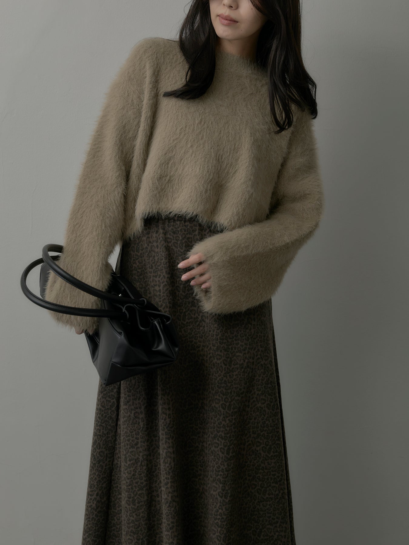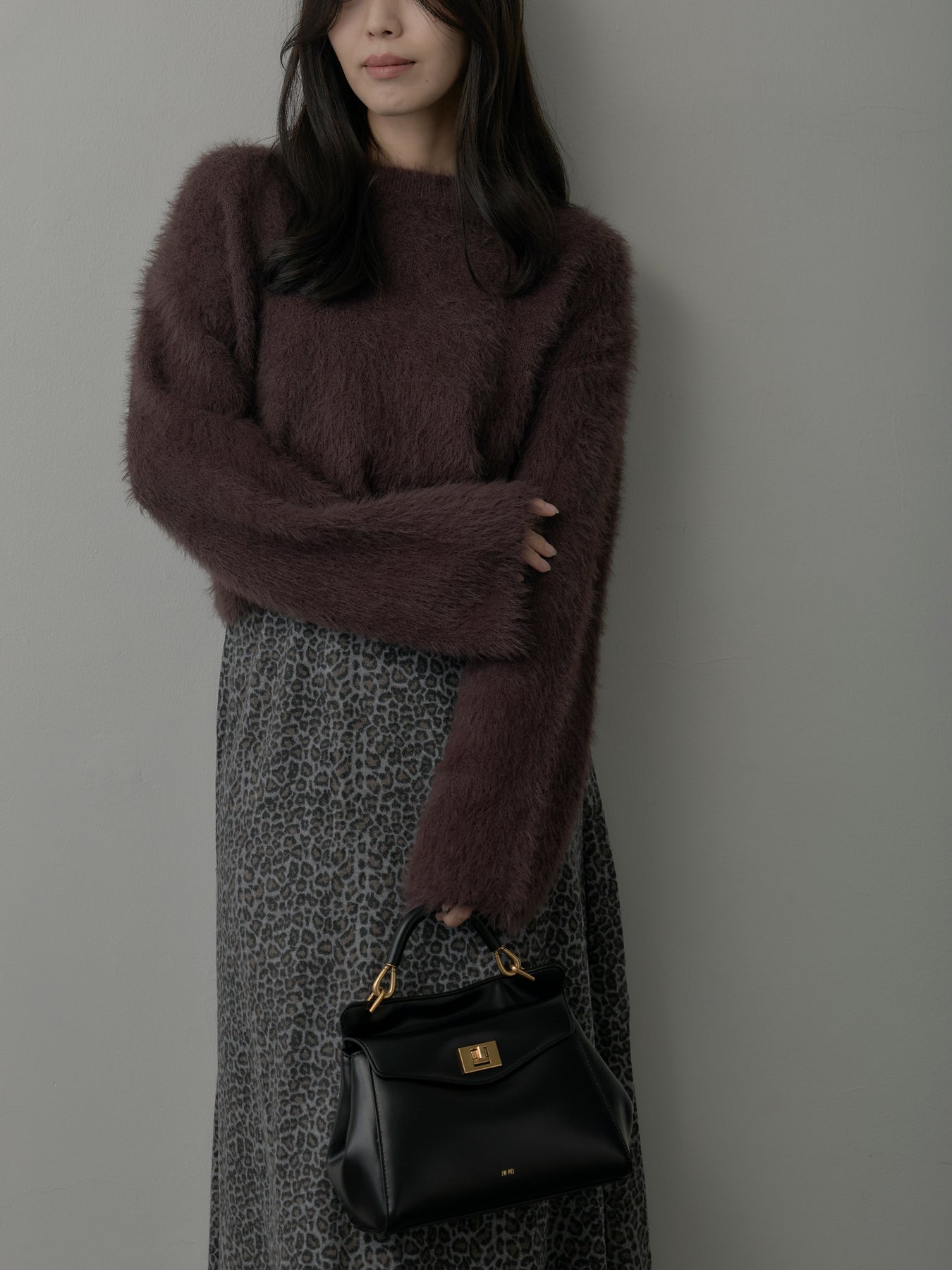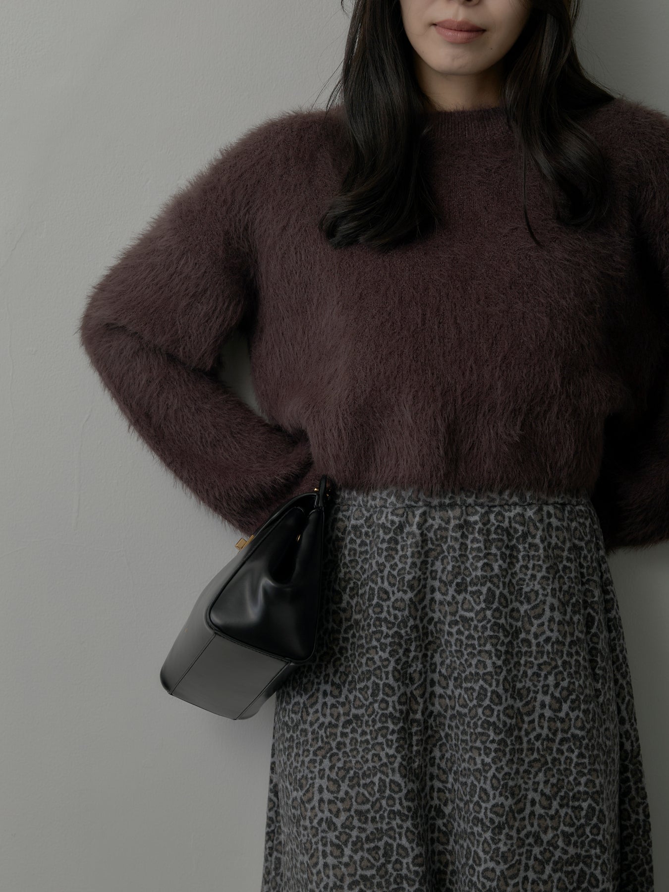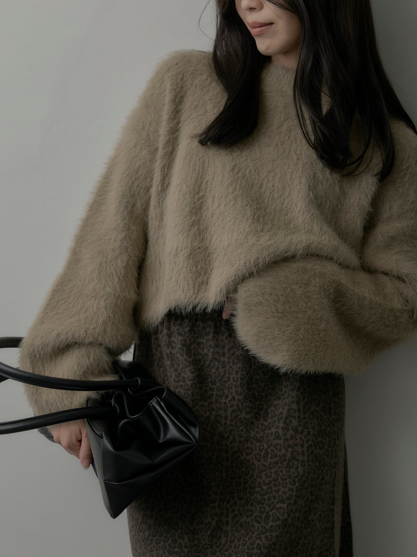 ふんわりとしたシャギー素材が季節感たっぷりのクロップドニットトップス。