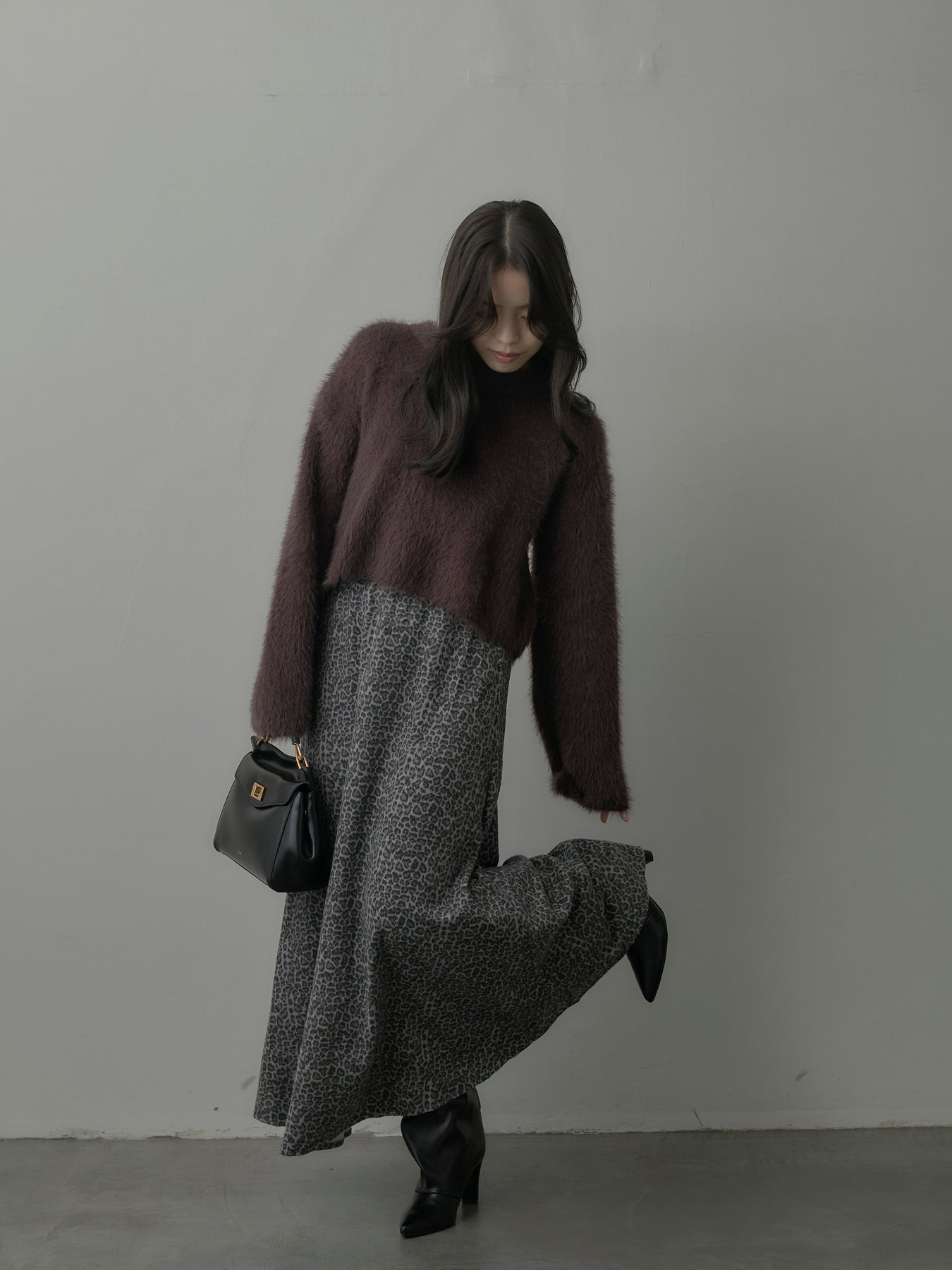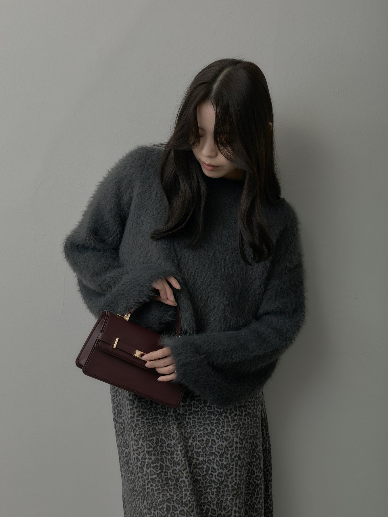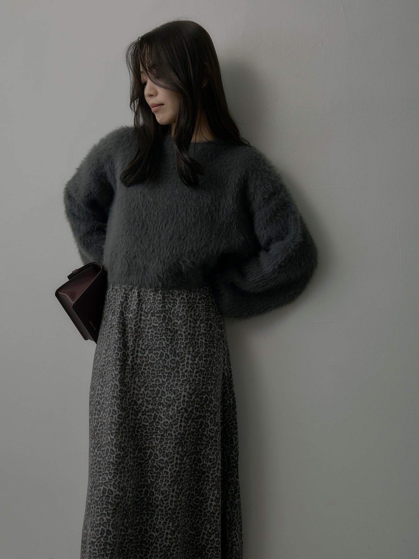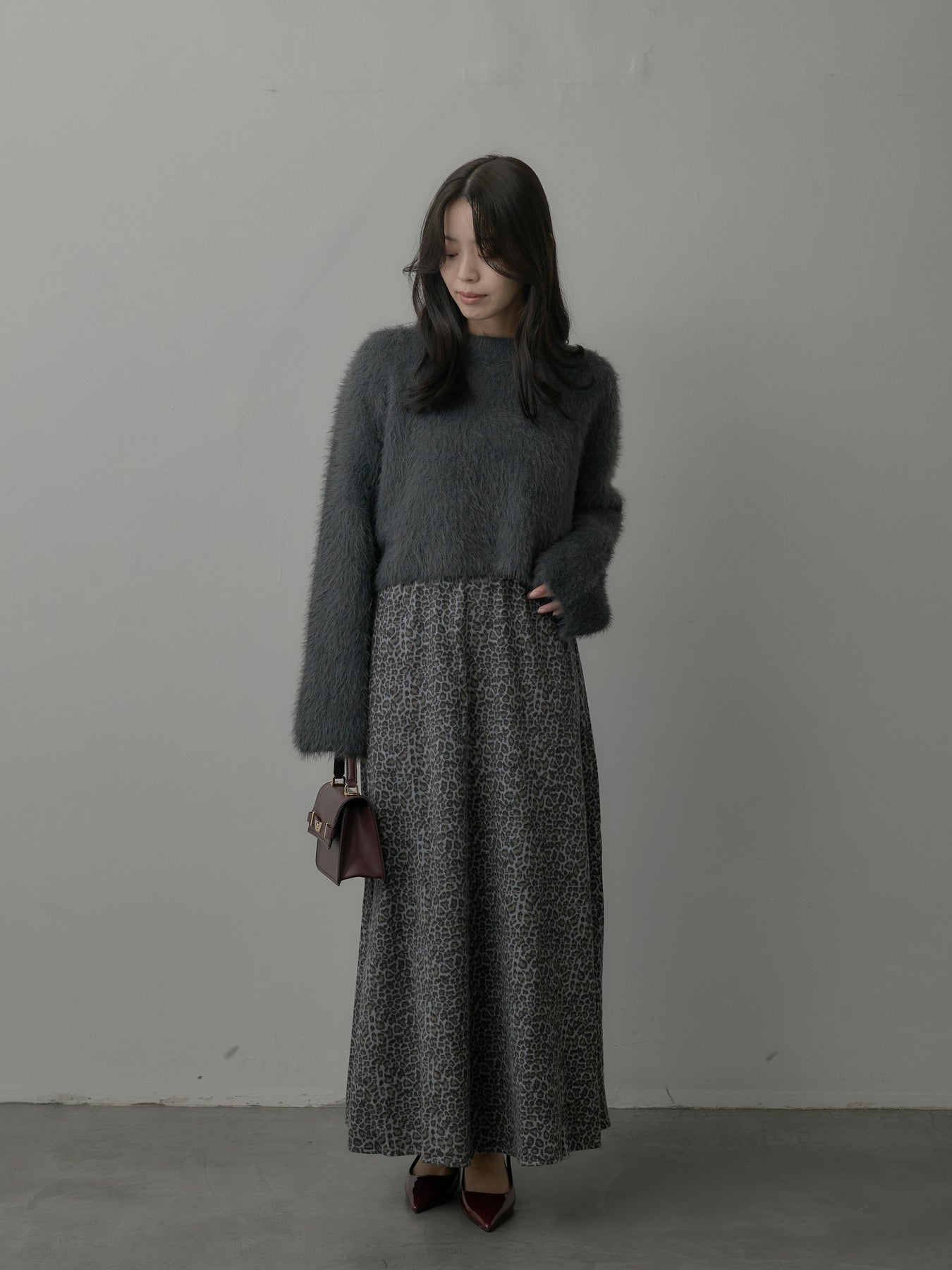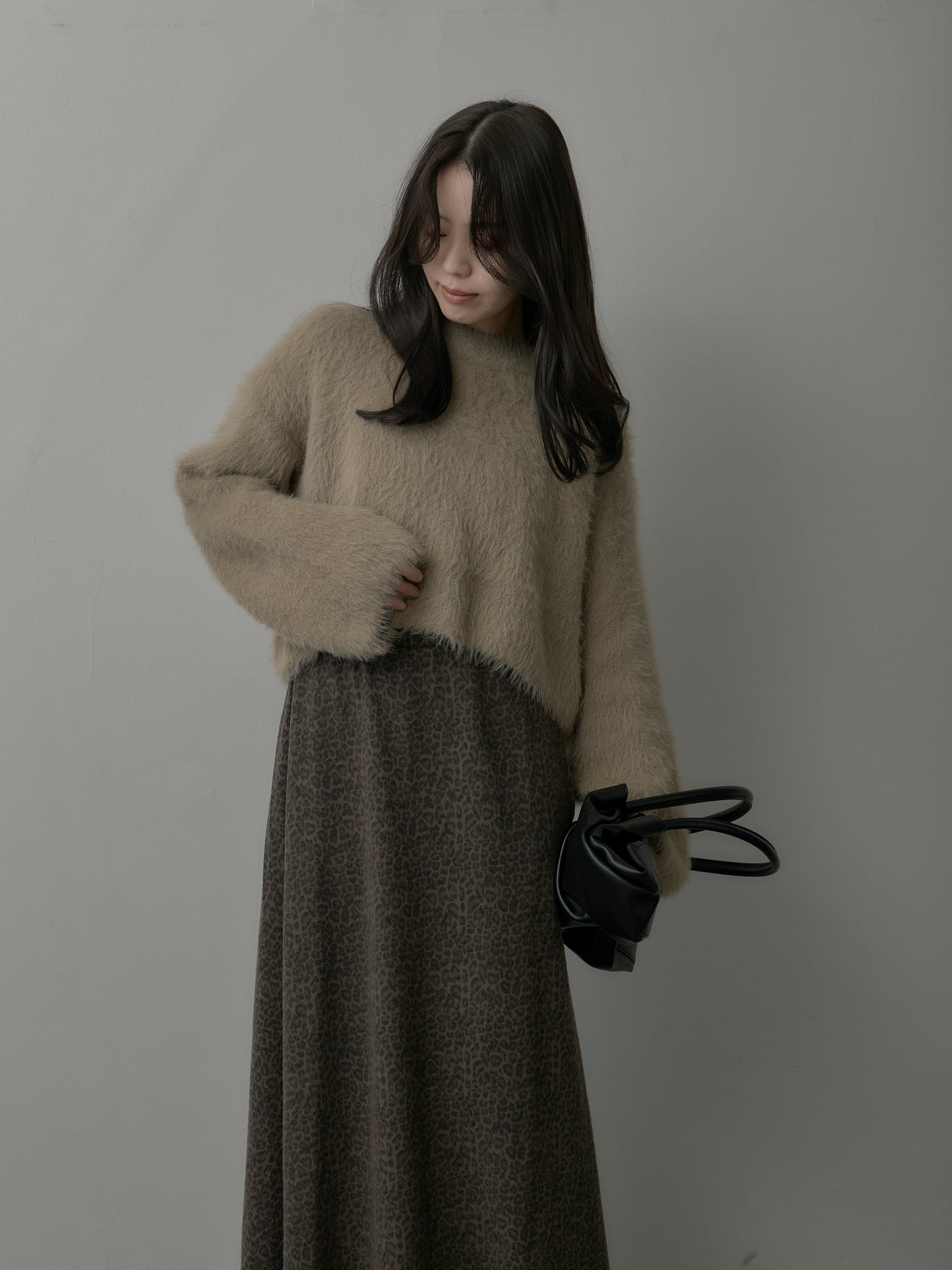 ふんわりとしたシャギー素材が季節感たっぷりのクロップドニットトップス。