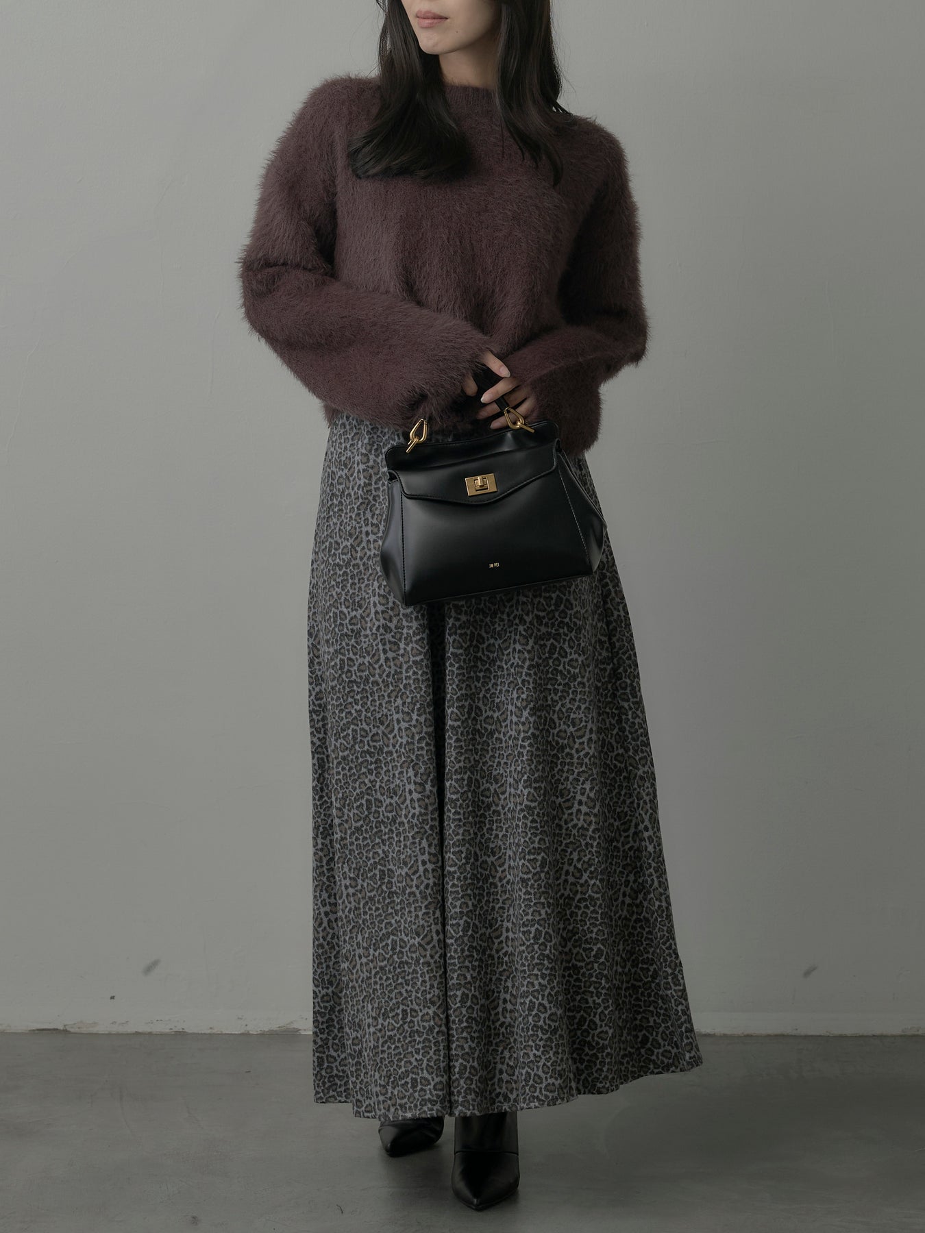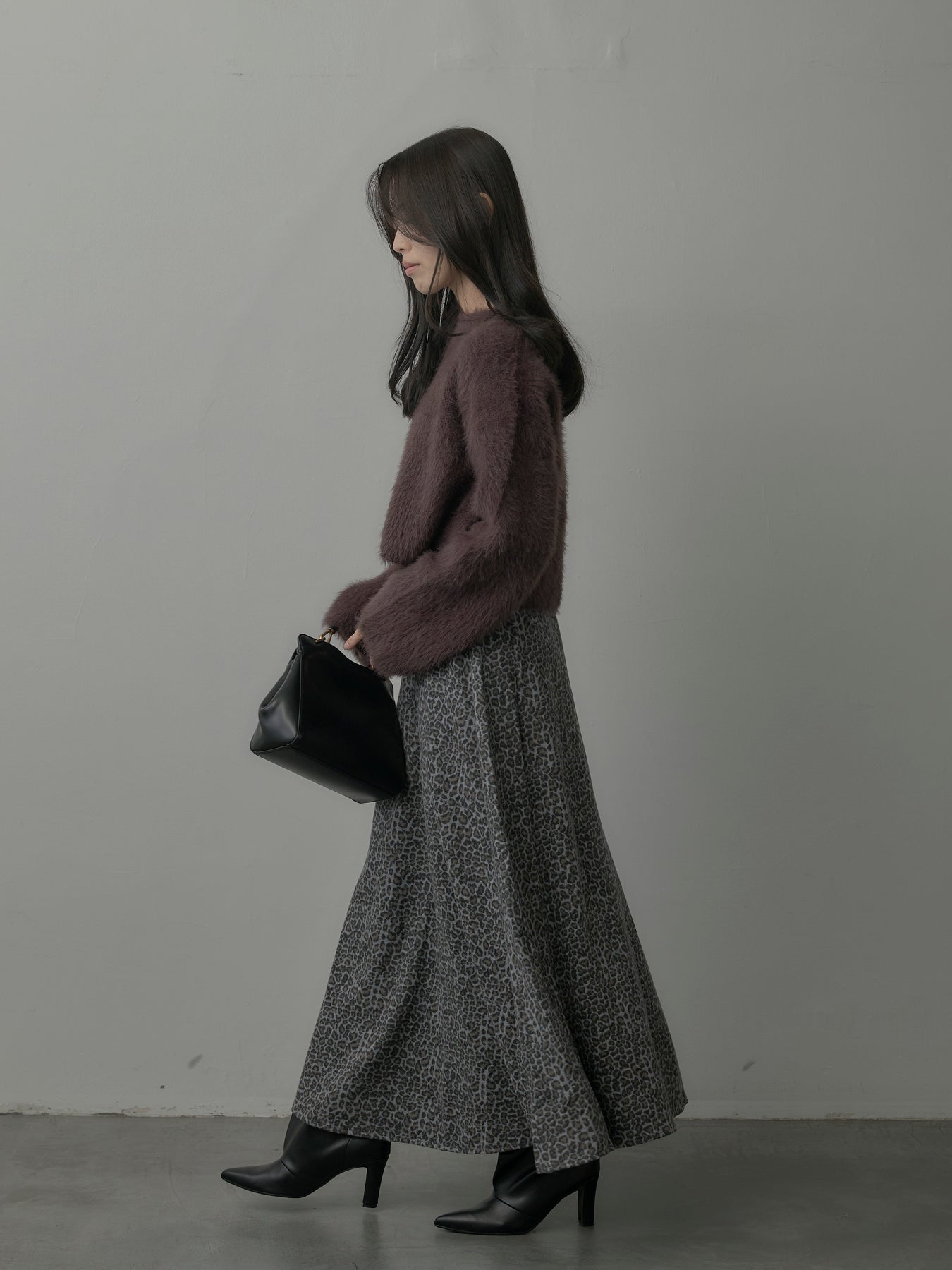 存在感のあるレオパード柄が目を惹くウールタッチのフレアスカート。