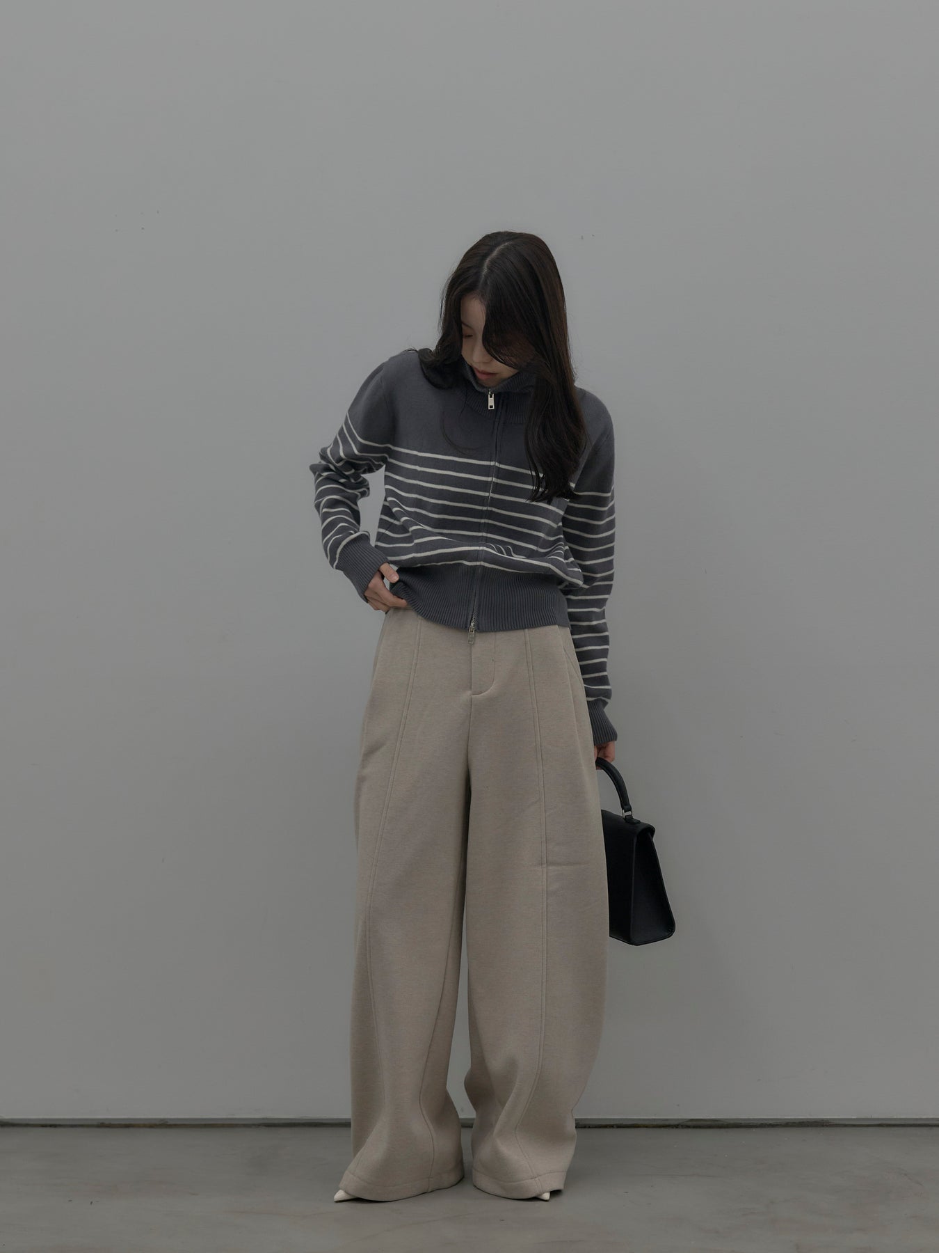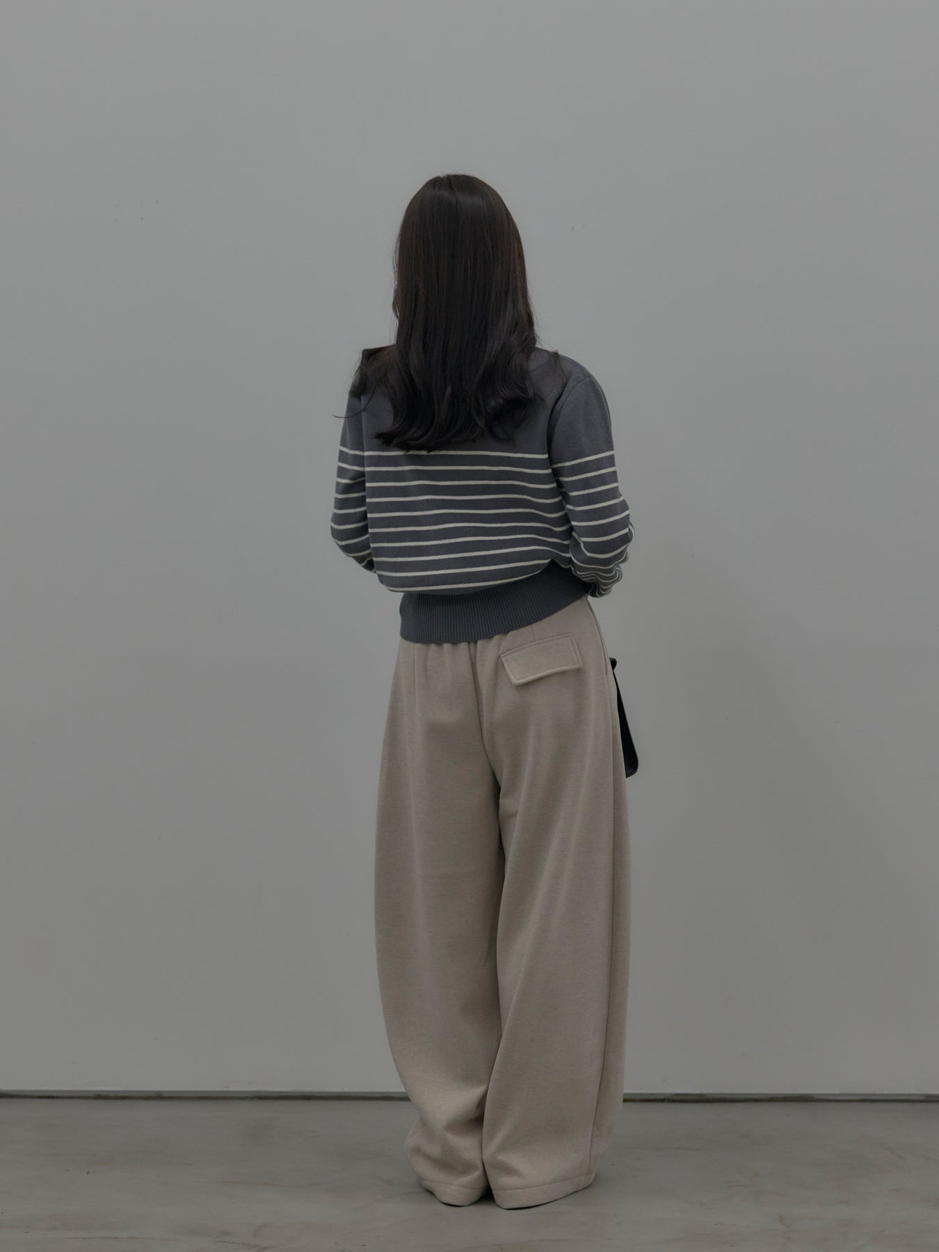 裏起毛素材であたたかく着られるセンターシームタックワイドパンツ。