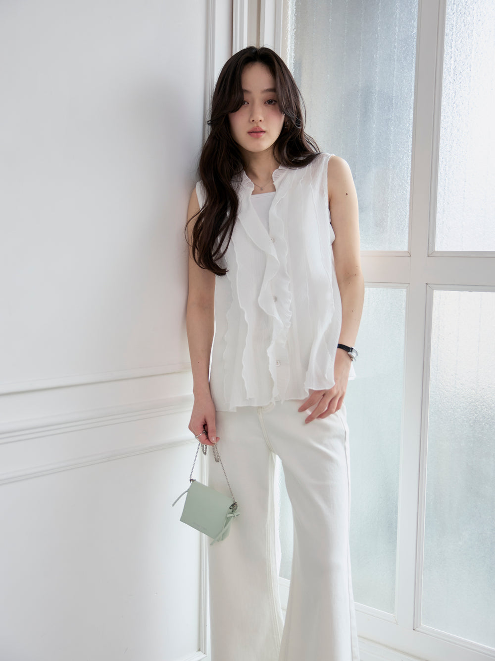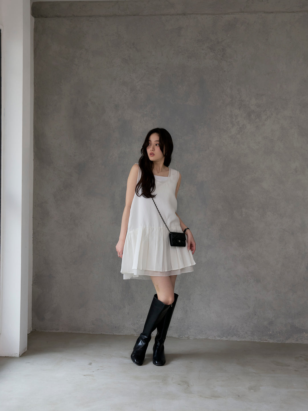 【SET】リネンタッチノースリトップス&透かし編みラップミニスカートSET+カットリブカップ付きバッククロスキャミソール(2set)