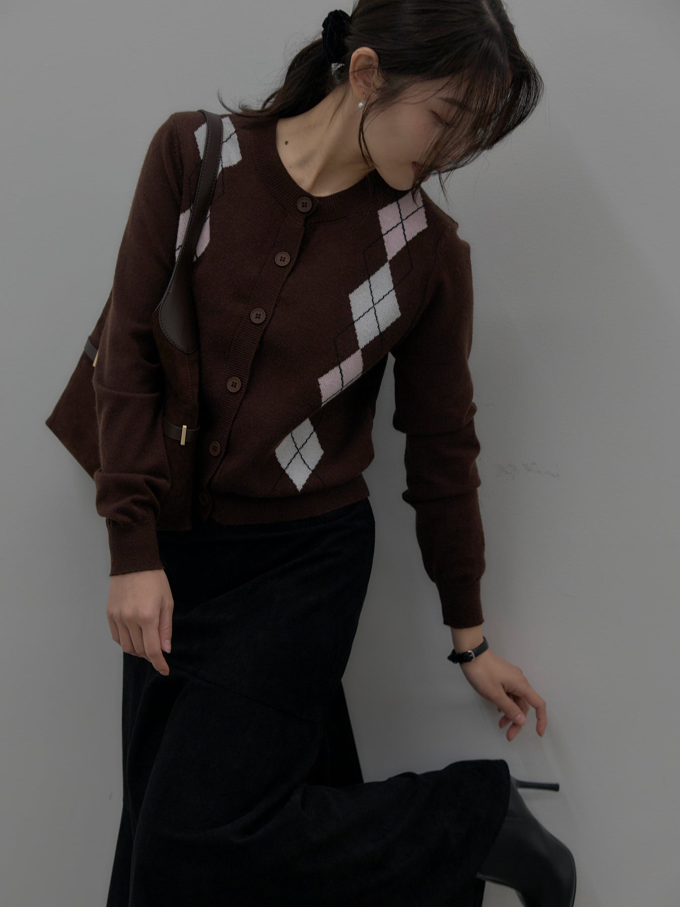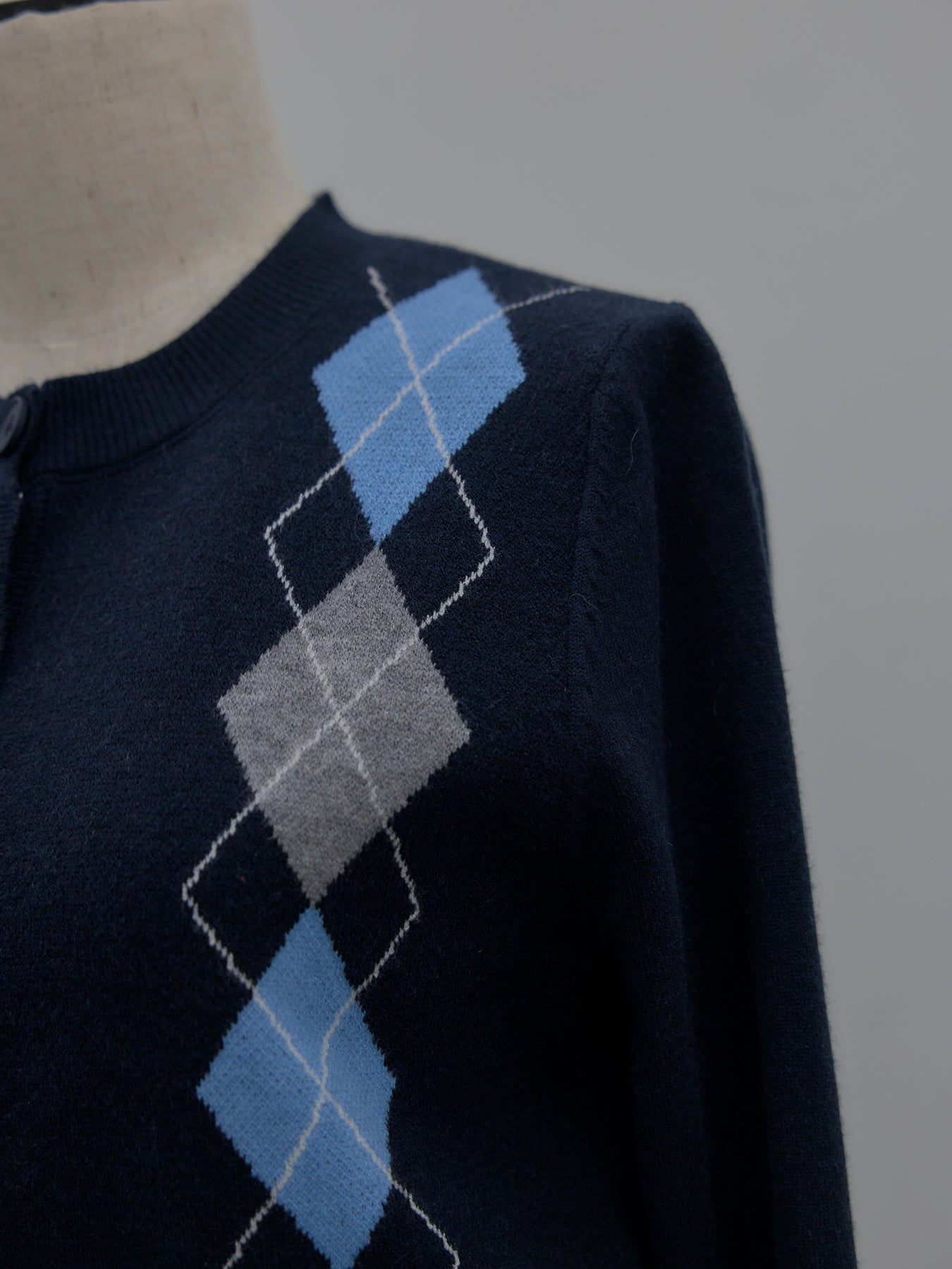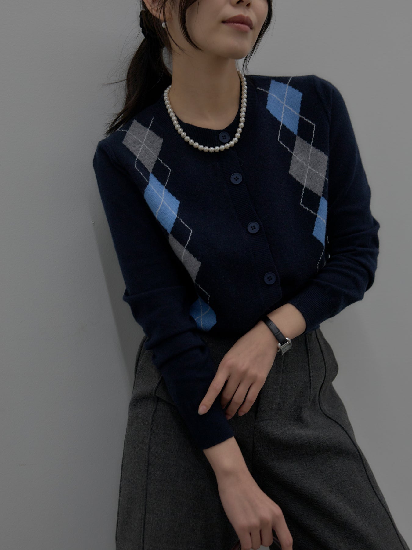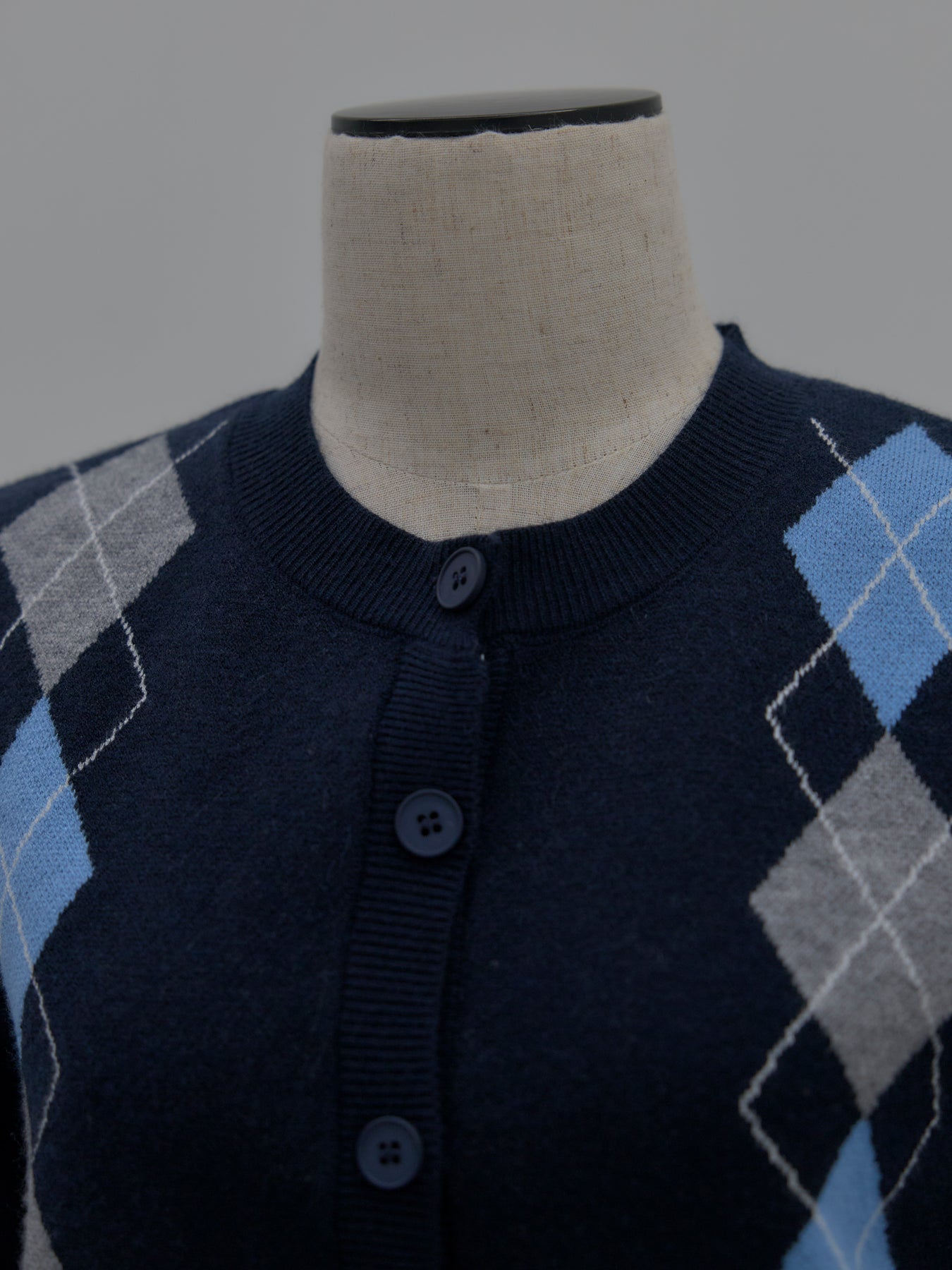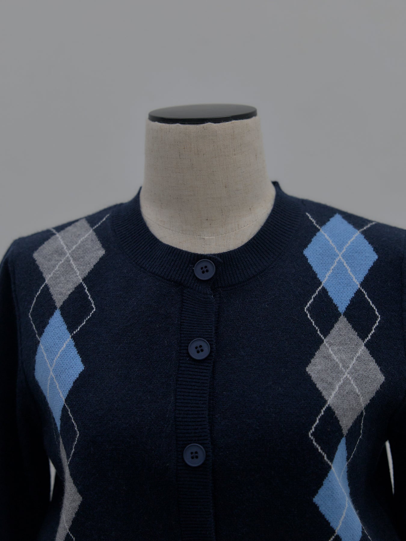 クラシカルなアーガイル柄が目を惹くニットカーディガン。 ほどよいゆるさのシルエットが抜け感を演出し、羽織るだけでコーデの主役になる一枚です。 やわらかな風合いで着心地も良く、スカートにもパンツにも合わせやすい万能アイテム。 デイリーからきれいめまで幅広く活躍します。