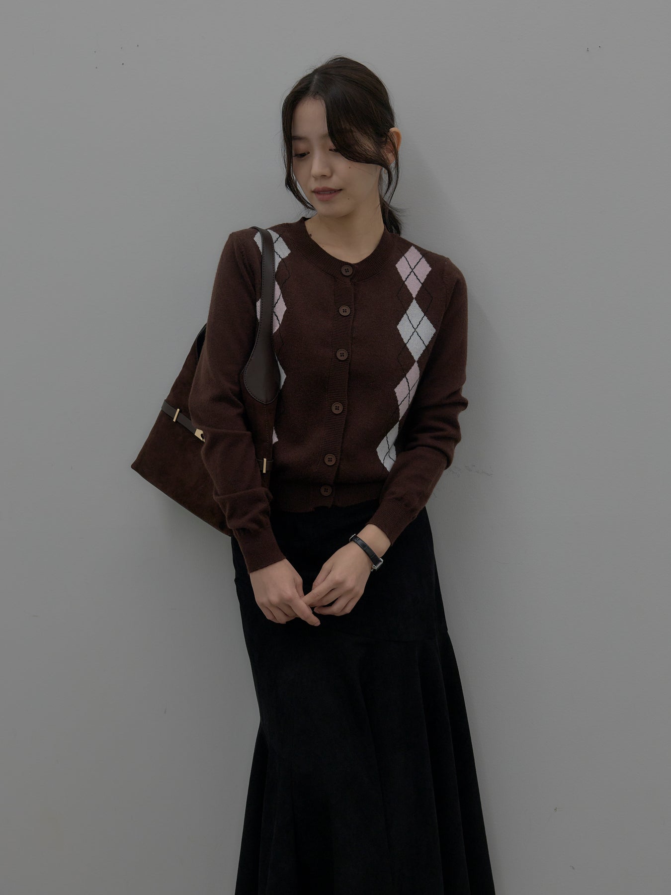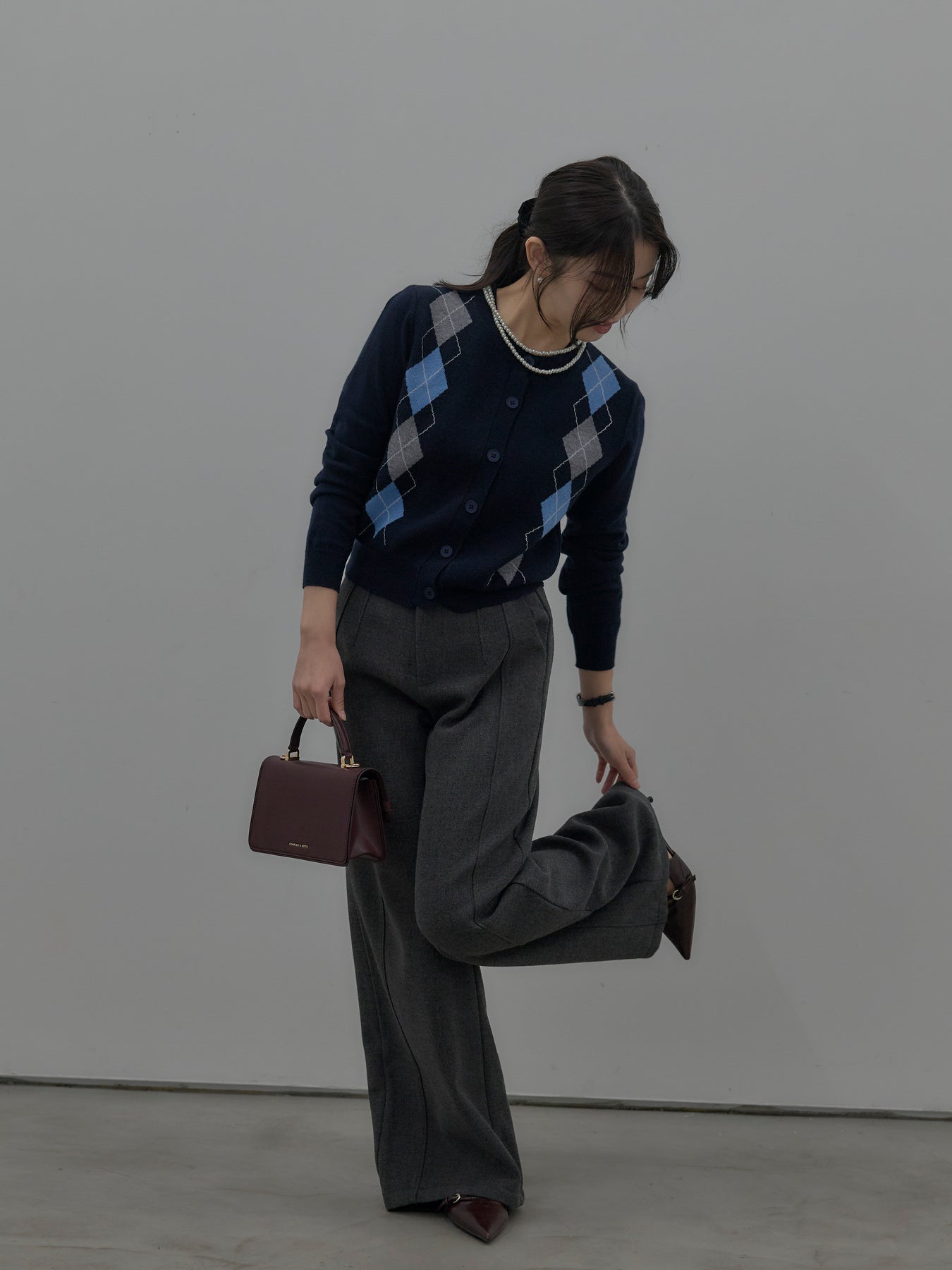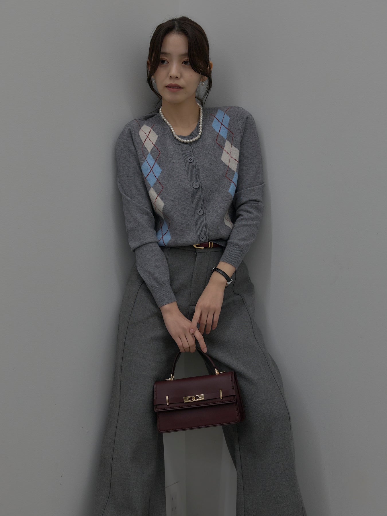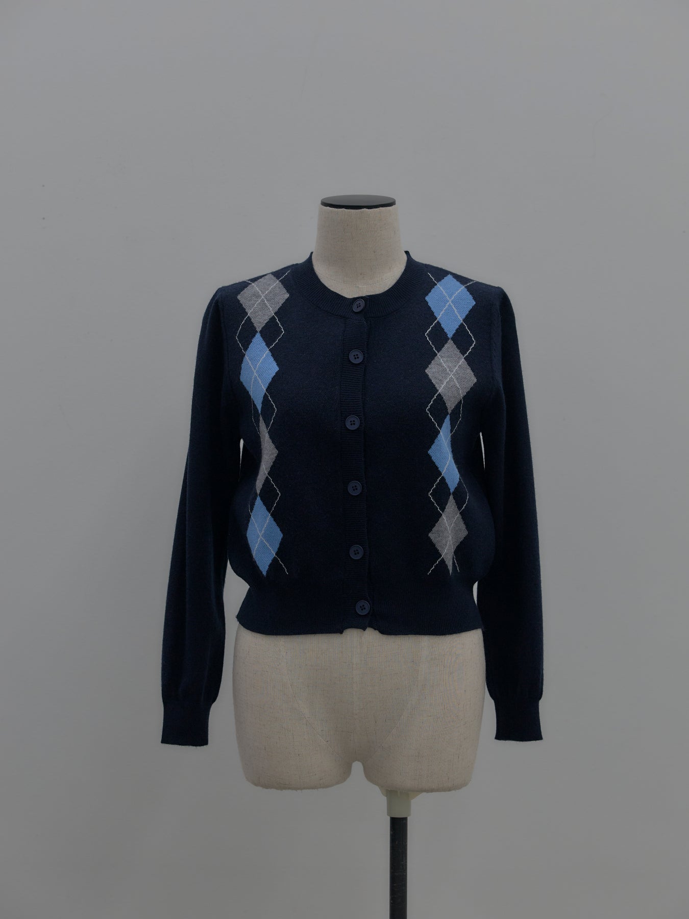 クラシカルなアーガイル柄が目を惹くニットカーディガン。 ほどよいゆるさのシルエットが抜け感を演出し、羽織るだけでコーデの主役になる一枚です。 やわらかな風合いで着心地も良く、スカートにもパンツにも合わせやすい万能アイテム。 デイリーからきれいめまで幅広く活躍します。