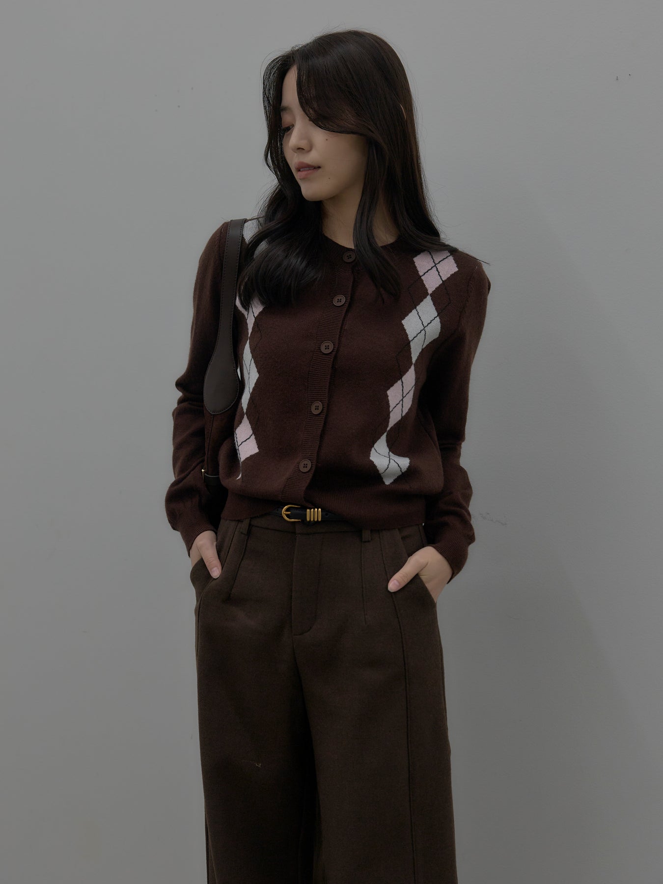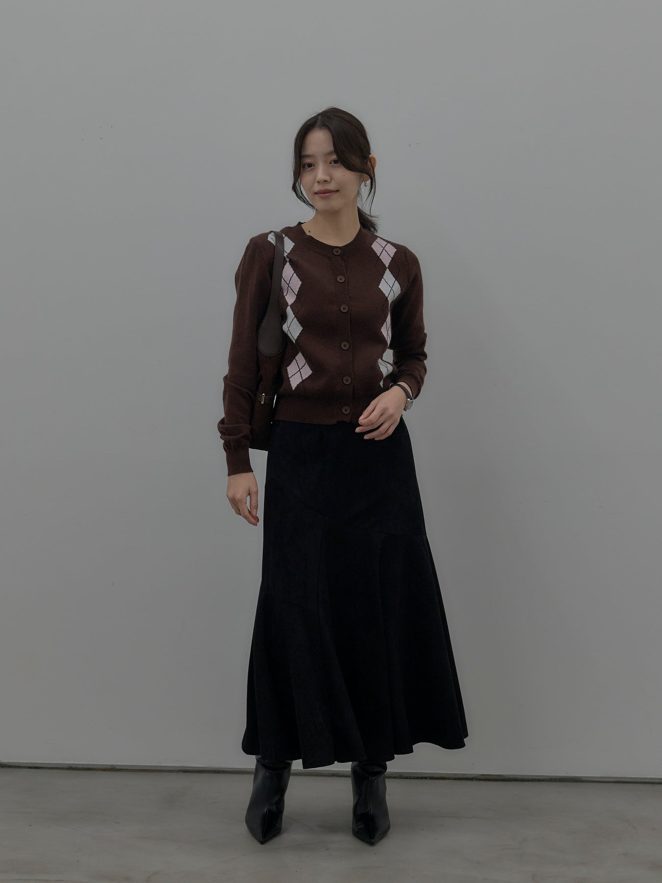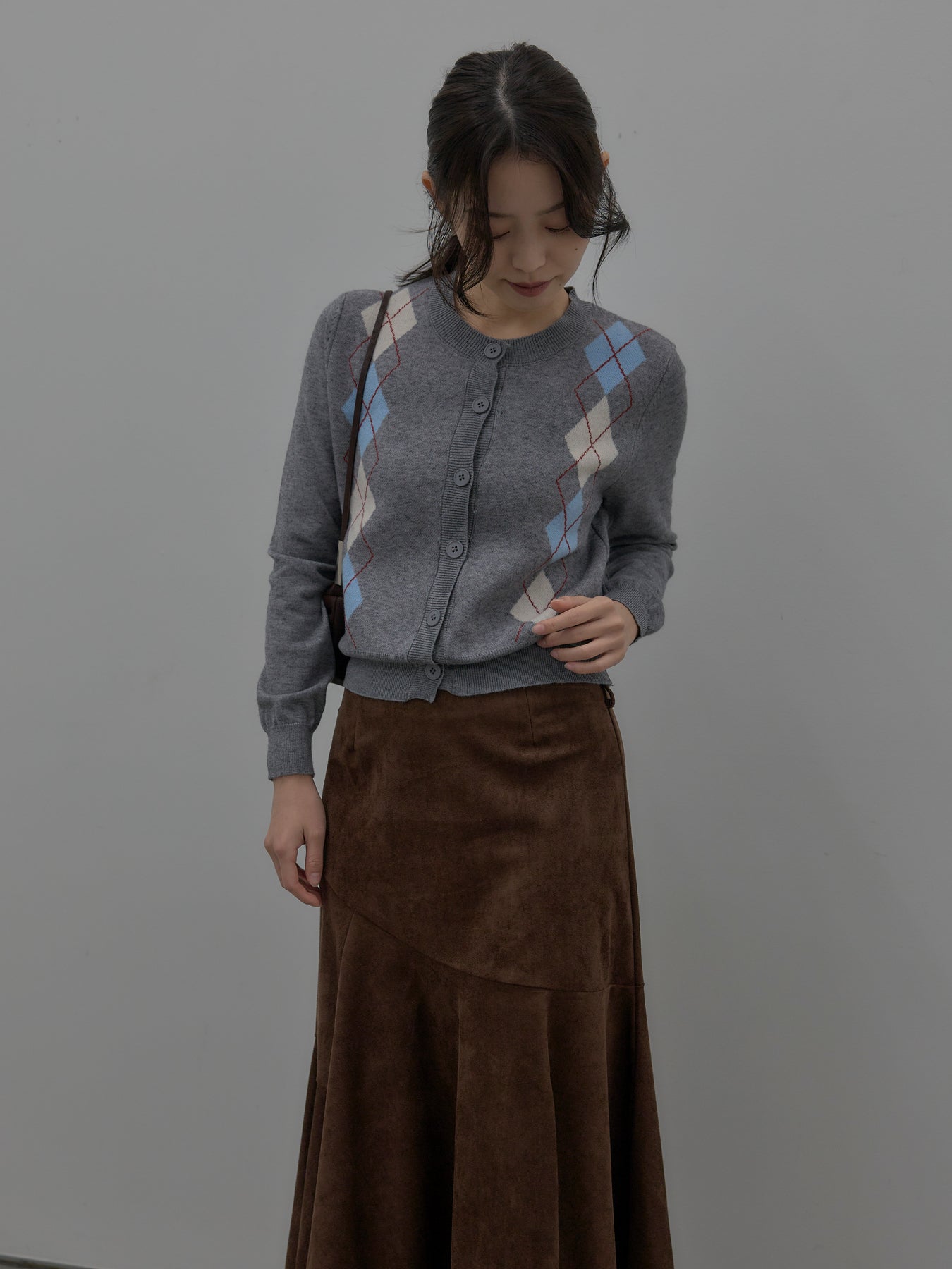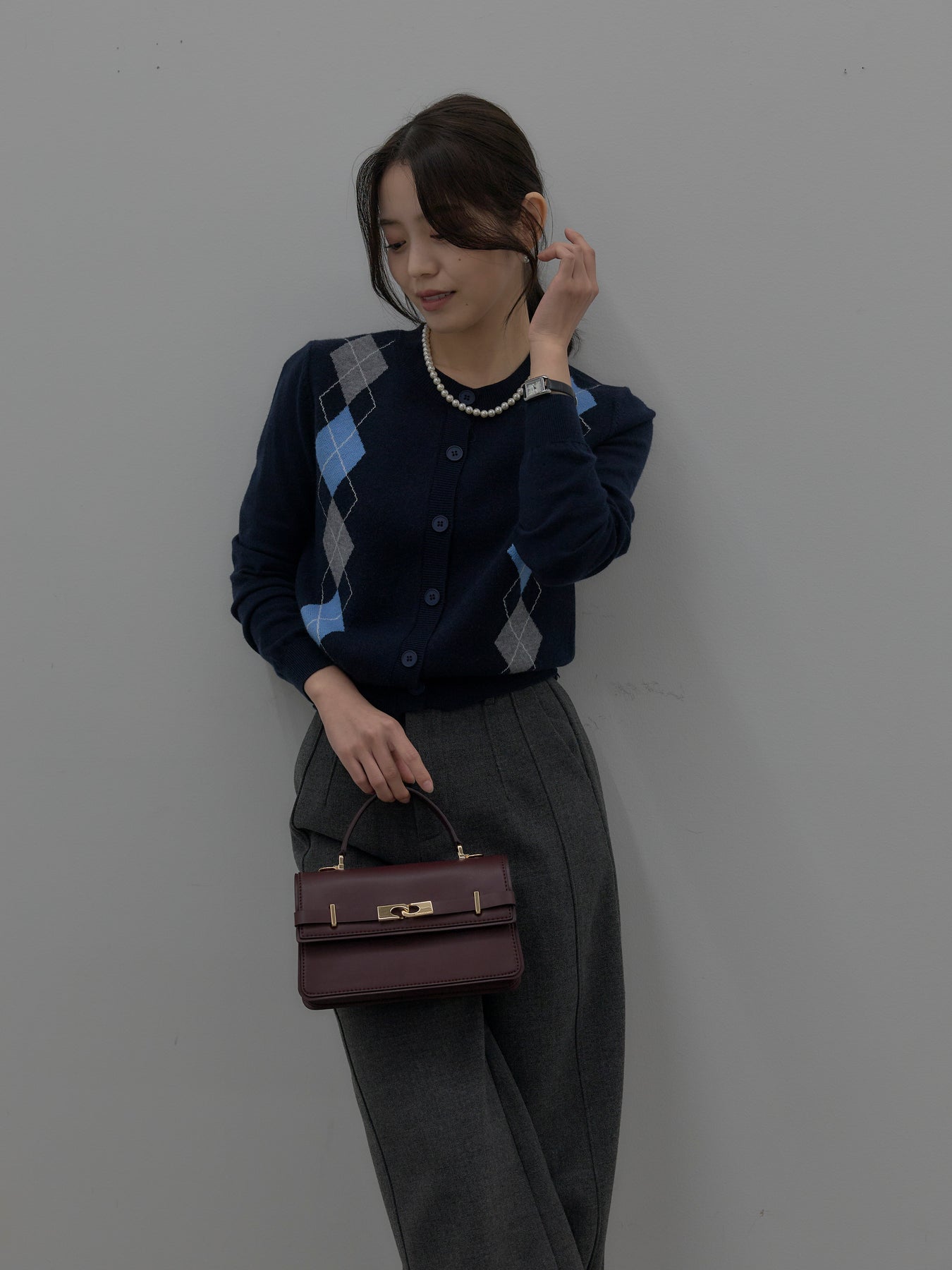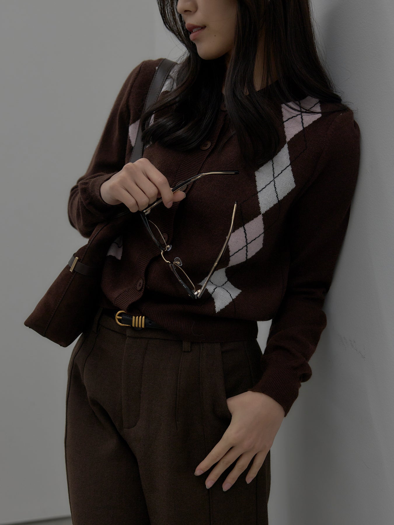 クラシカルなアーガイル柄が目を惹くニットカーディガン。 ほどよいゆるさのシルエットが抜け感を演出し、羽織るだけでコーデの主役になる一枚です。 やわらかな風合いで着心地も良く、スカートにもパンツにも合わせやすい万能アイテム。 デイリーからきれいめまで幅広く活躍します。