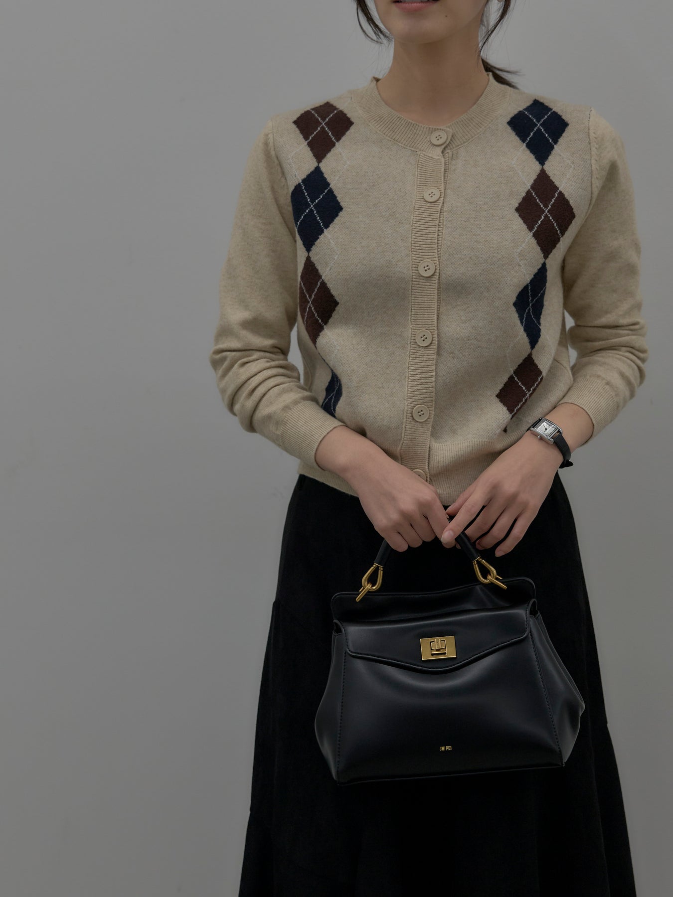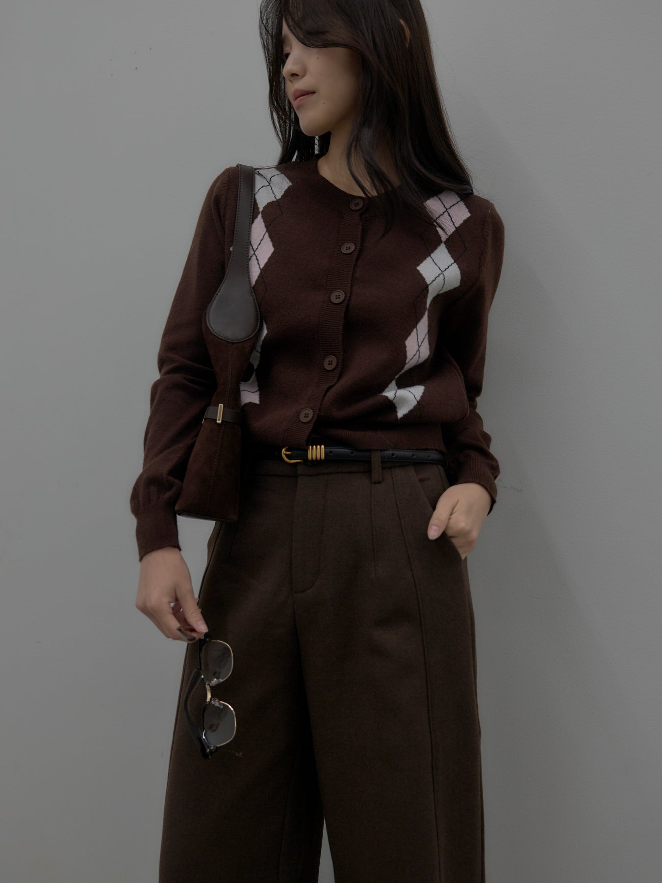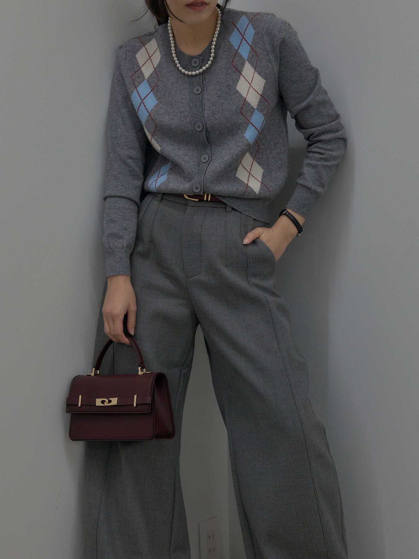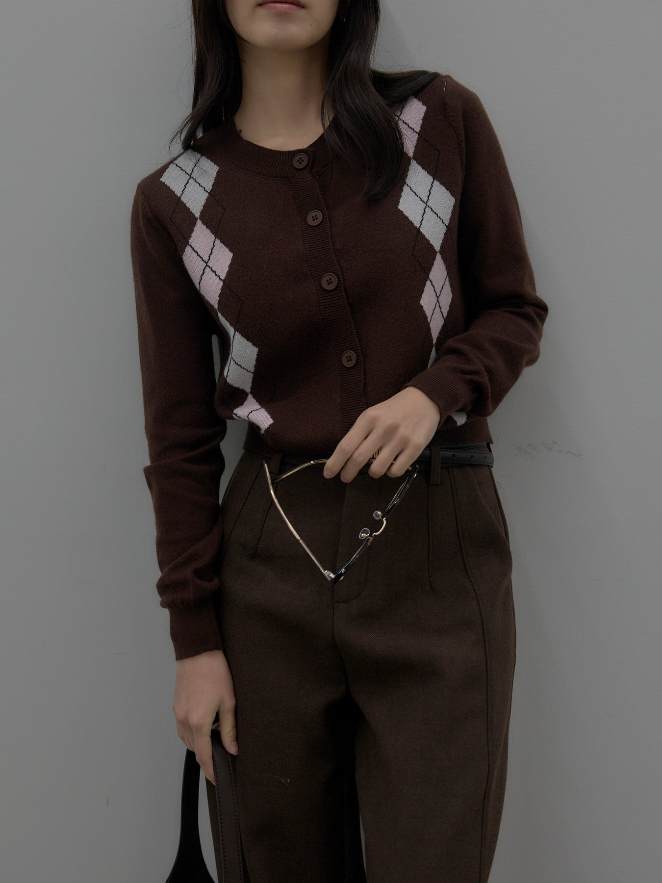 クラシカルなアーガイル柄が目を惹くニットカーディガン。 ほどよいゆるさのシルエットが抜け感を演出し、羽織るだけでコーデの主役になる一枚です。 やわらかな風合いで着心地も良く、スカートにもパンツにも合わせやすい万能アイテム。 デイリーからきれいめまで幅広く活躍します。