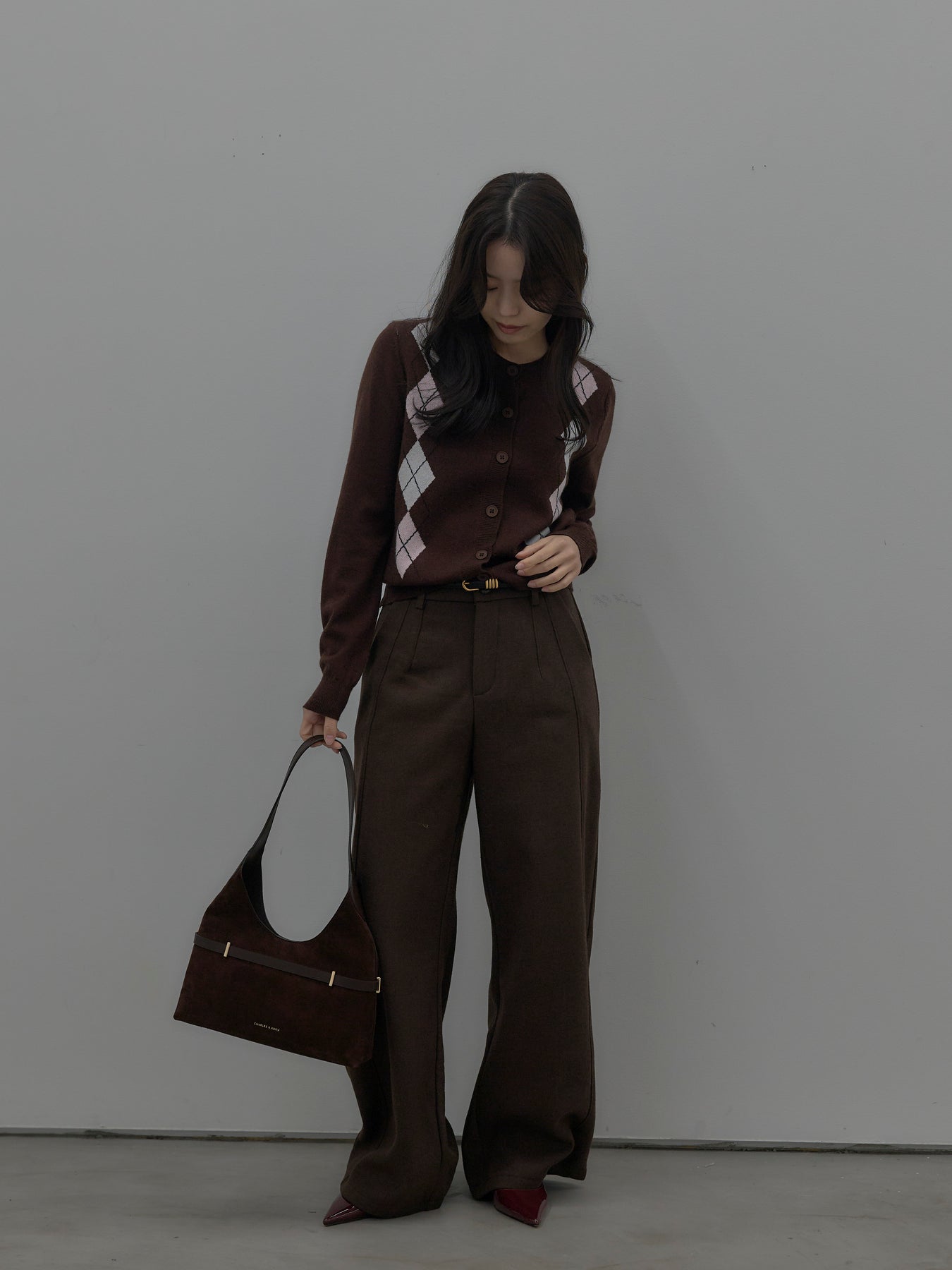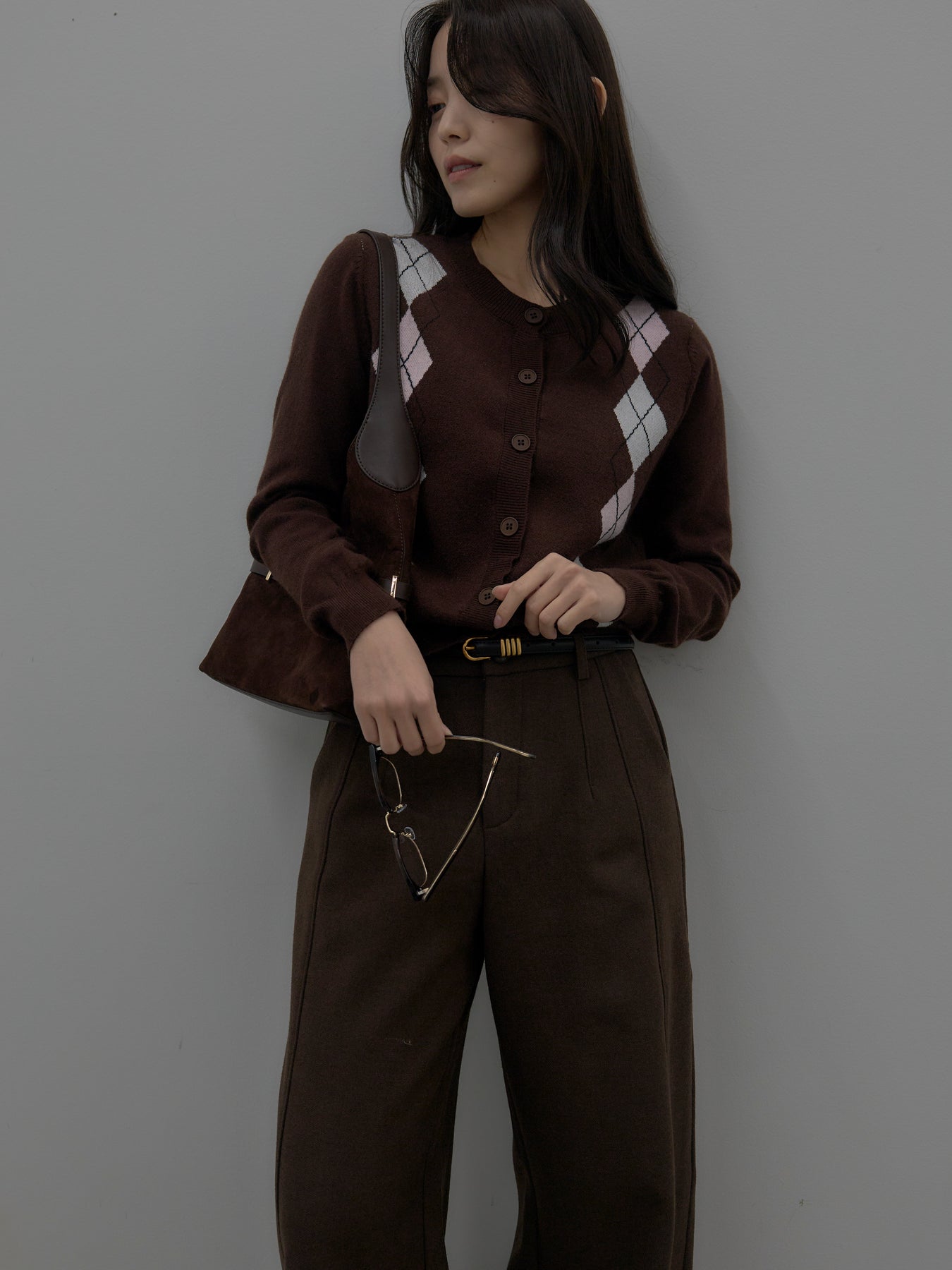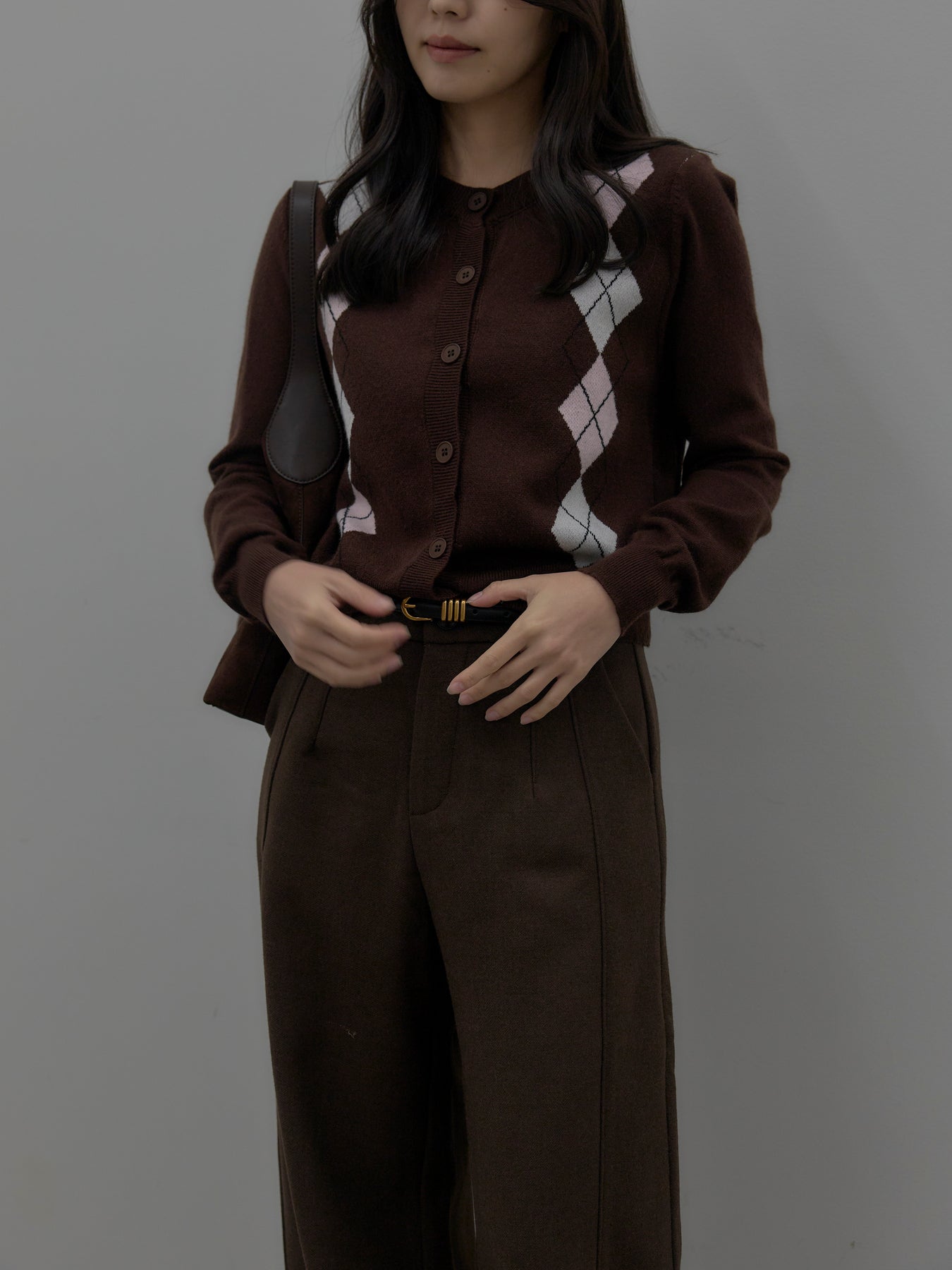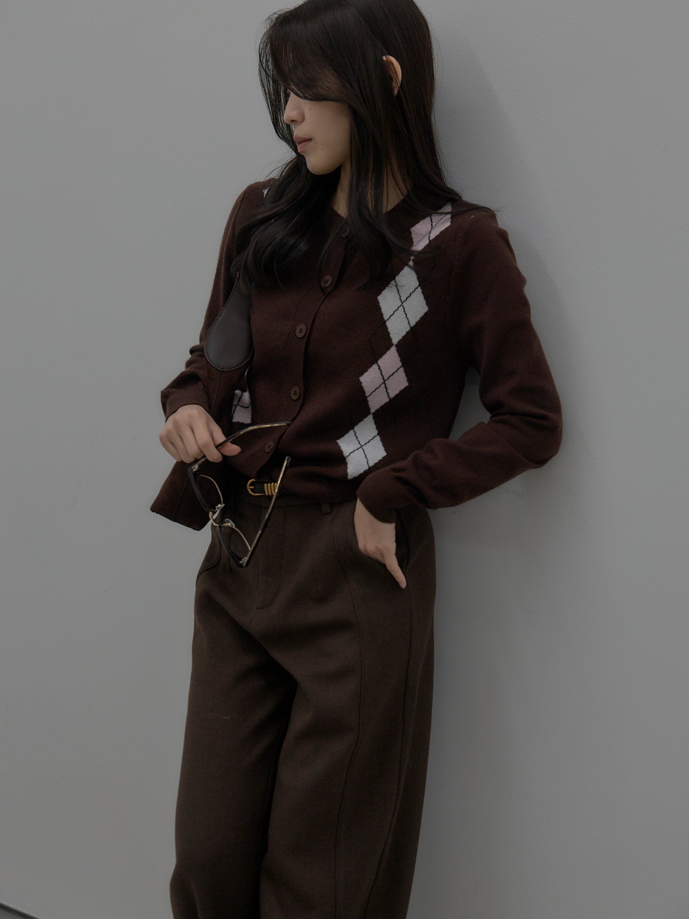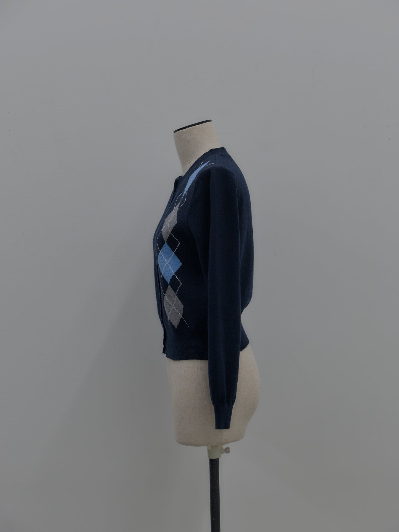 クラシカルなアーガイル柄が目を惹くニットカーディガン。 ほどよいゆるさのシルエットが抜け感を演出し、羽織るだけでコーデの主役になる一枚です。 やわらかな風合いで着心地も良く、スカートにもパンツにも合わせやすい万能アイテム。 デイリーからきれいめまで幅広く活躍します。