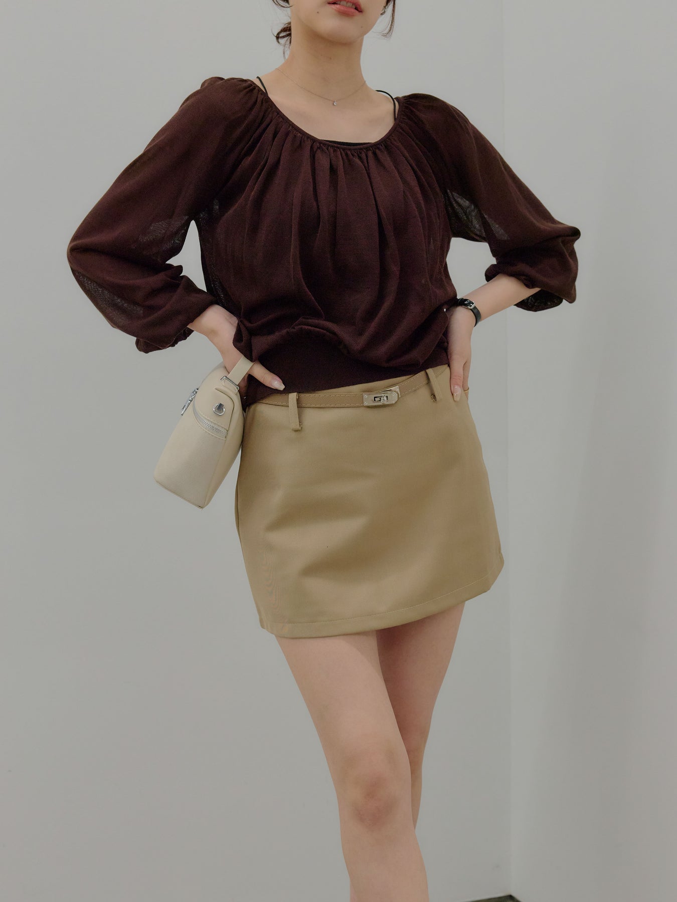 付属のベルトがアクセントになったミニスカート。
