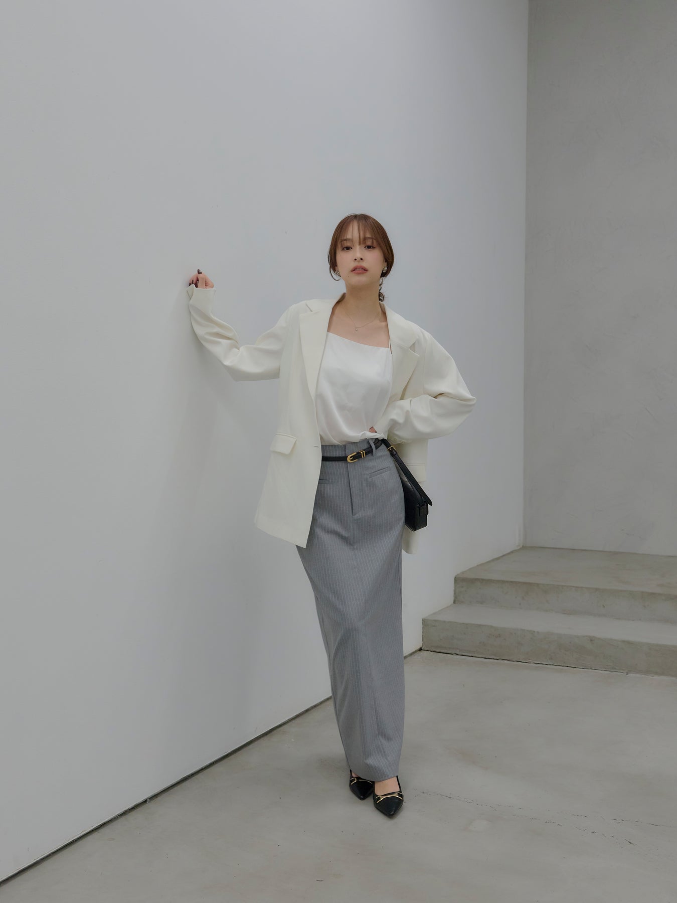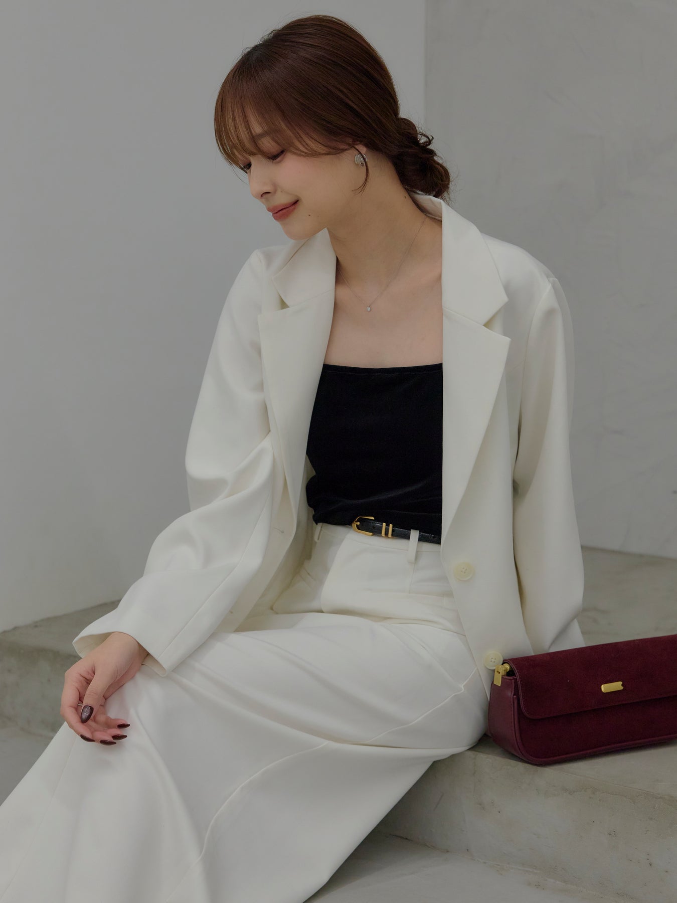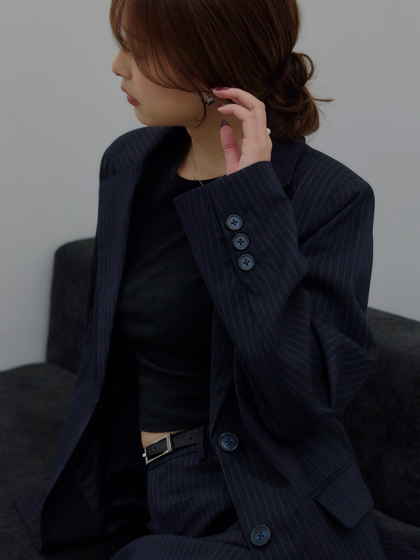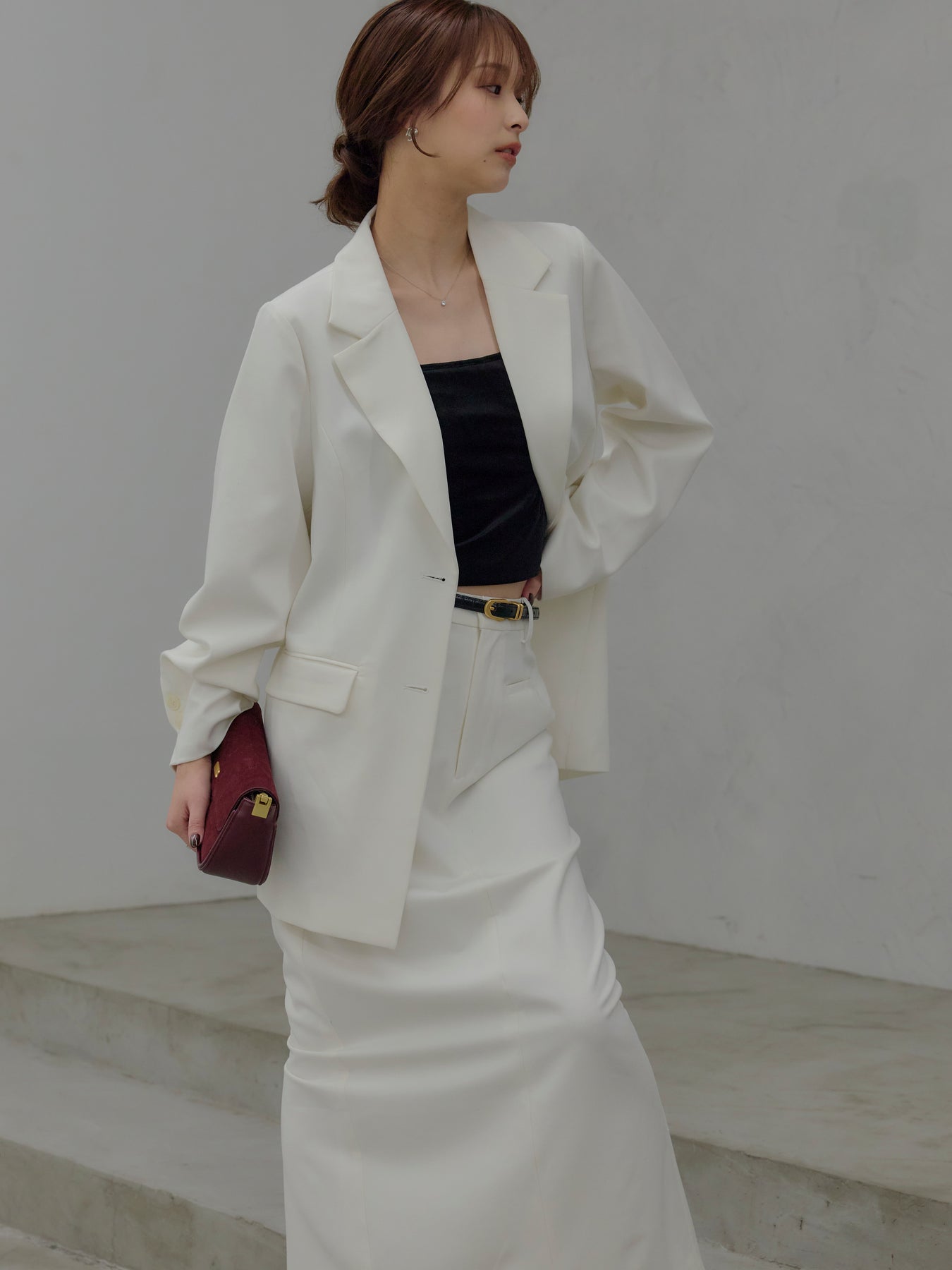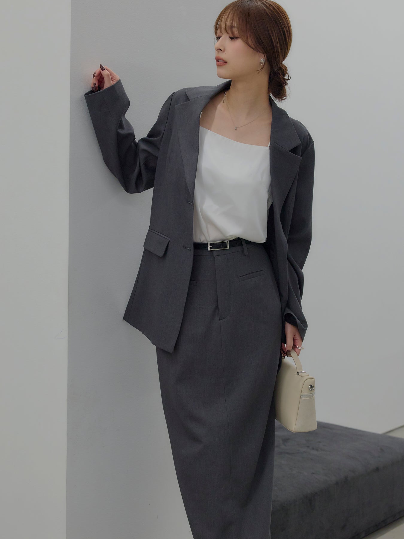 羽織るだけで輪郭が整う、静かな存在感のジャケット。 肩の力を抜いたラインと、身体に沿いすぎないシルエットが、ほどよいきちんと感をつくります。 前を留めても、ラフに羽織ってもバランスが崩れず、スタイリングに余白を残す設計。 ワンピースやキャミソールに重ねればセンシュアルに、同素材のパンツと合わせれば端正なセットアップとしても成立します。 オケージョンに寄りすぎず、日常にも溶け込む一着。 「きちんとしたい日」だけでなく、「何を着るか迷わないためのジャケット」として、クローゼットに置いておきたい存在です。