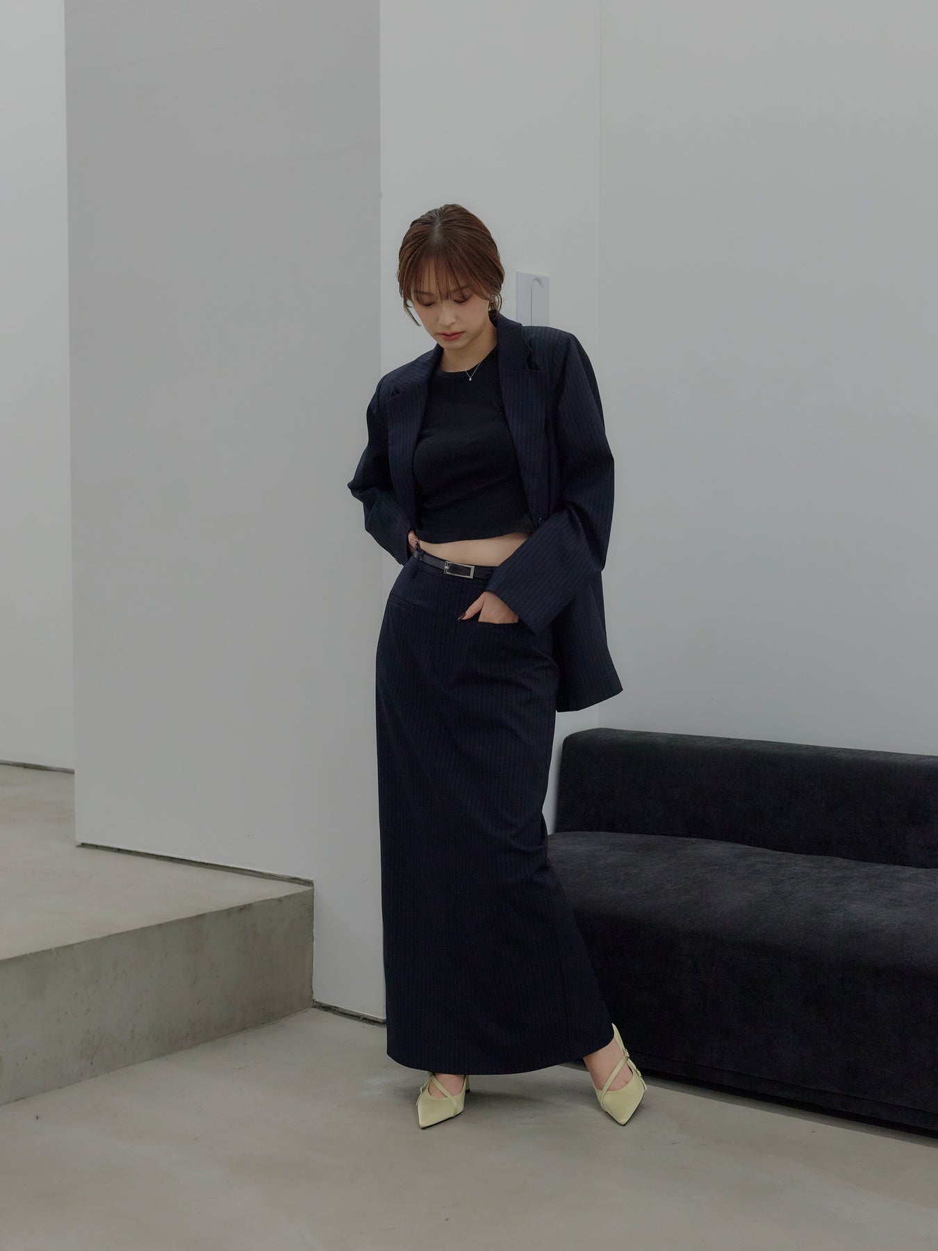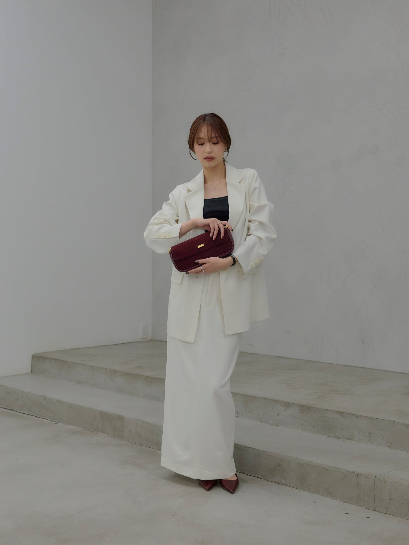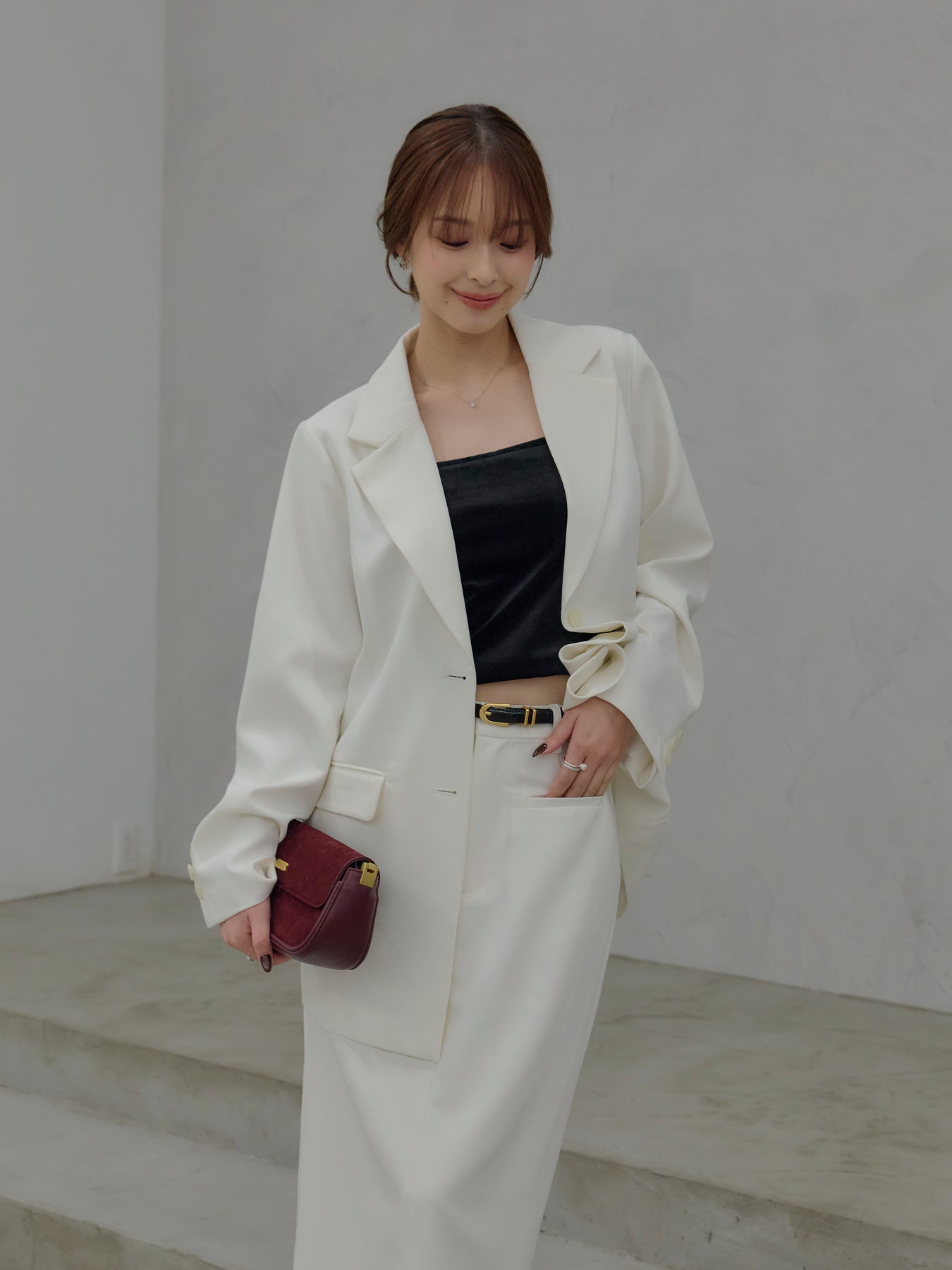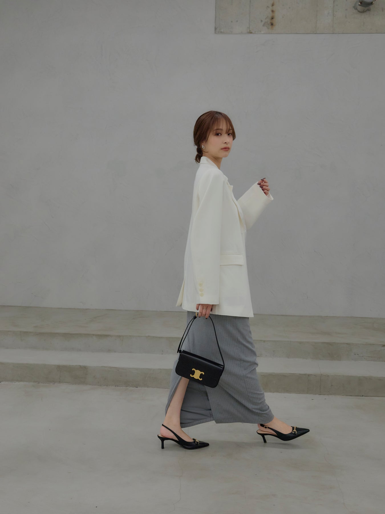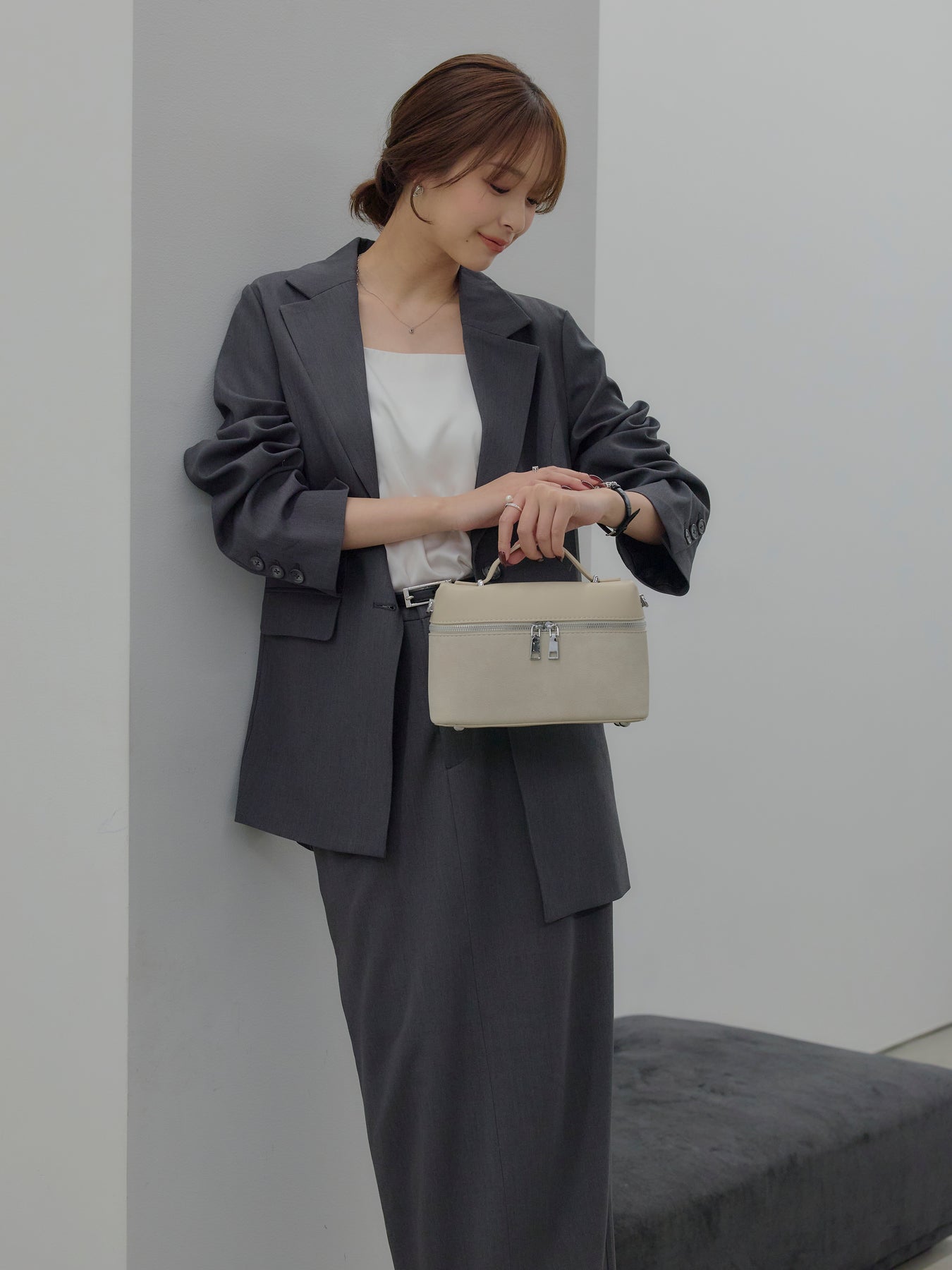羽織るだけで輪郭が整う、静かな存在感のジャケット。 肩の力を抜いたラインと、身体に沿いすぎないシルエットが、ほどよいきちんと感をつくります。 前を留めても、ラフに羽織ってもバランスが崩れず、スタイリングに余白を残す設計。 ワンピースやキャミソールに重ねればセンシュアルに、同素材のパンツと合わせれば端正なセットアップとしても成立します。 オケージョンに寄りすぎず、日常にも溶け込む一着。 「きちんとしたい日」だけでなく、「何を着るか迷わないためのジャケット」として、クローゼットに置いておきたい存在です。