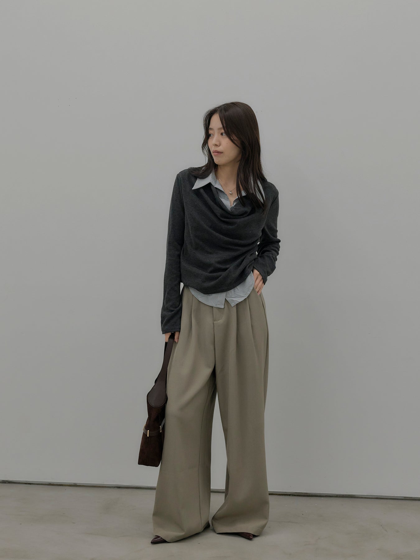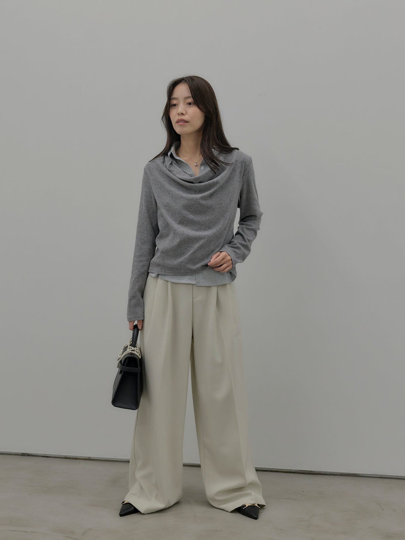 ゆるやかなドレープが上品な抜け感を演出し、1枚でこなれたレイヤードスタイルが完成します。