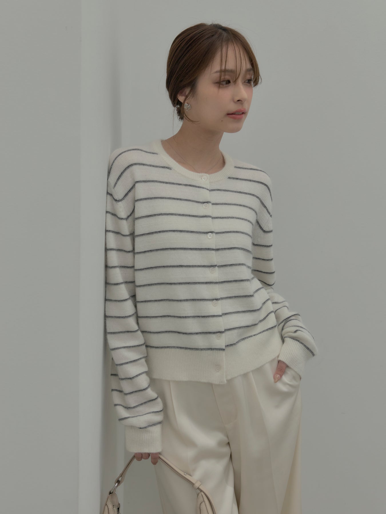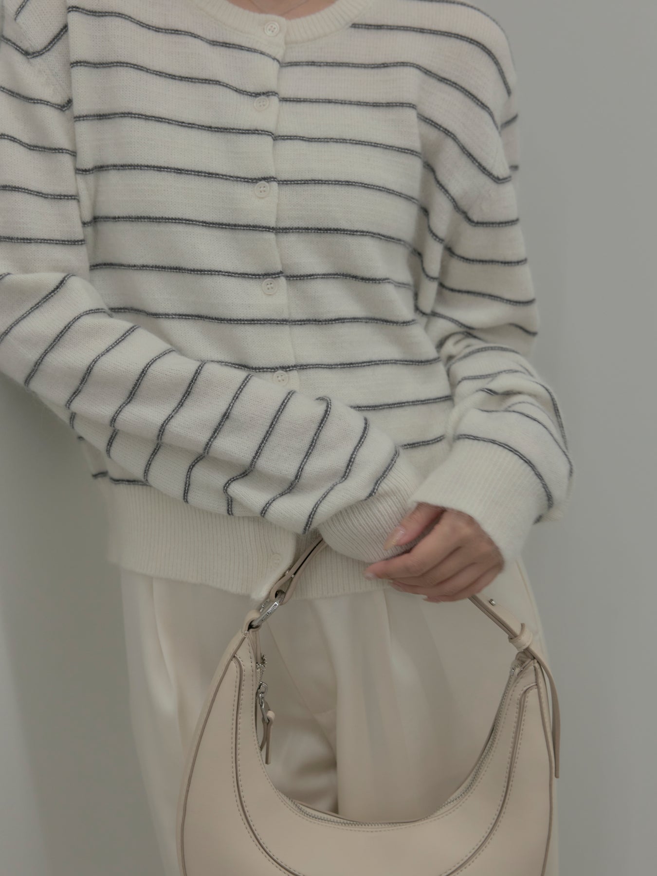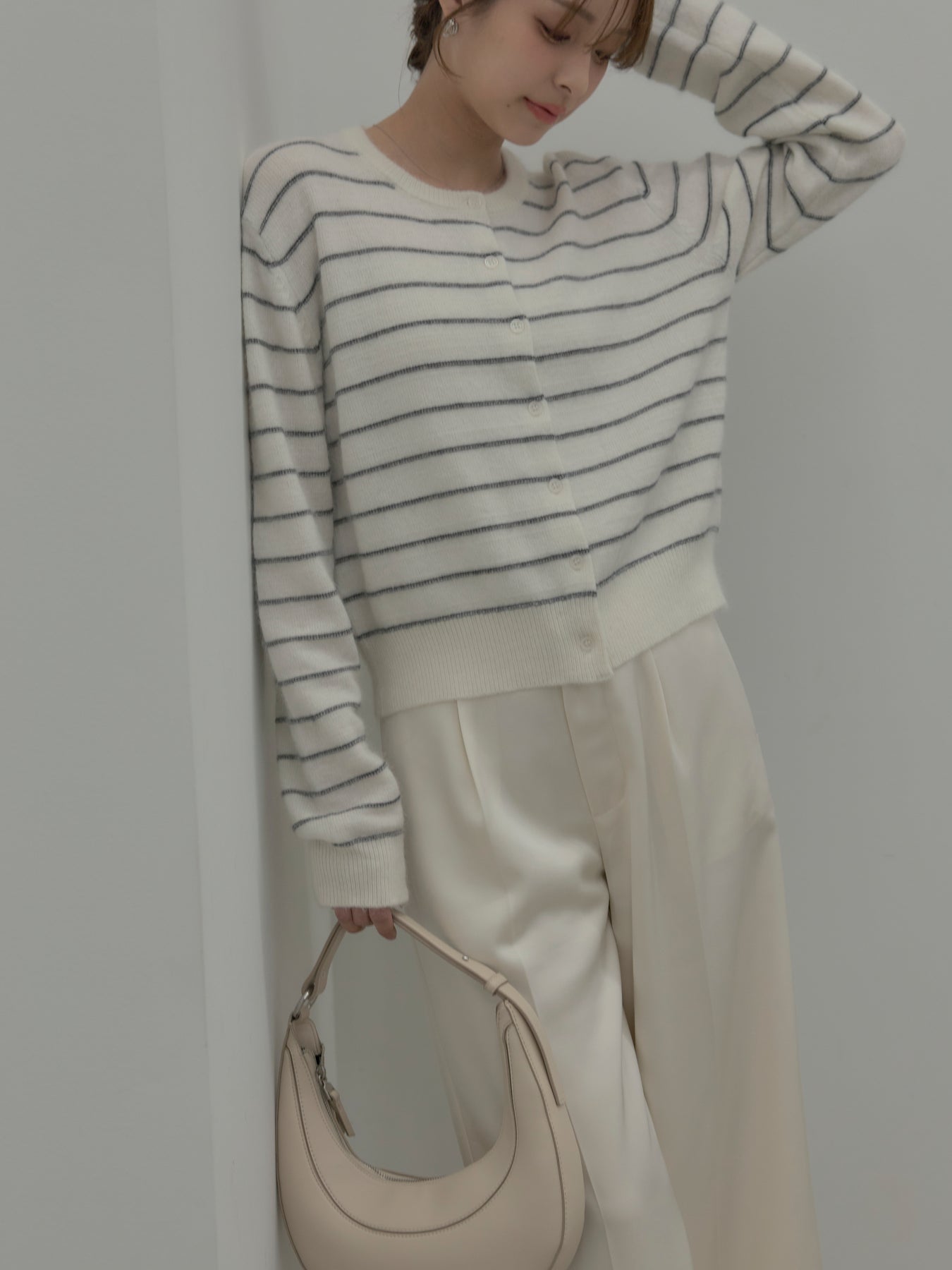 【premium touch】アルパカタッチボーダーニットカーディガン