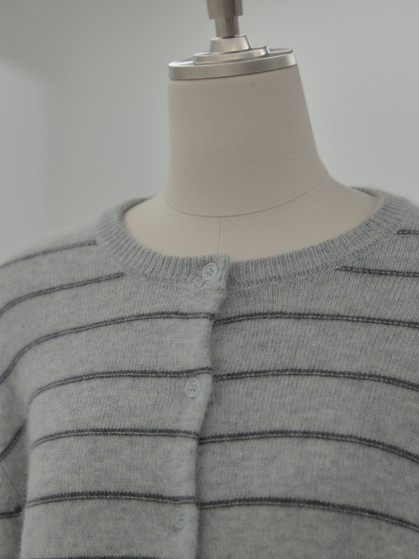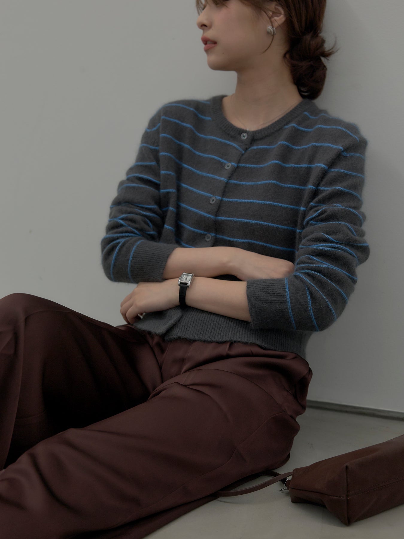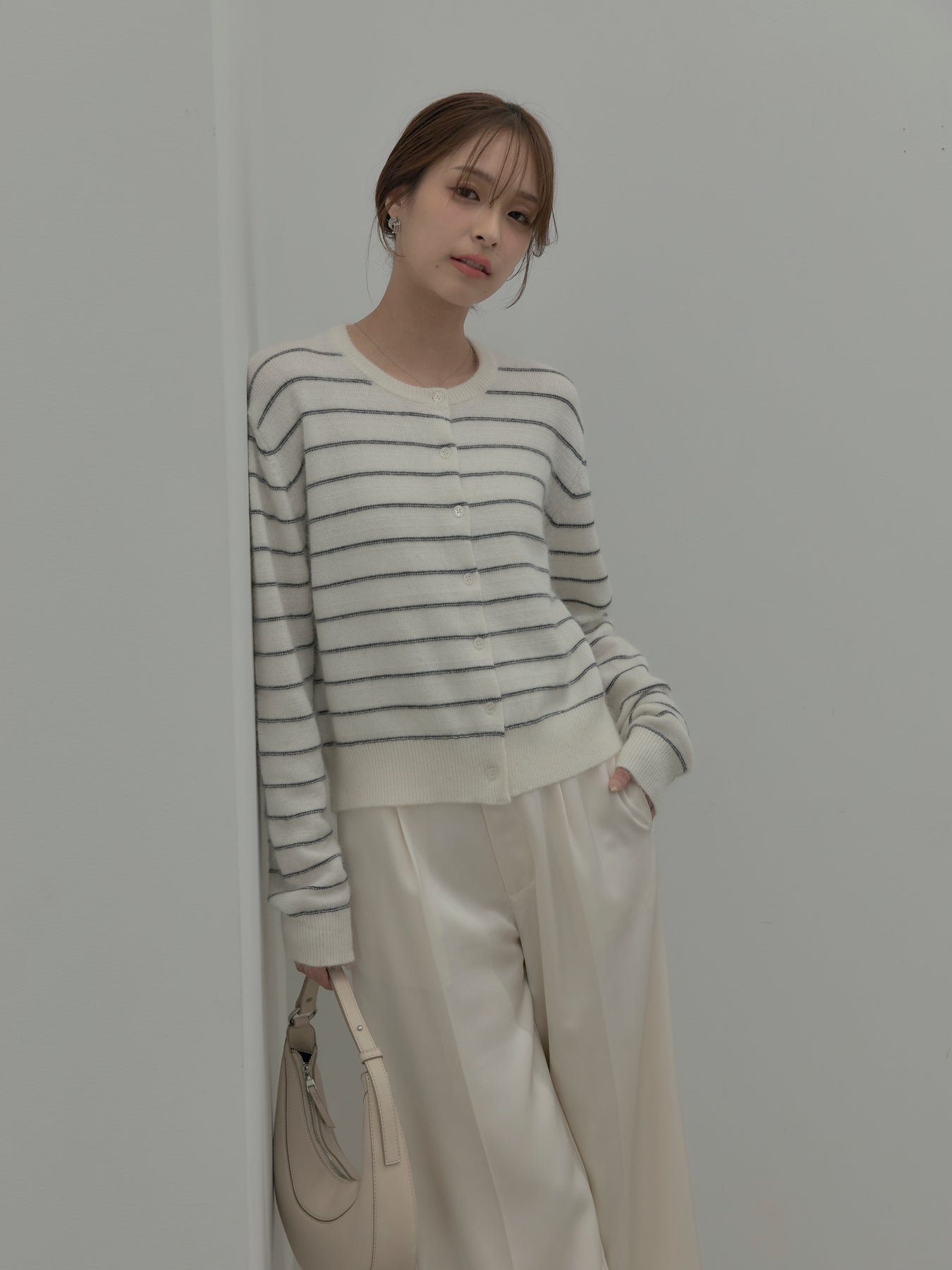 【premium touch】アルパカタッチボーダーニットカーディガン