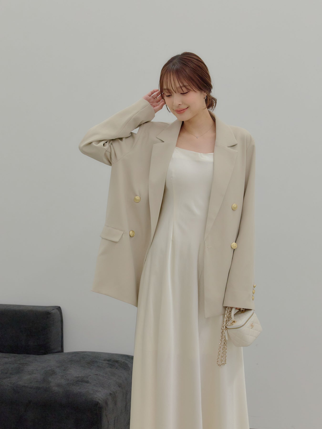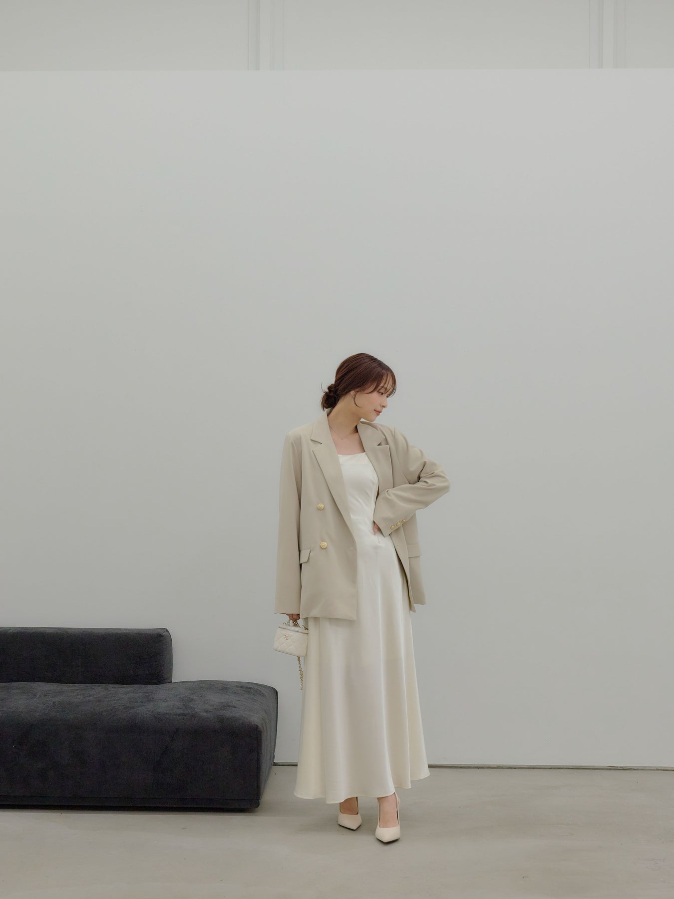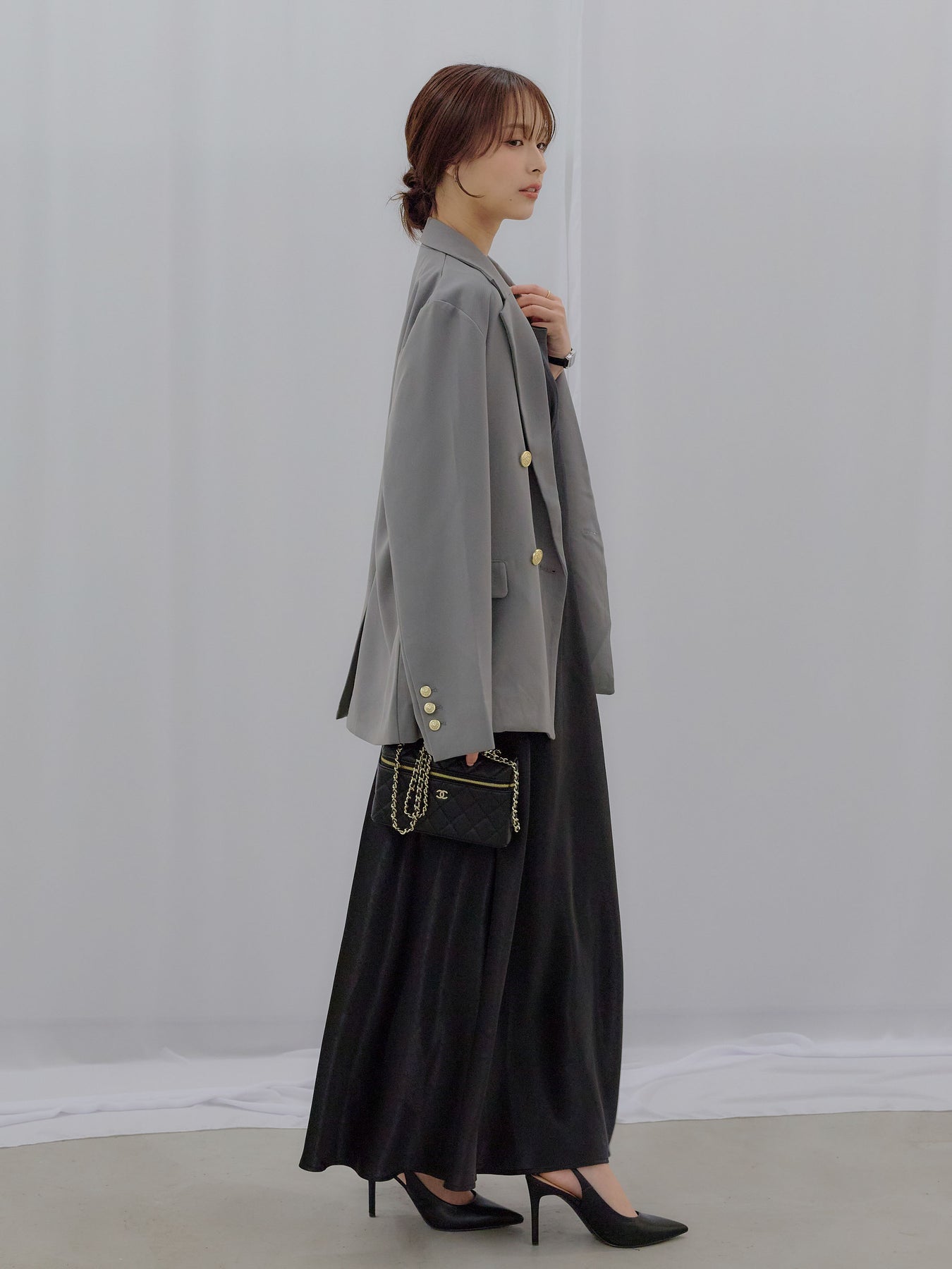 合わせ方次第で、日常から特別な日まで静かに寄り添う可能性を持った一着です。