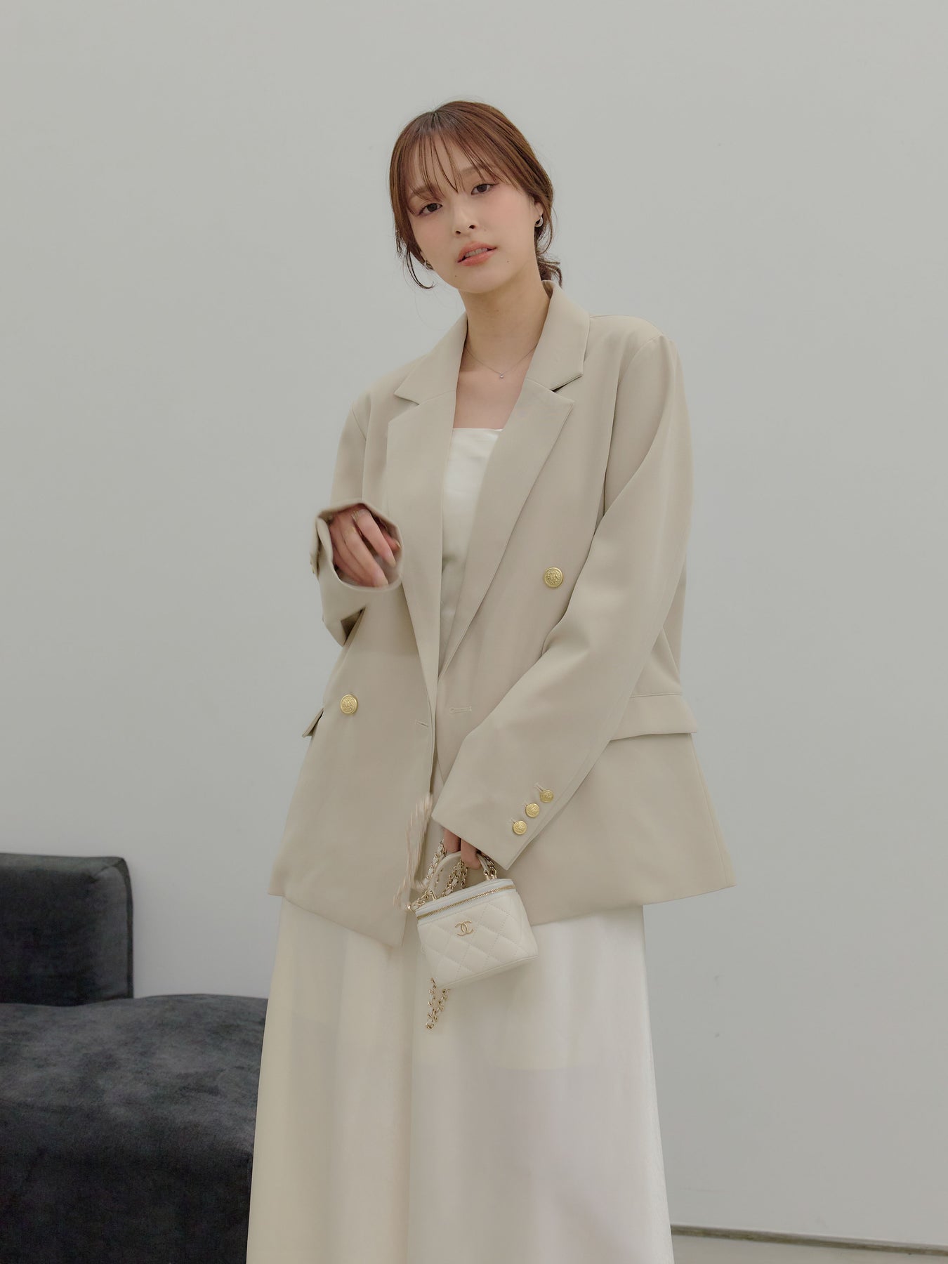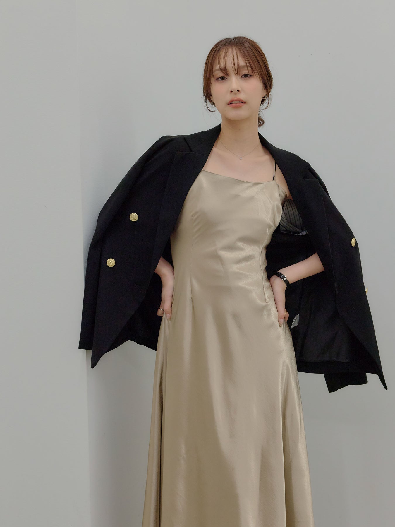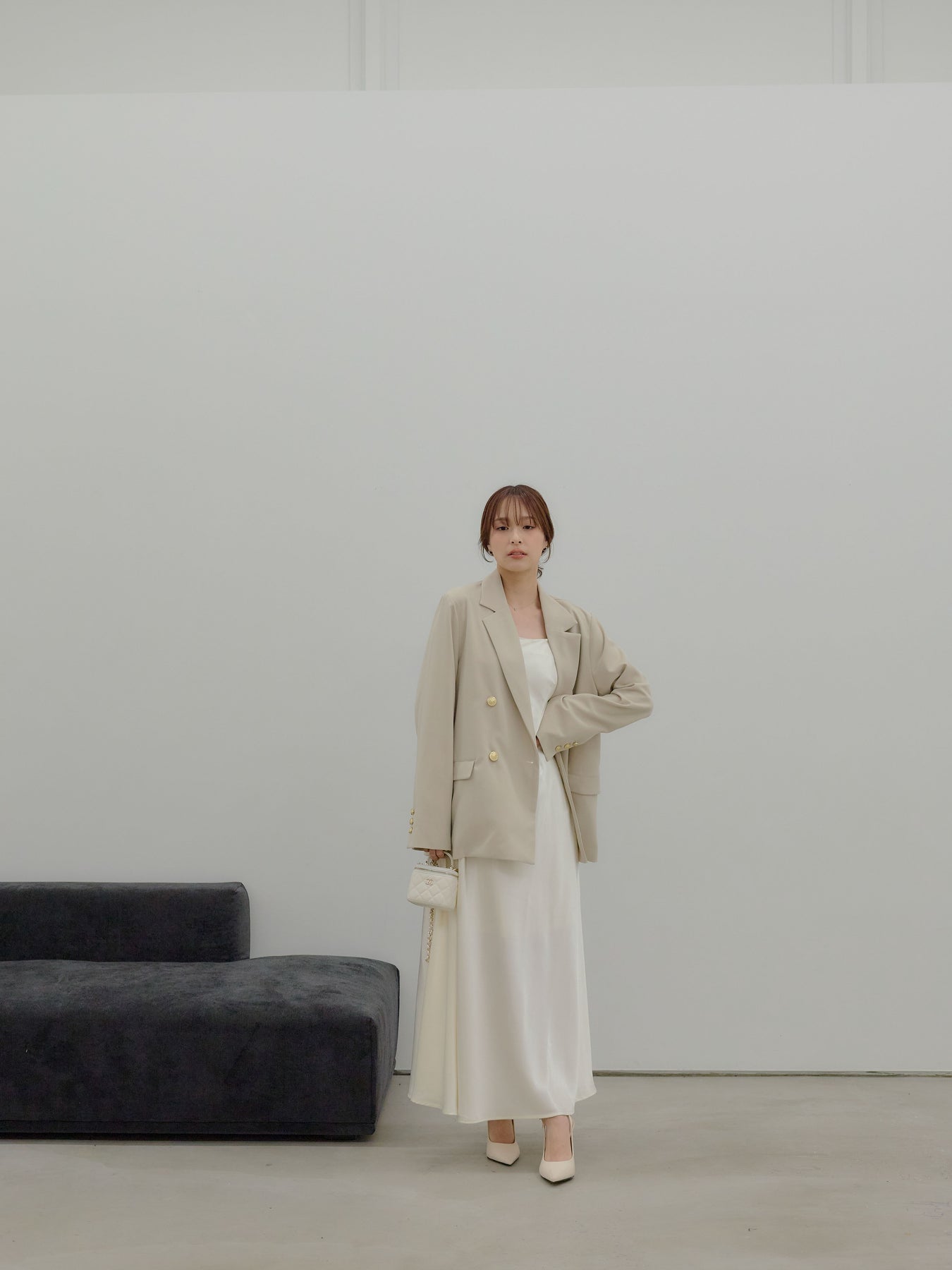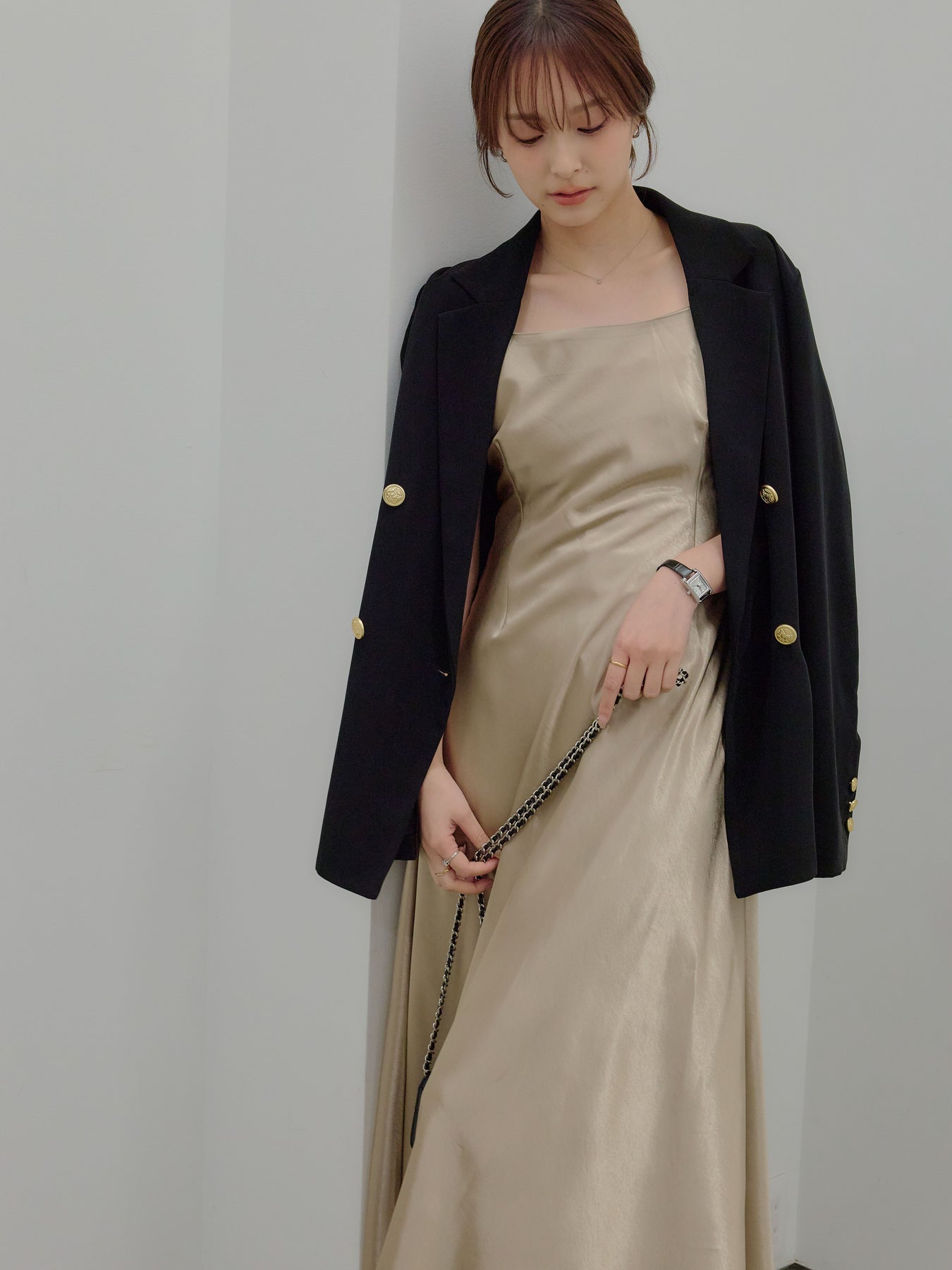 合わせ方次第で、日常から特別な日まで静かに寄り添う可能性を持った一着です。