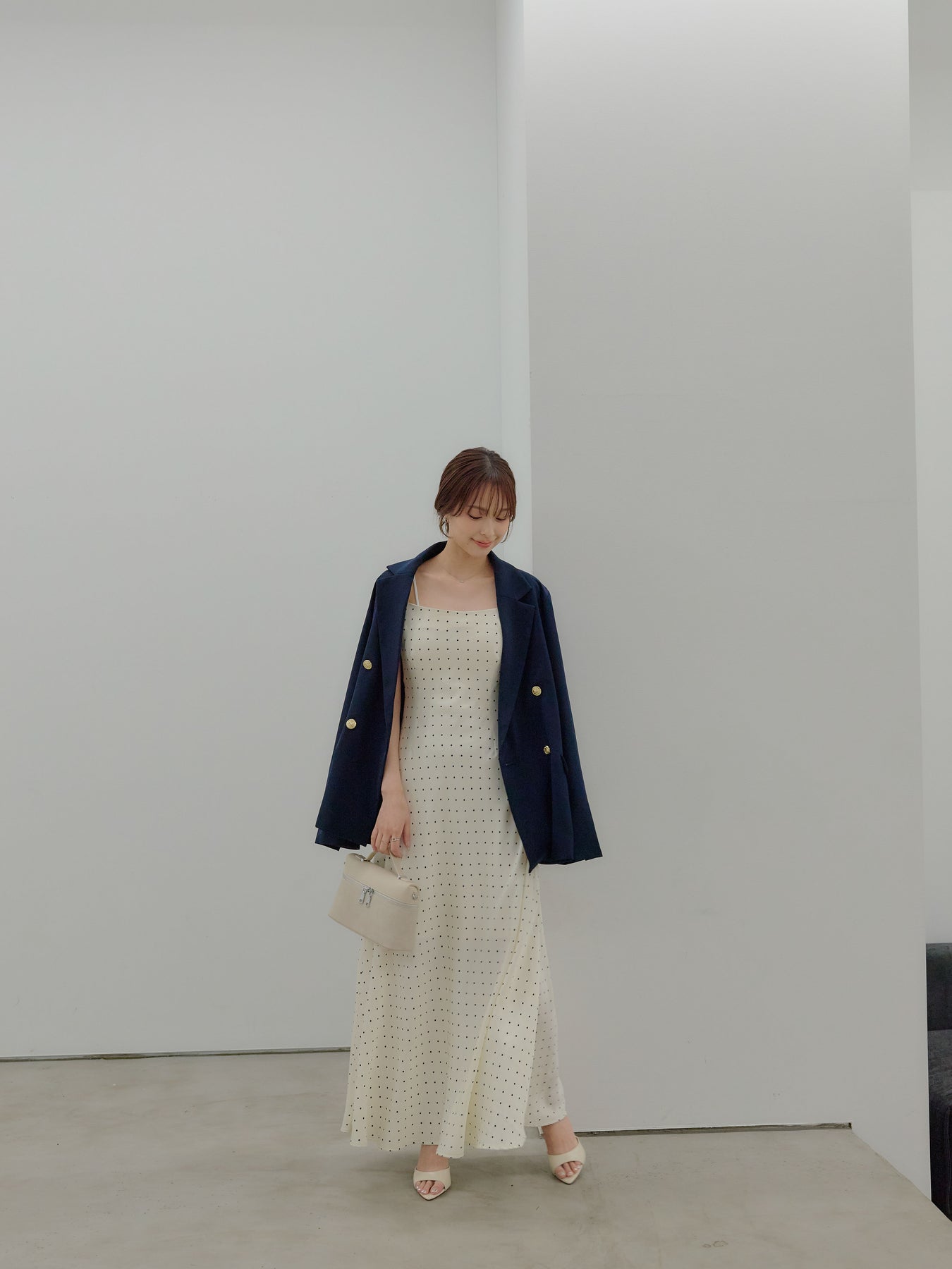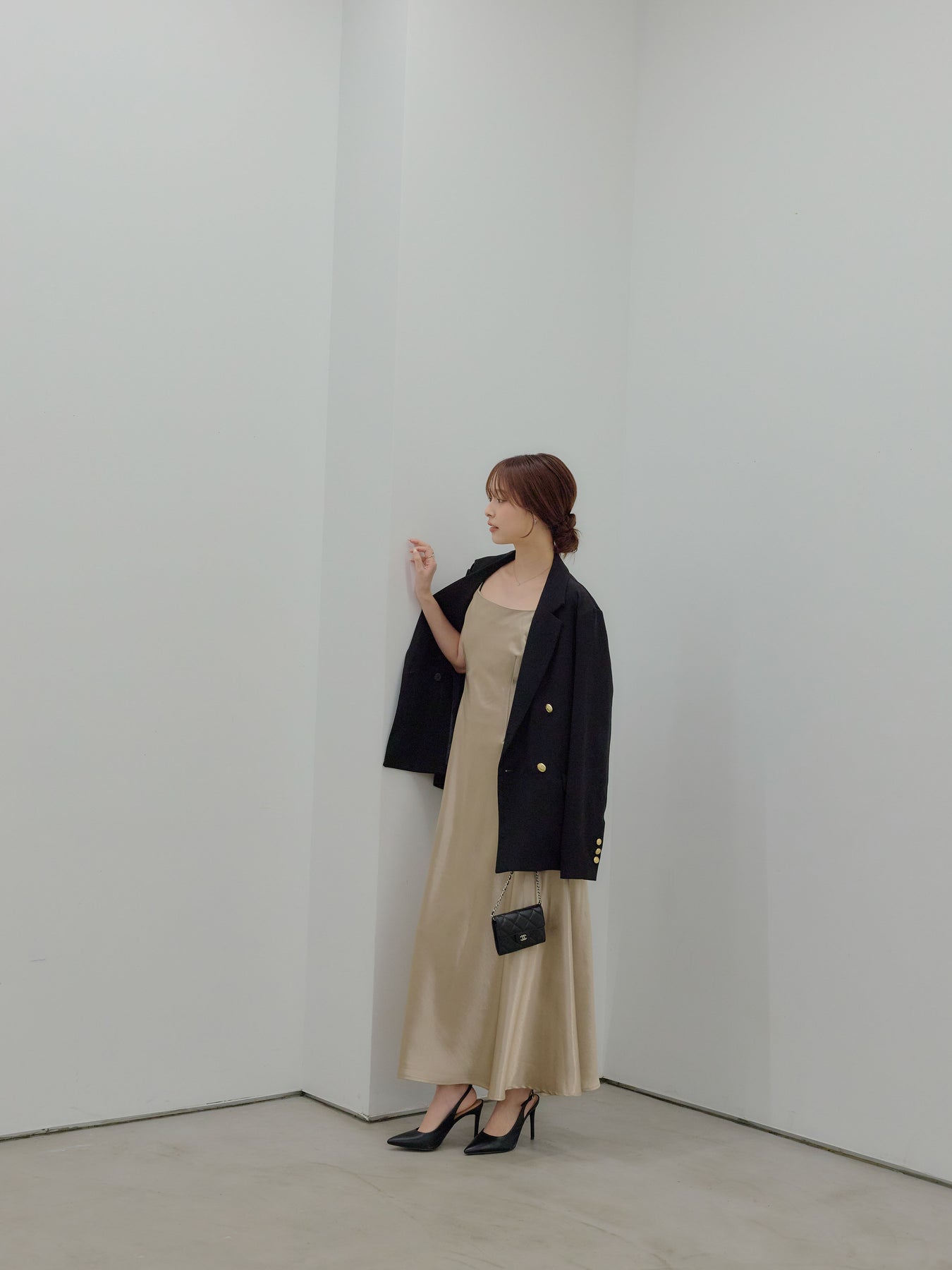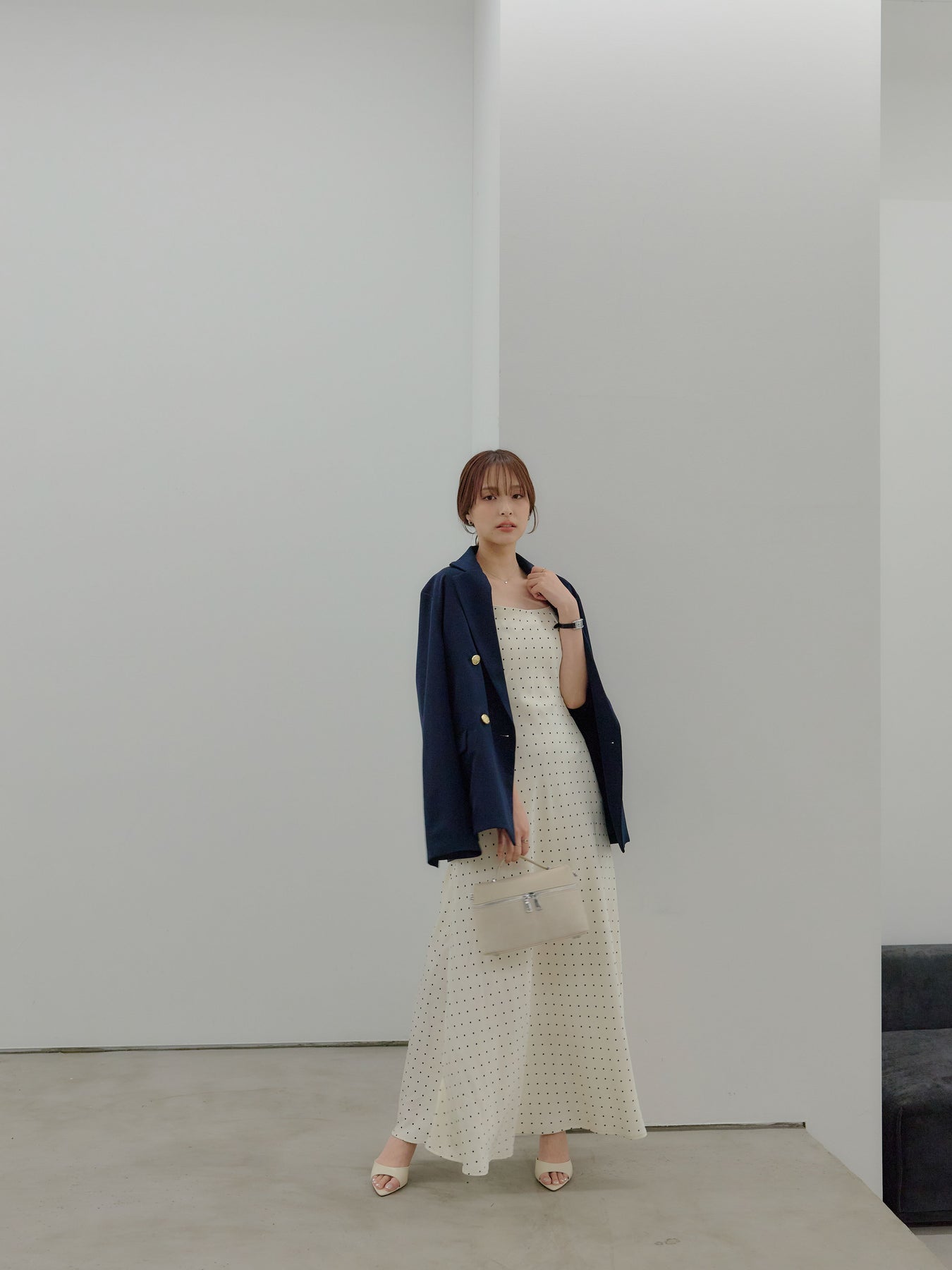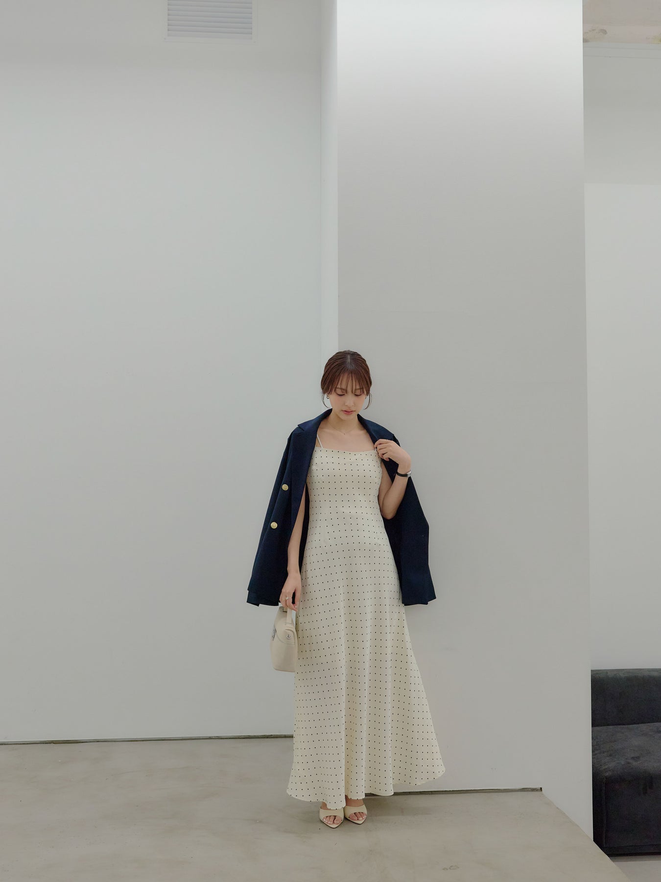 一枚でさらりと着れば、余白を楽しむ大人のドレススタイルに。上からジャケットやシャツを重ねれば、デイリーにも落とし込みやすく、足元をフラットからヒールに変えるだけでシーンも自然にスライドします。アクセサリーを足してドレスアップするのも、あえて引き算して素肌感を活かすのもおすすめ。