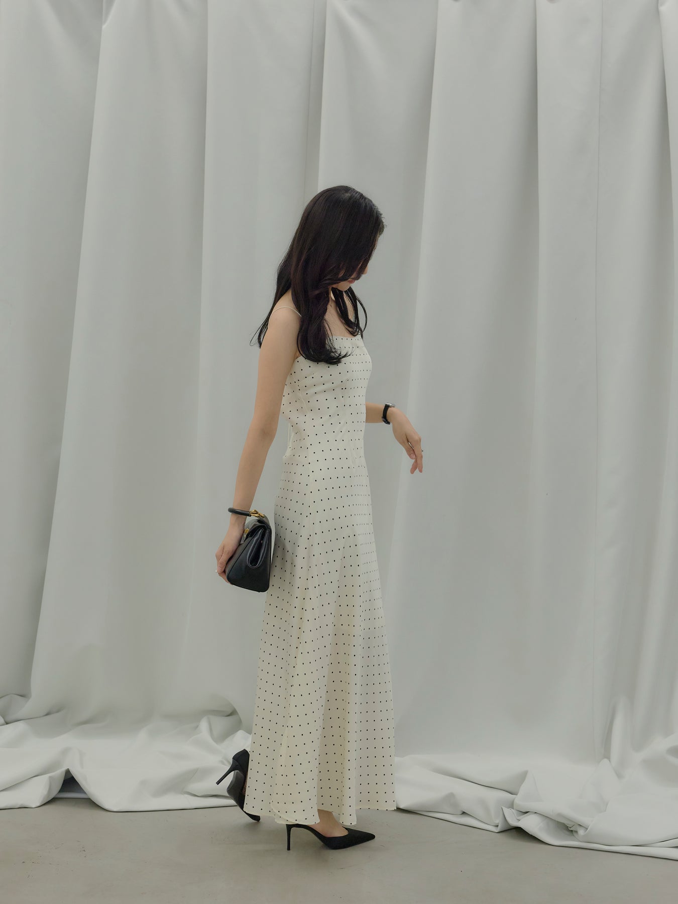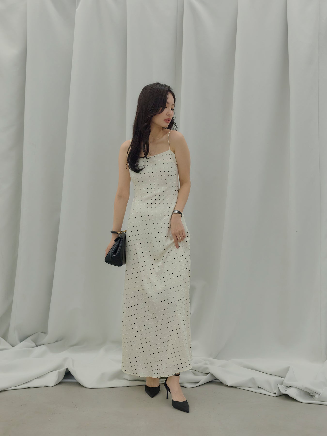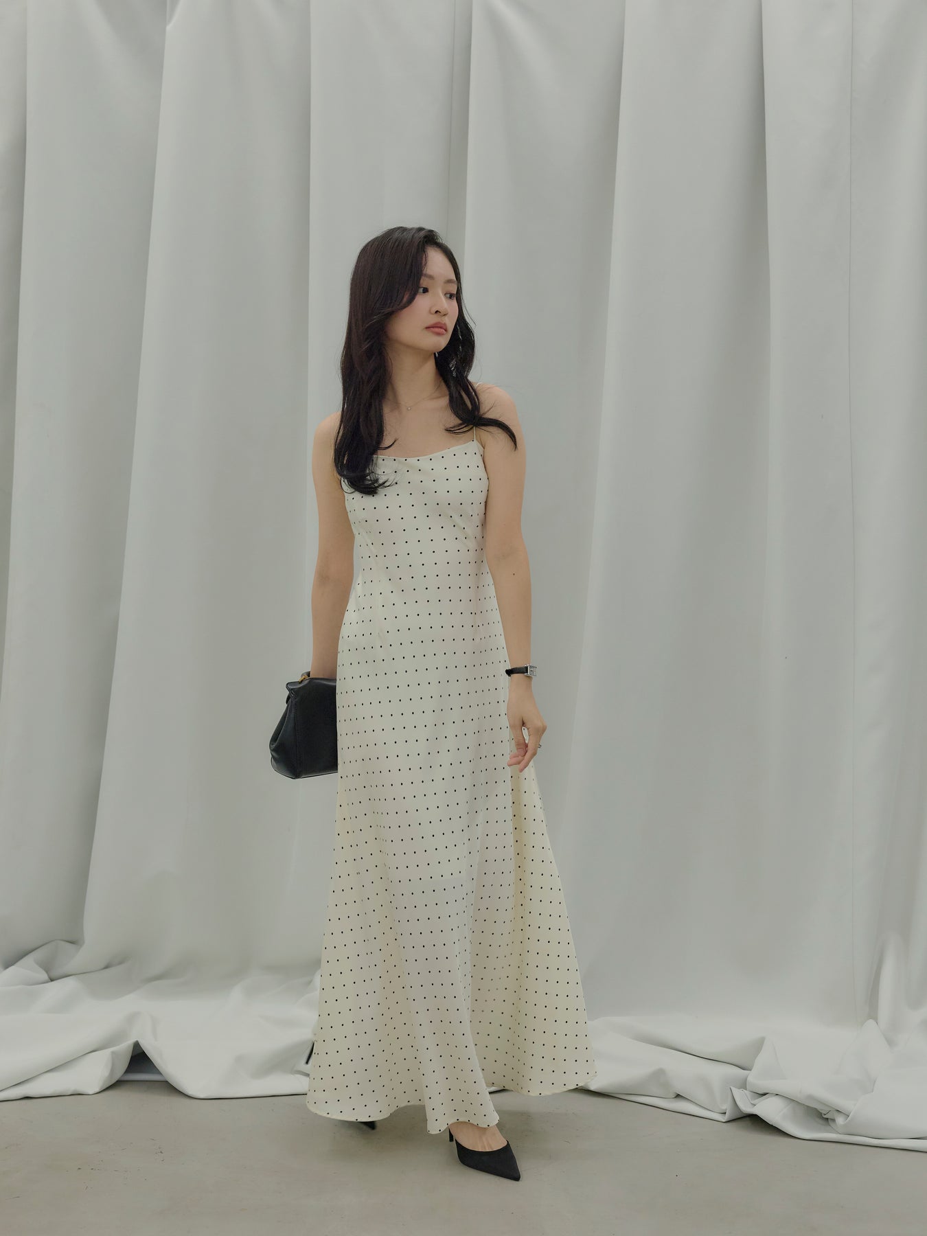 一枚でさらりと着れば、余白を楽しむ大人のドレススタイルに。上からジャケットやシャツを重ねれば、デイリーにも落とし込みやすく、足元をフラットからヒールに変えるだけでシーンも自然にスライドします。アクセサリーを足してドレスアップするのも、あえて引き算して素肌感を活かすのもおすすめ。