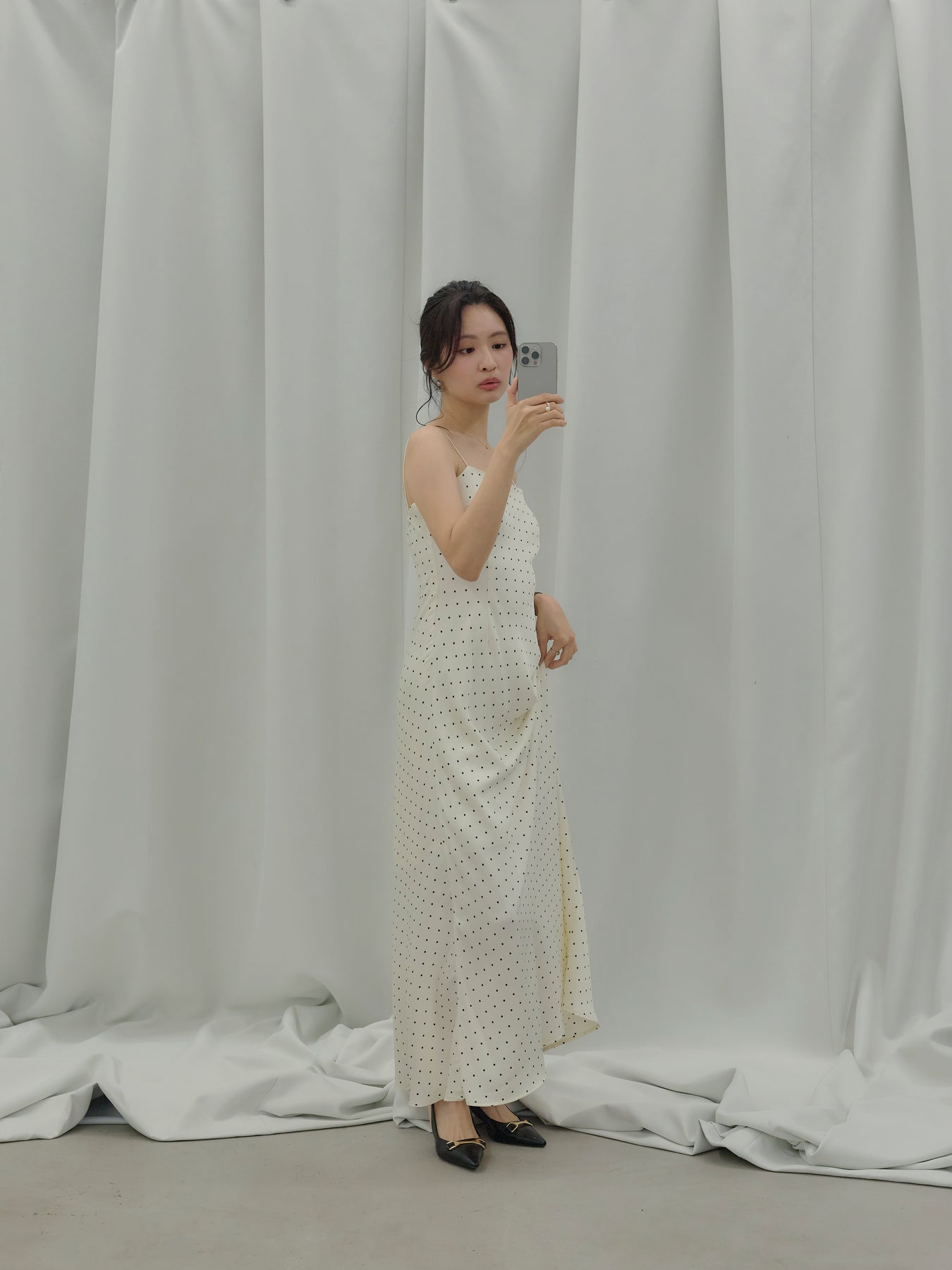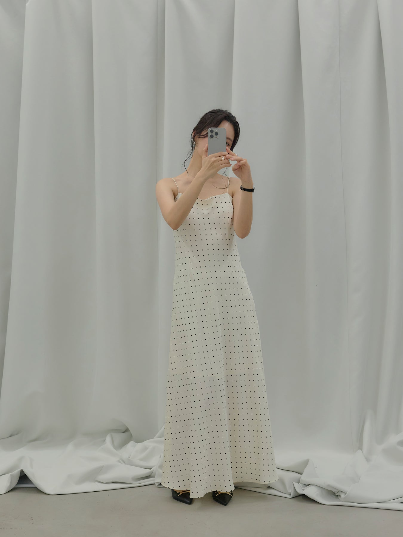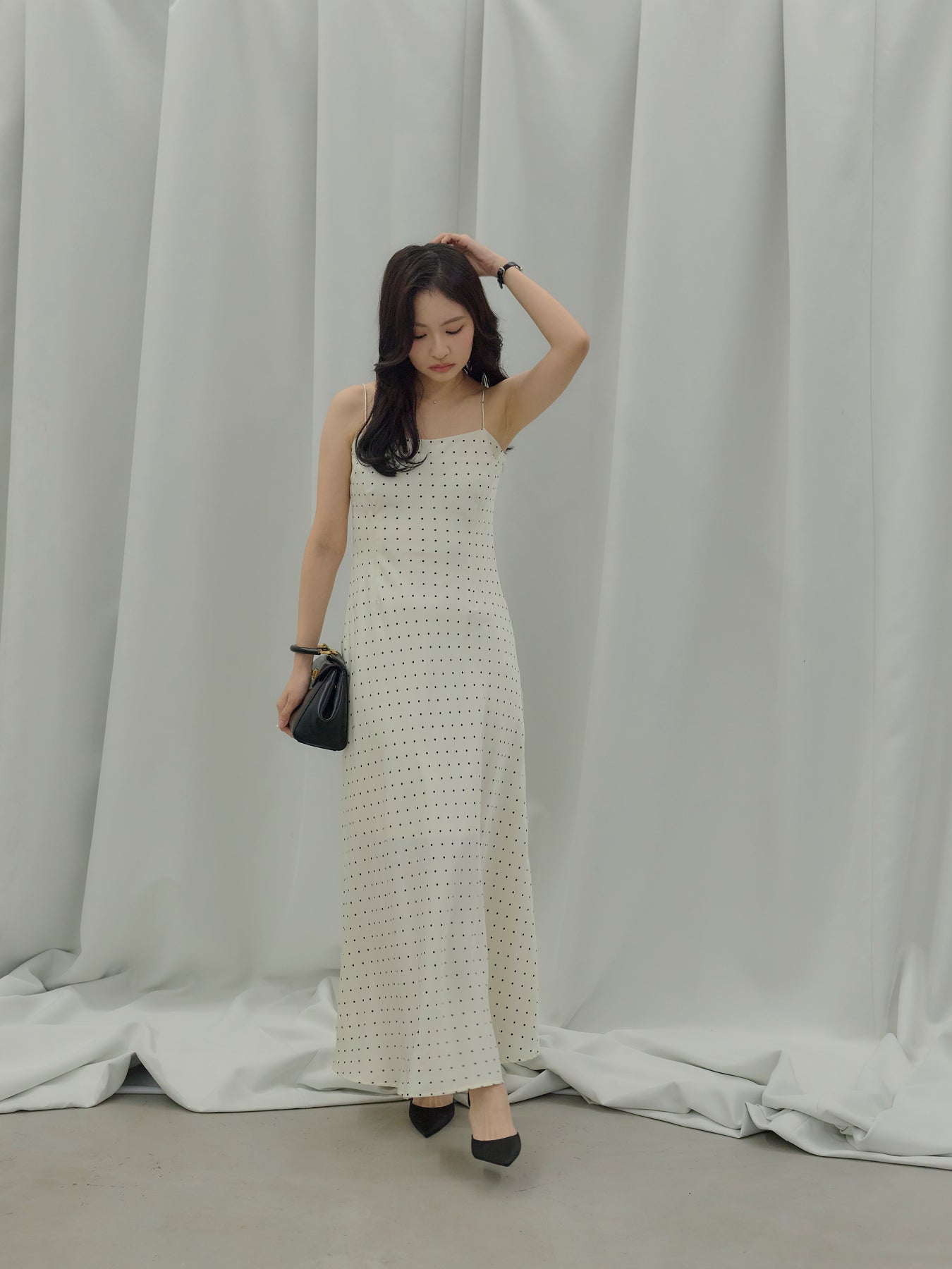 一枚でさらりと着れば、余白を楽しむ大人のドレススタイルに。上からジャケットやシャツを重ねれば、デイリーにも落とし込みやすく、足元をフラットからヒールに変えるだけでシーンも自然にスライドします。アクセサリーを足してドレスアップするのも、あえて引き算して素肌感を活かすのもおすすめ。