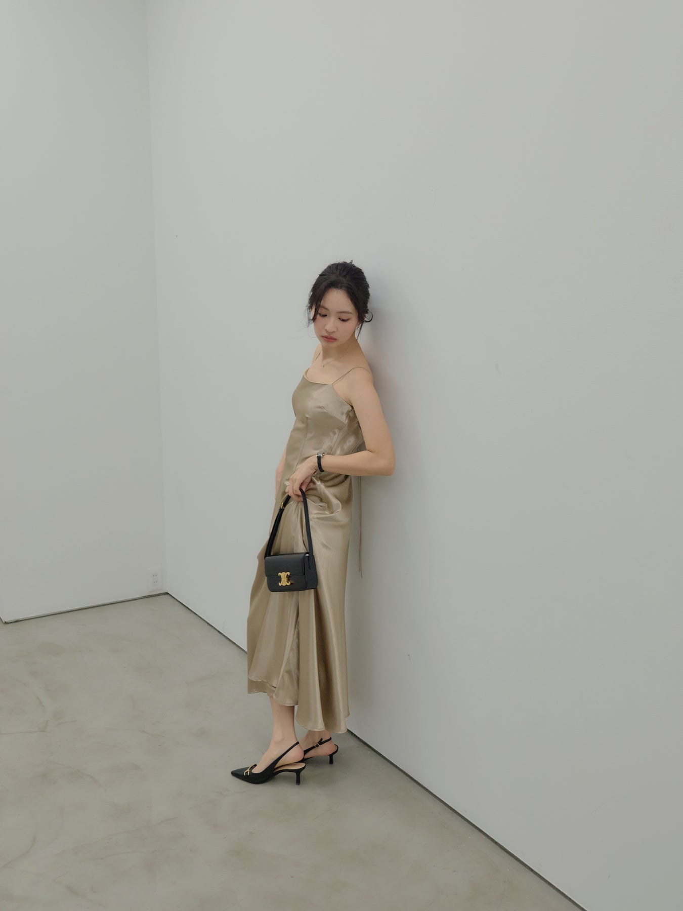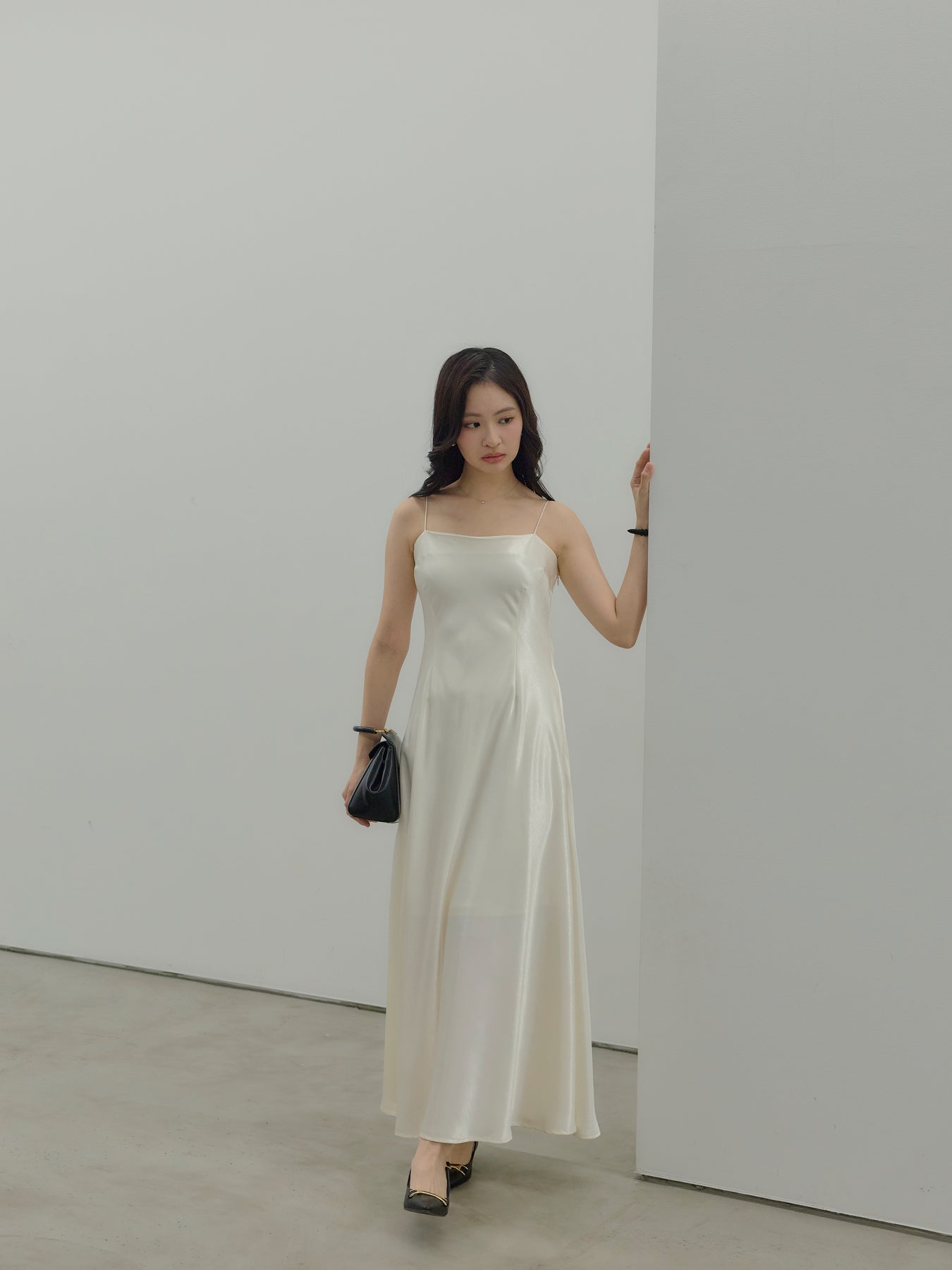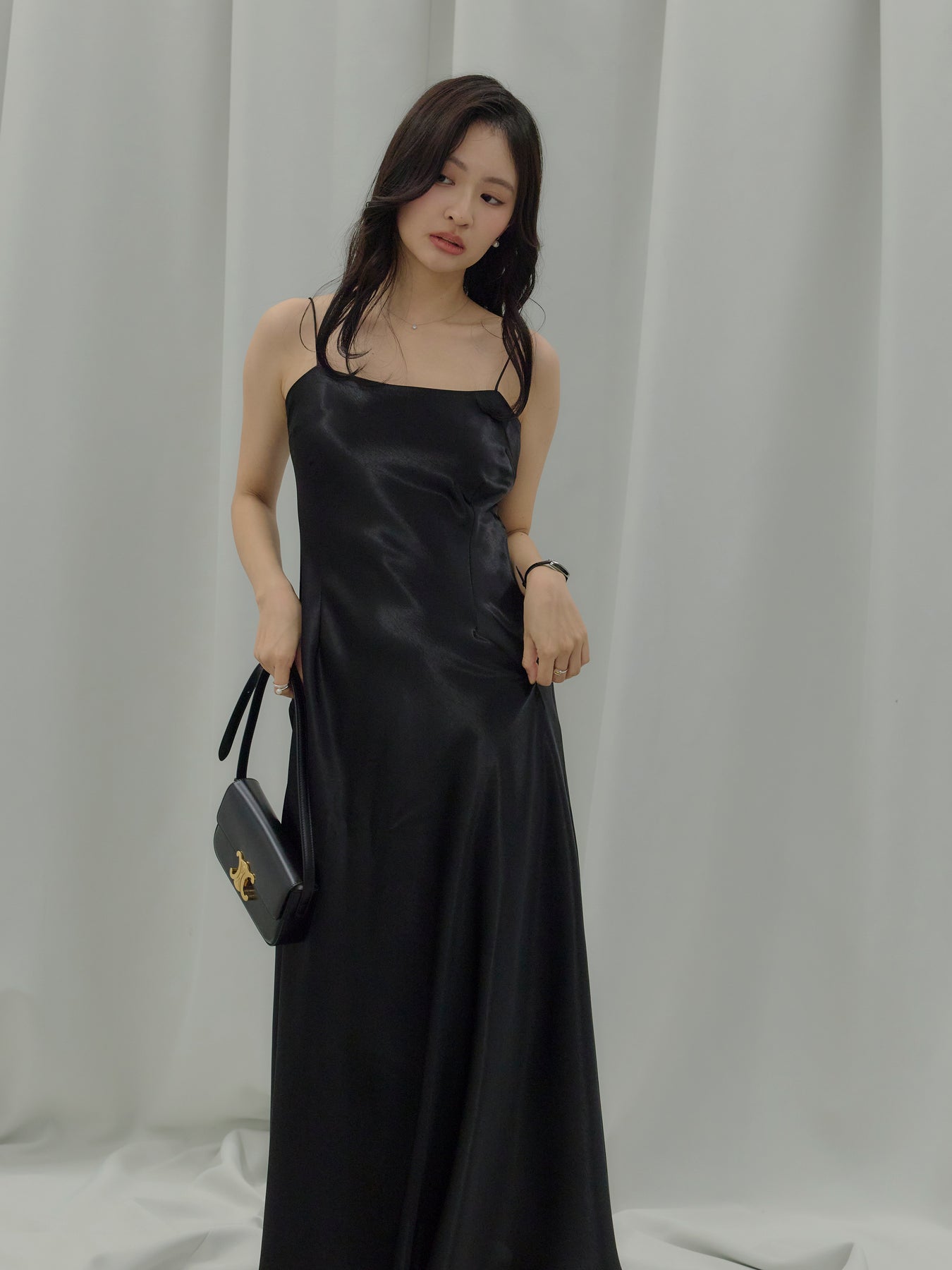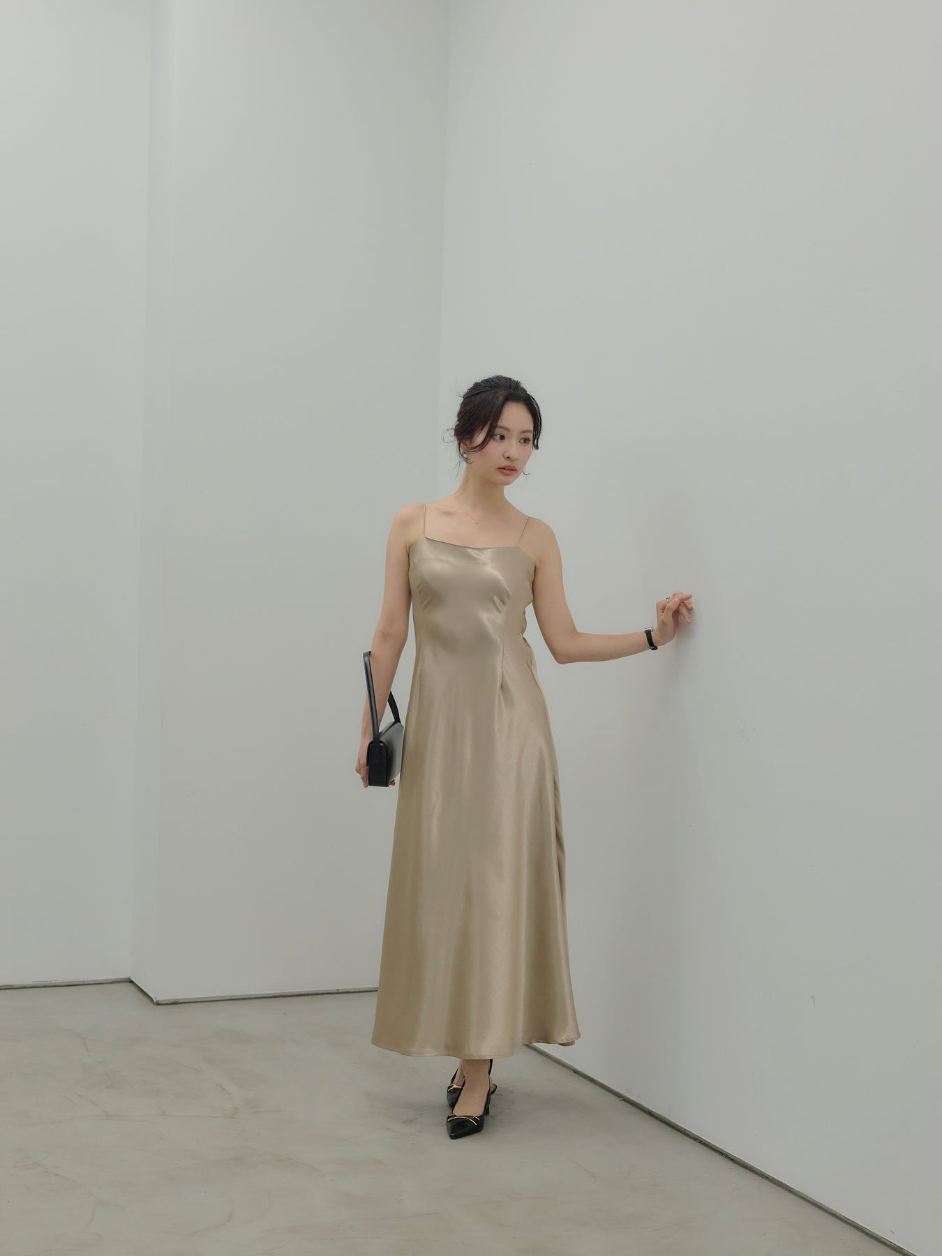 ◆ 【Essential】Back open satin camisole dress