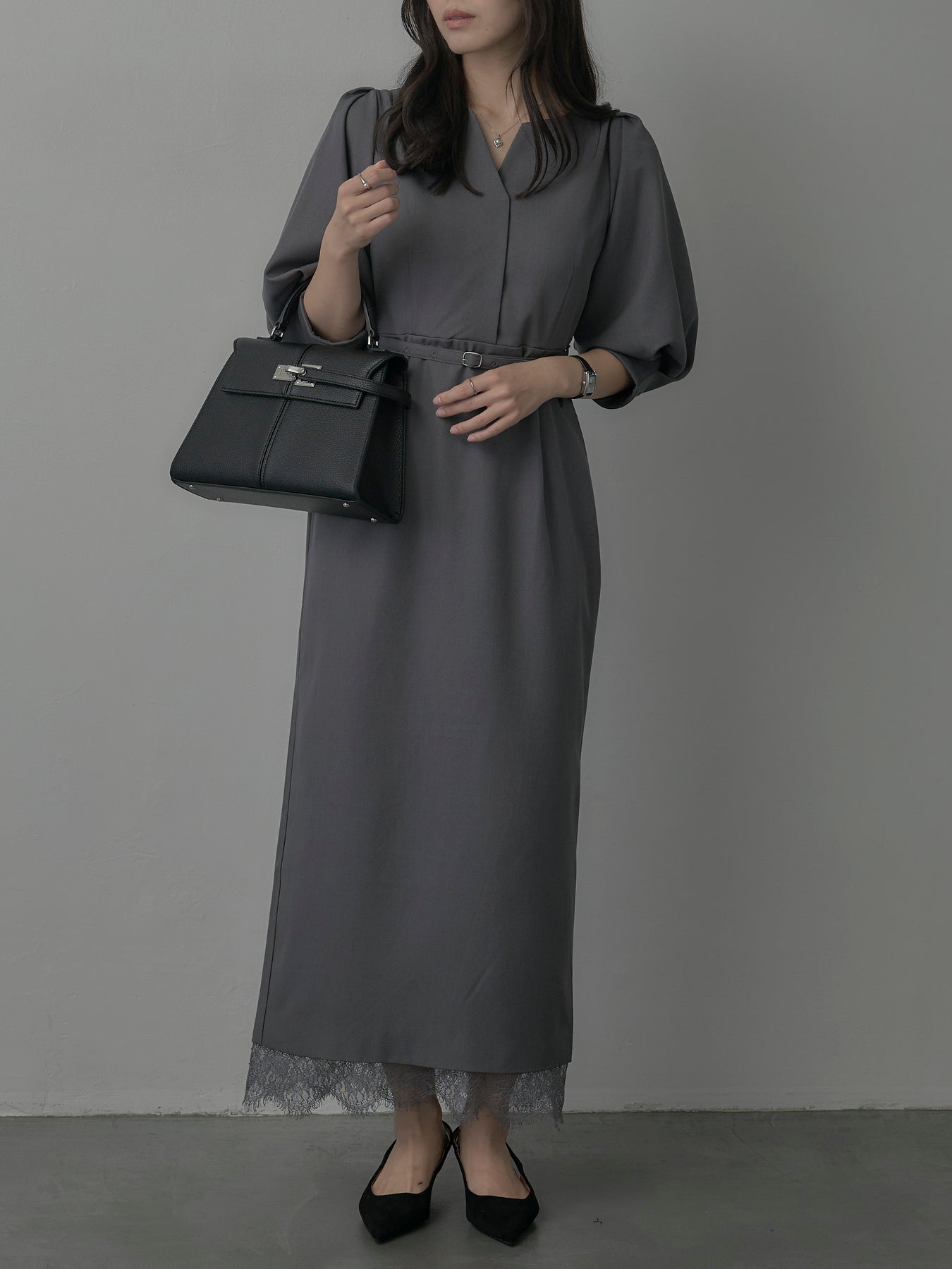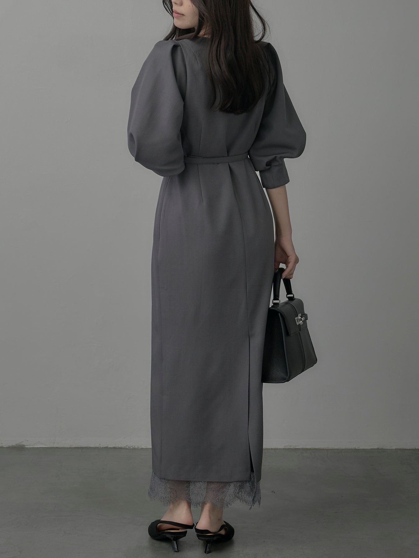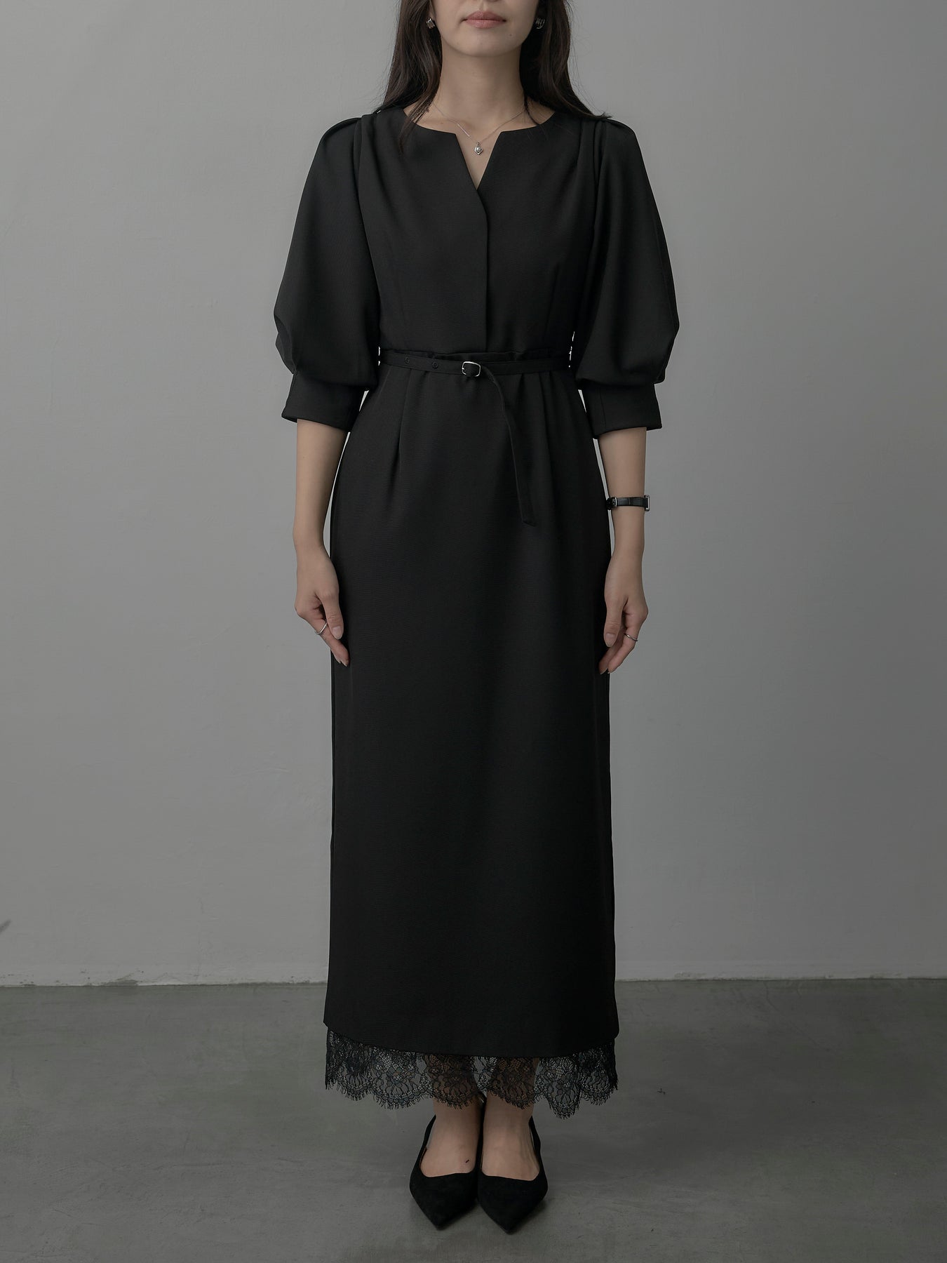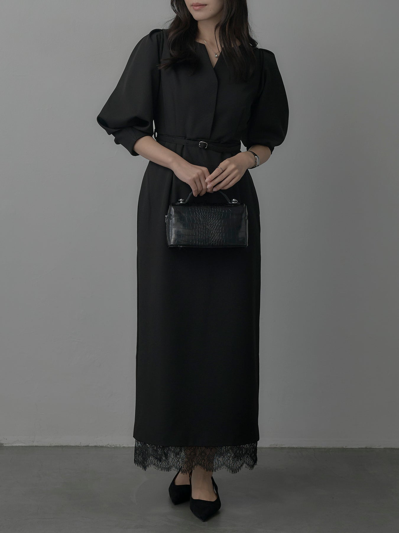 オケージョンシーンにお勧めなワンピース。裾にはレースが施されており、シンプルすぎず華やかな仕上がりになっています。袖のパフスリーブもしっかり立体的なつくりになっています。調整可能なウエストベルト付きで、美しいスタイルに見えるように計算し尽くされたワンピースです。