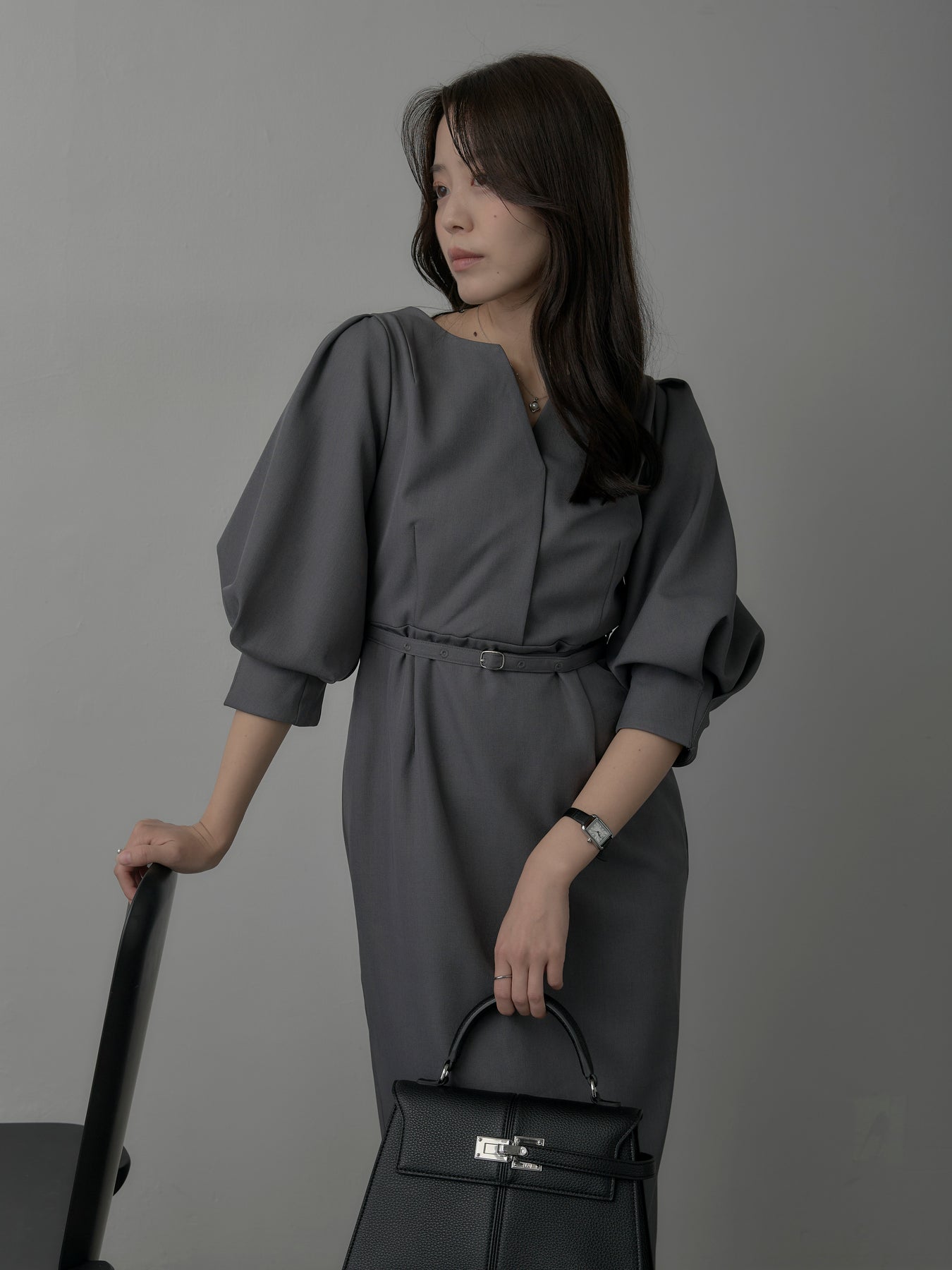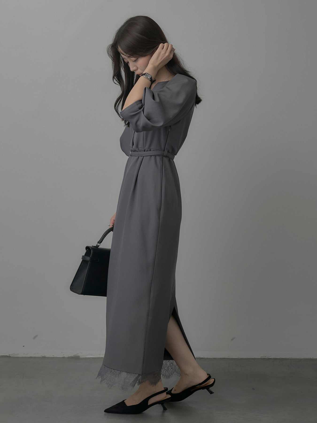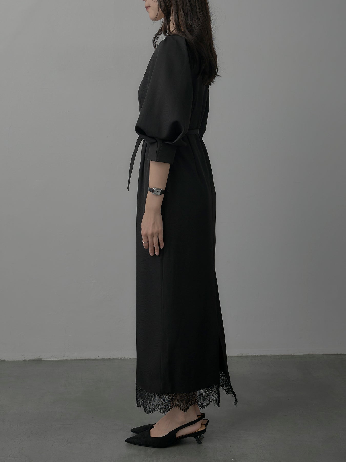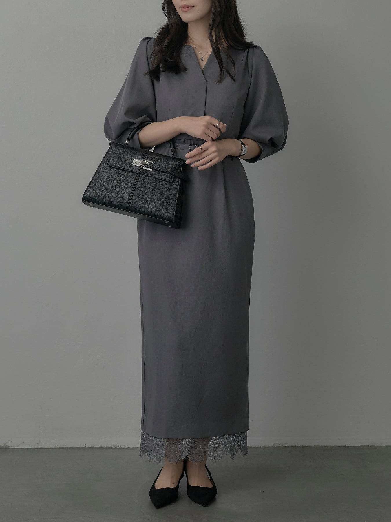 オケージョンシーンにお勧めなワンピース。裾にはレースが施されており、シンプルすぎず華やかな仕上がりになっています。袖のパフスリーブもしっかり立体的なつくりになっています。調整可能なウエストベルト付きで、美しいスタイルに見えるように計算し尽くされたワンピースです。