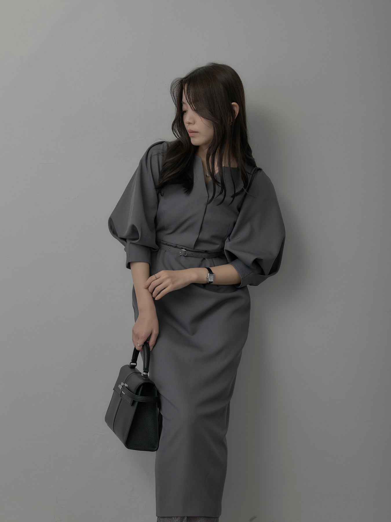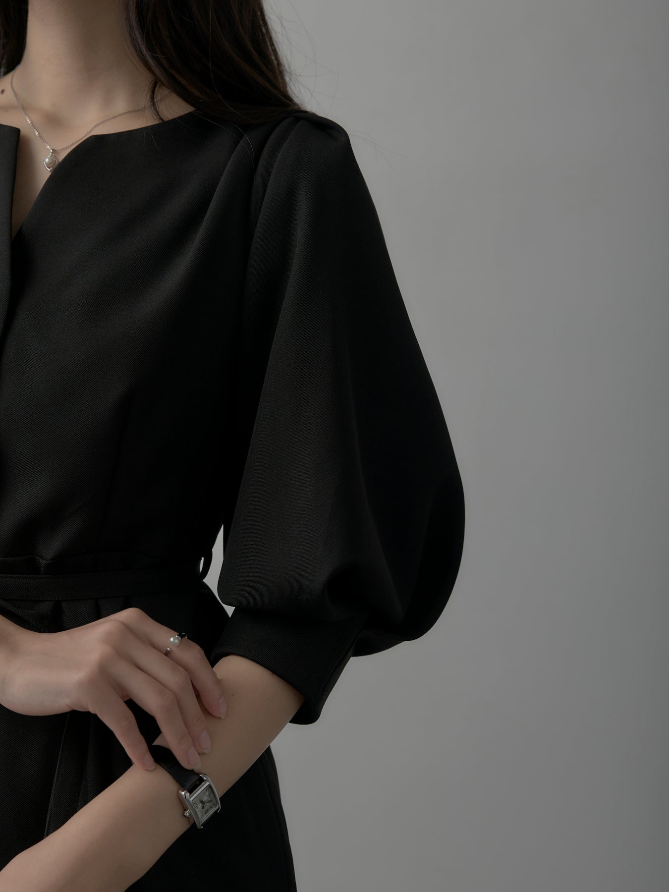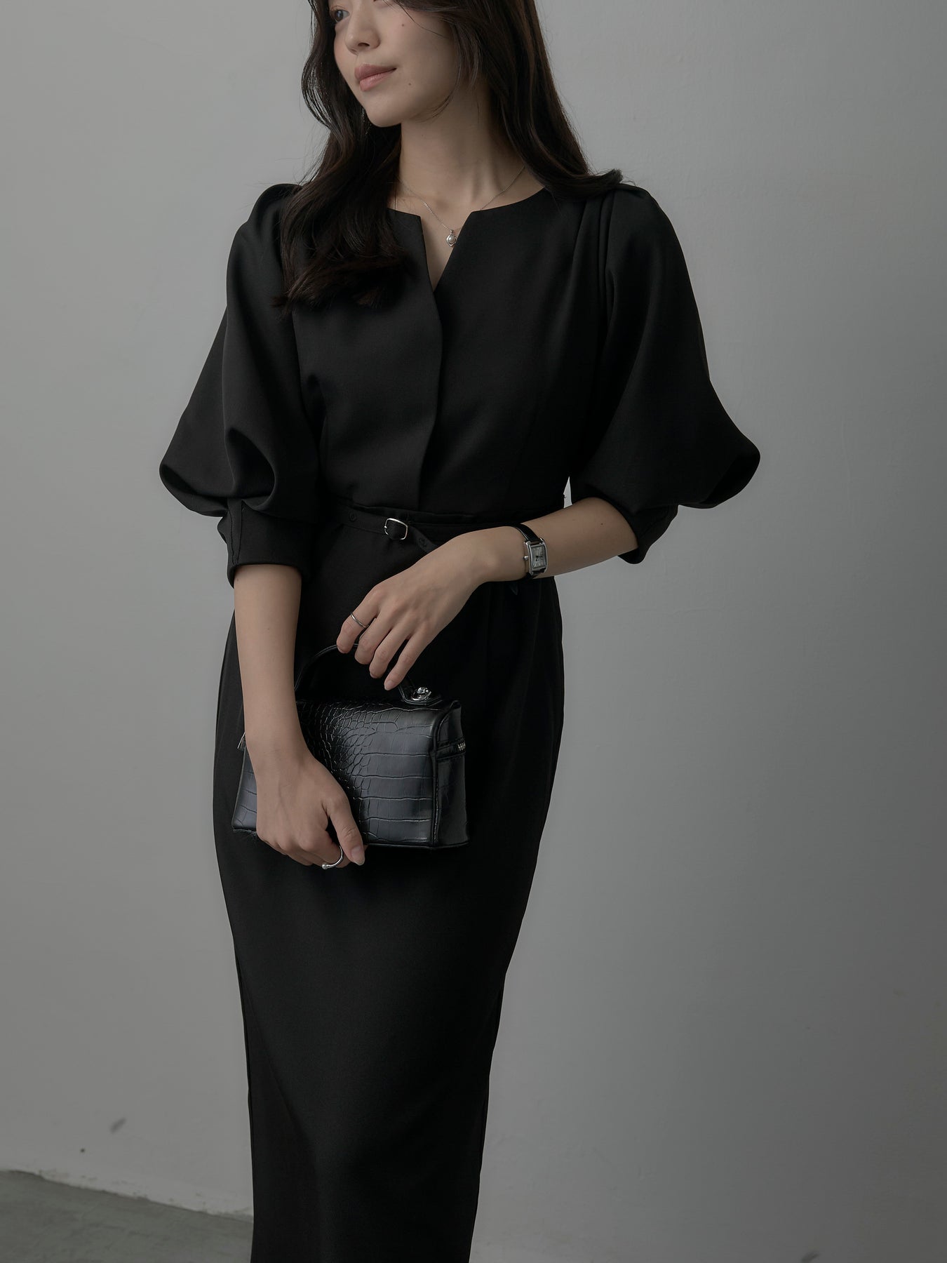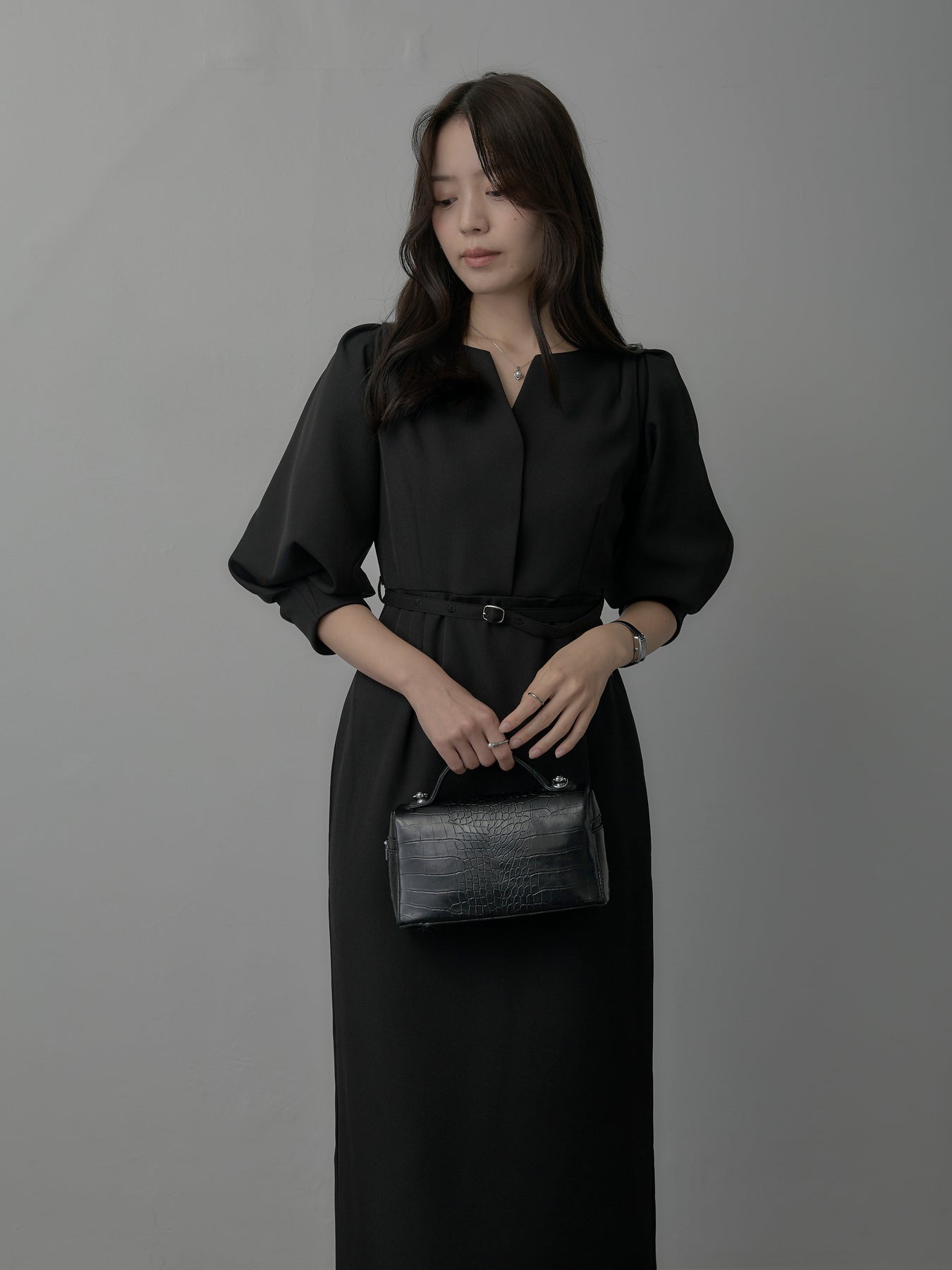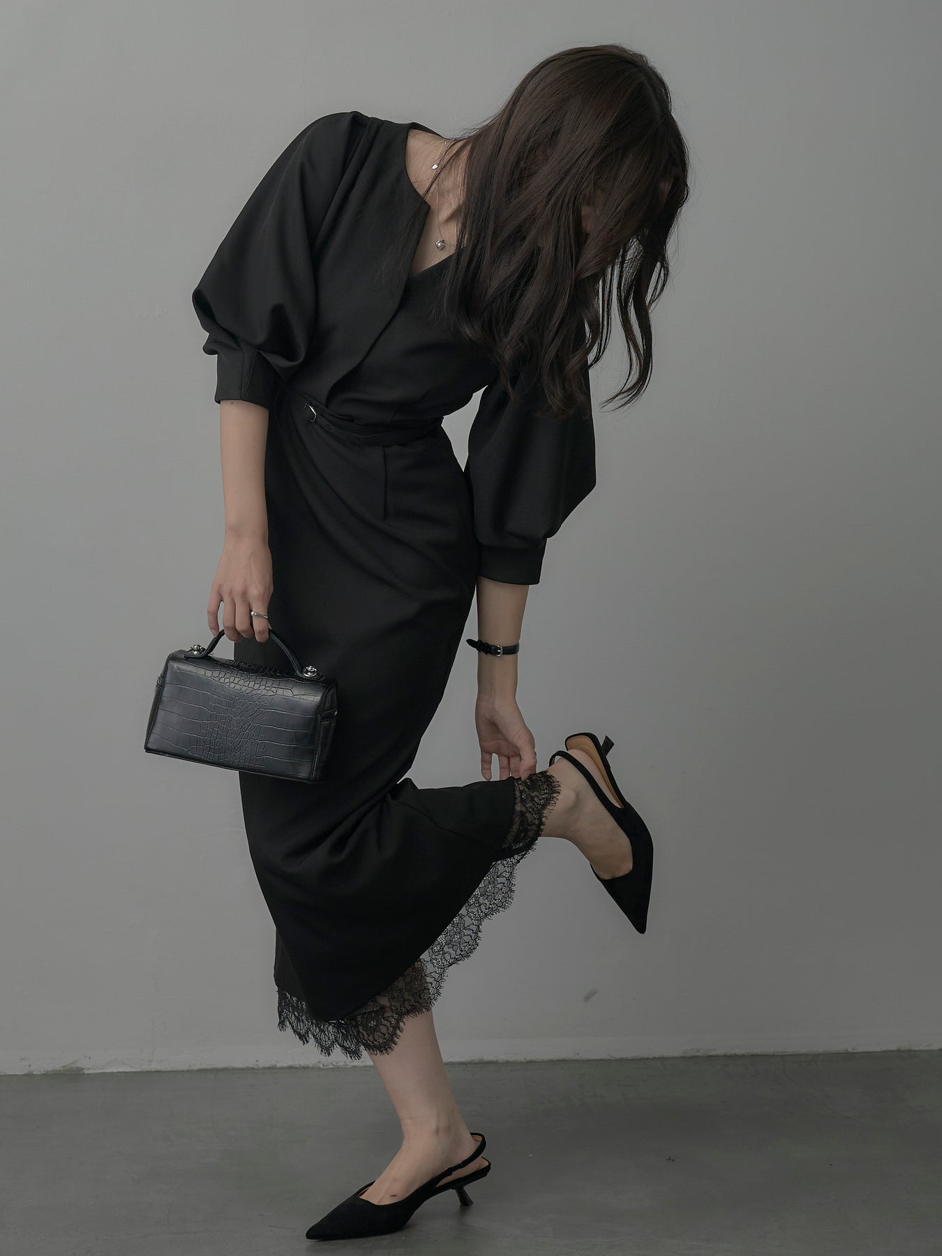 オケージョンシーンにお勧めなワンピース。裾にはレースが施されており、シンプルすぎず華やかな仕上がりになっています。袖のパフスリーブもしっかり立体的なつくりになっています。調整可能なウエストベルト付きで、美しいスタイルに見えるように計算し尽くされたワンピースです。