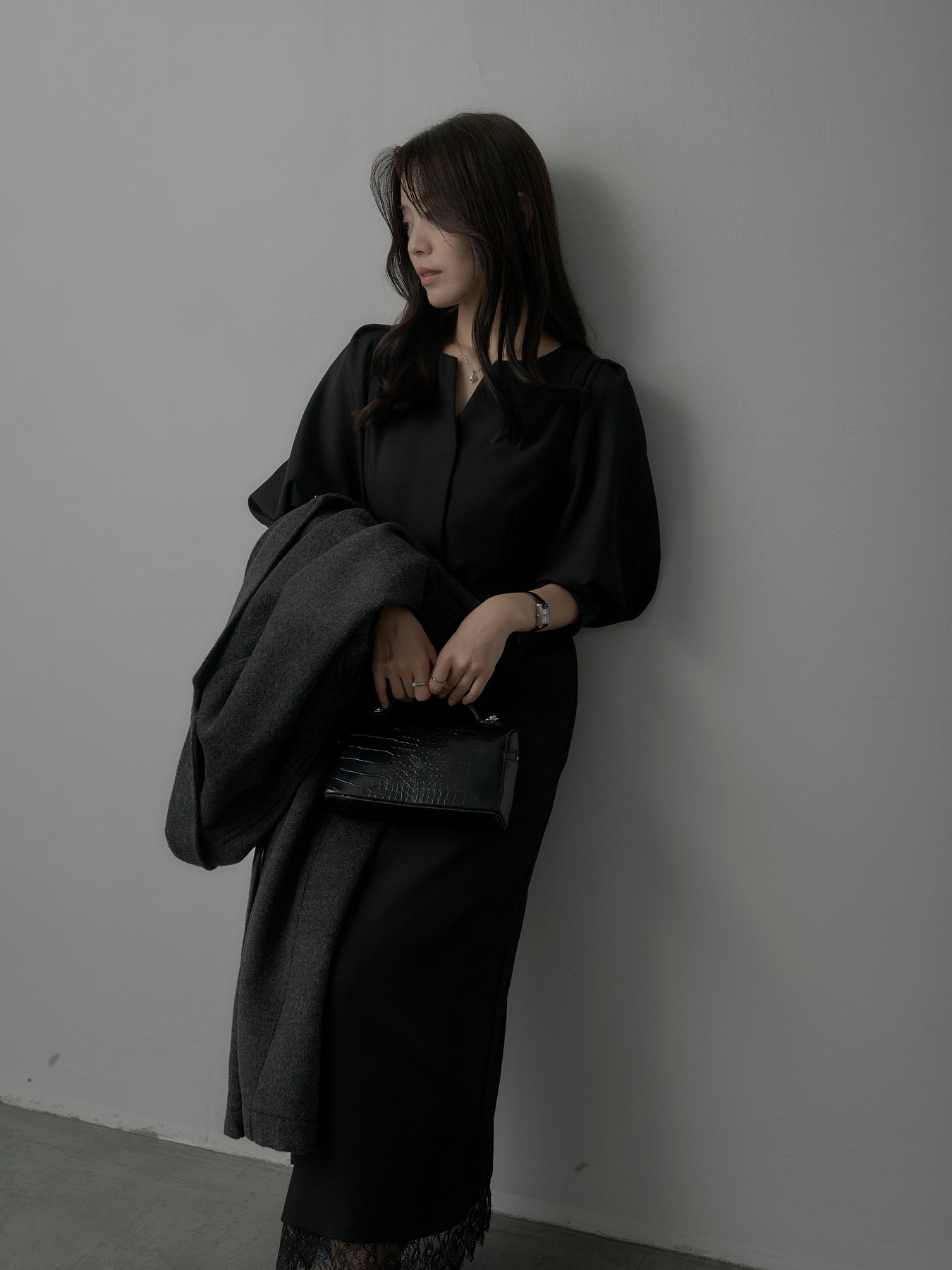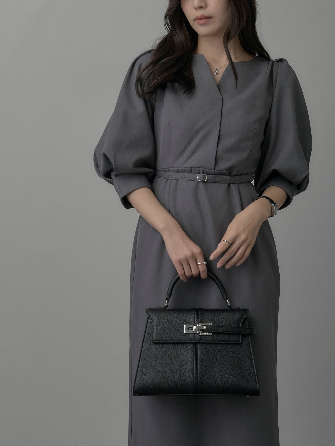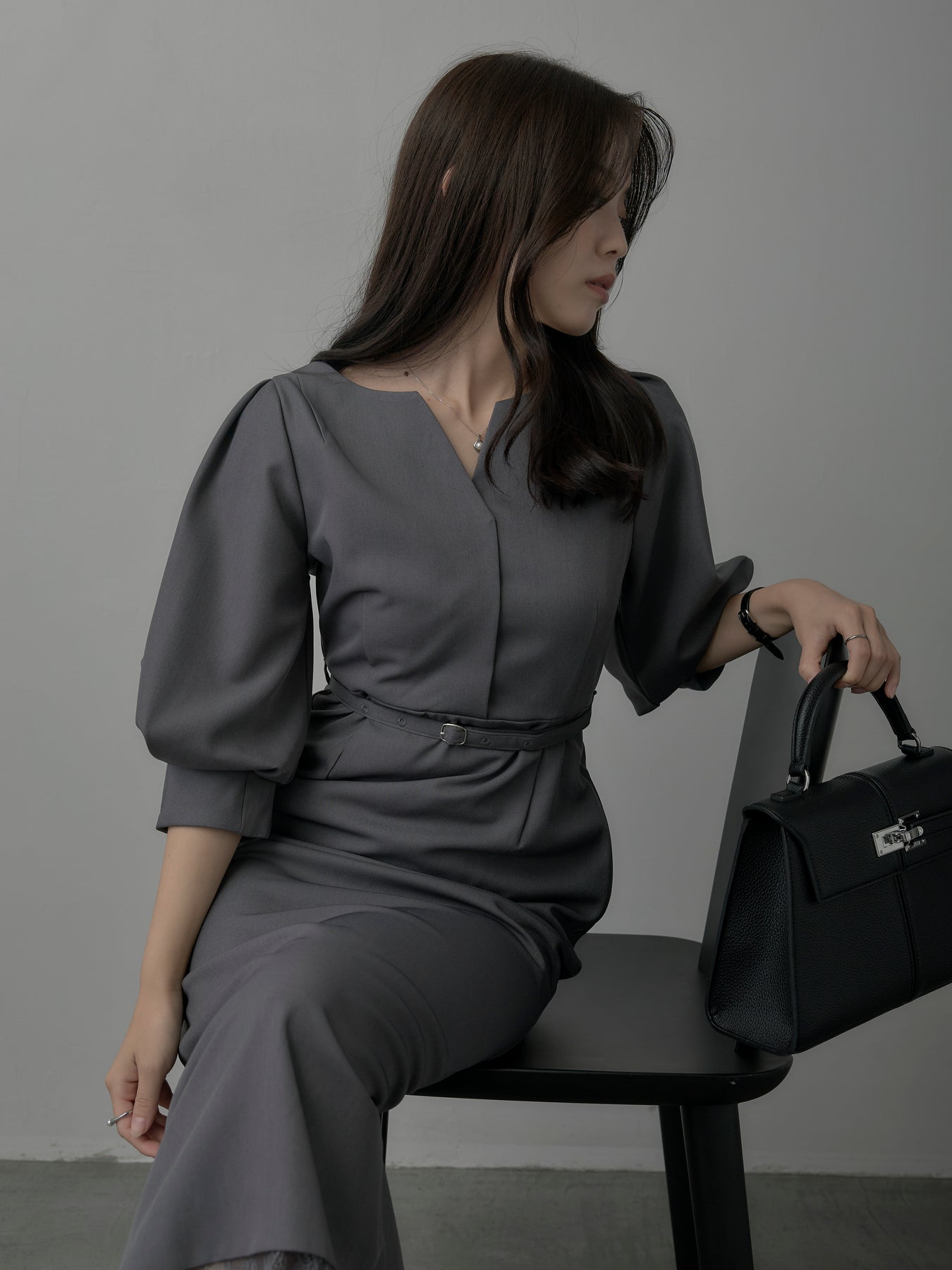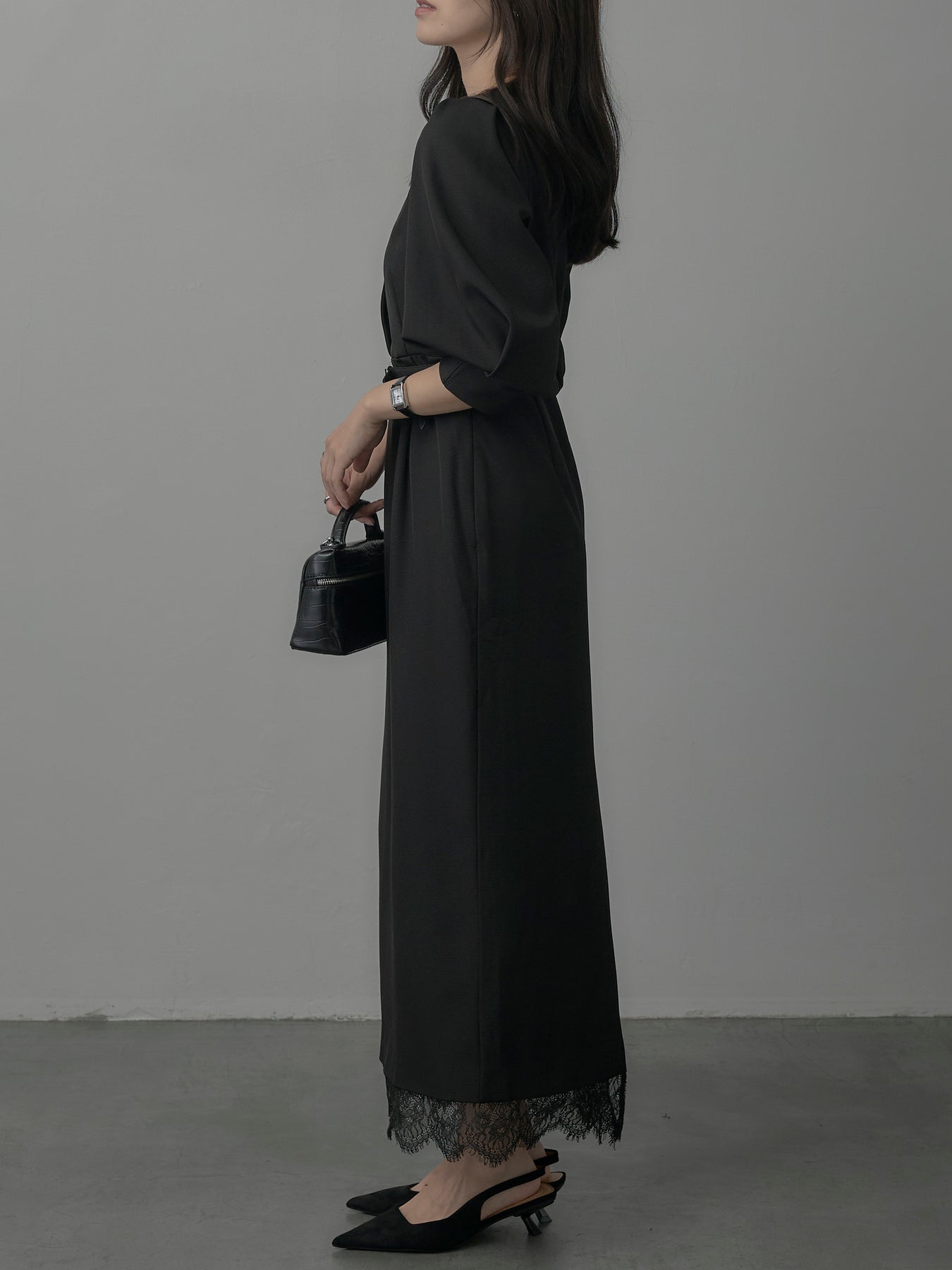 オケージョンシーンにお勧めなワンピース。裾にはレースが施されており、シンプルすぎず華やかな仕上がりになっています。袖のパフスリーブもしっかり立体的なつくりになっています。調整可能なウエストベルト付きで、美しいスタイルに見えるように計算し尽くされたワンピースです。