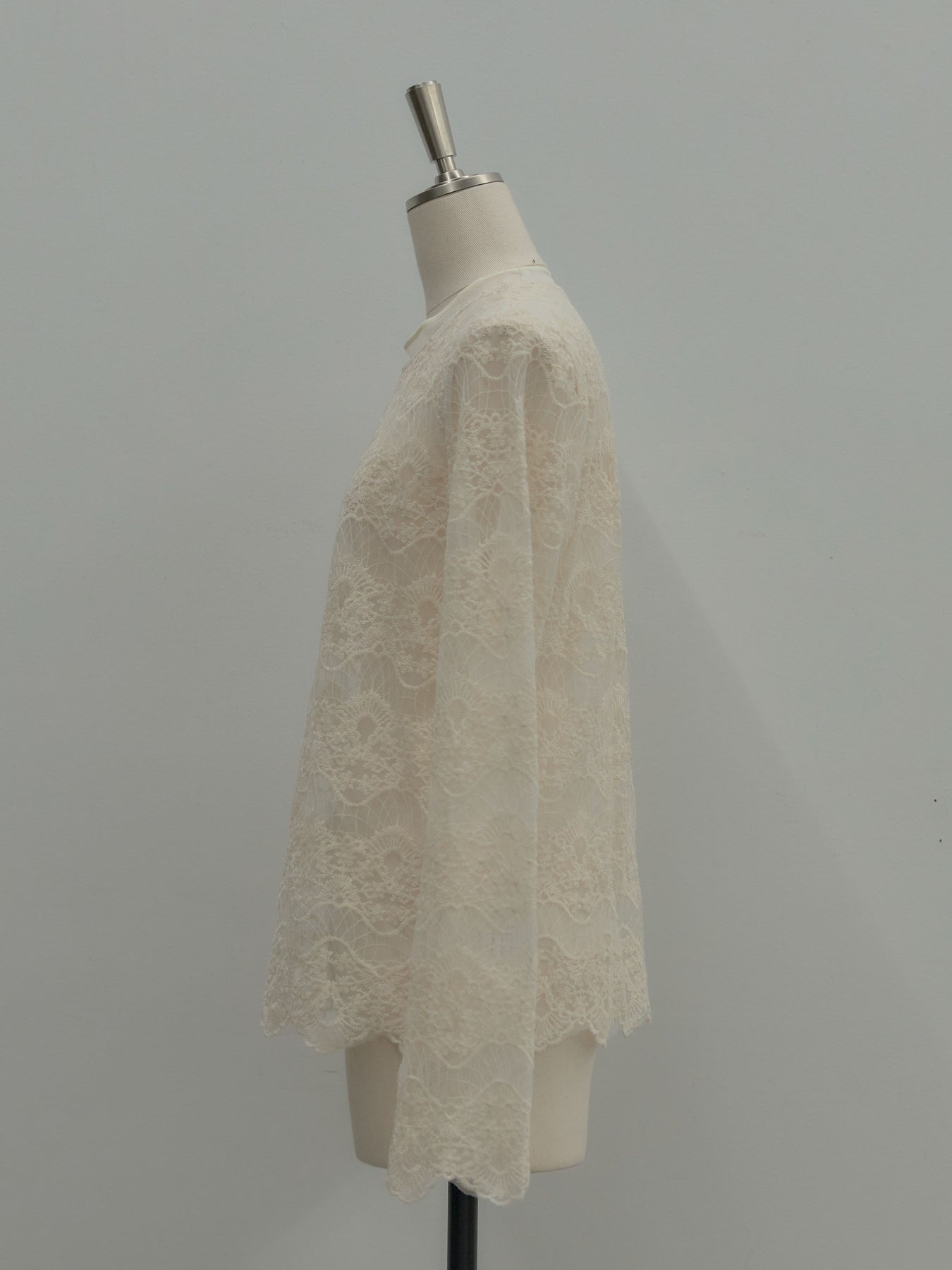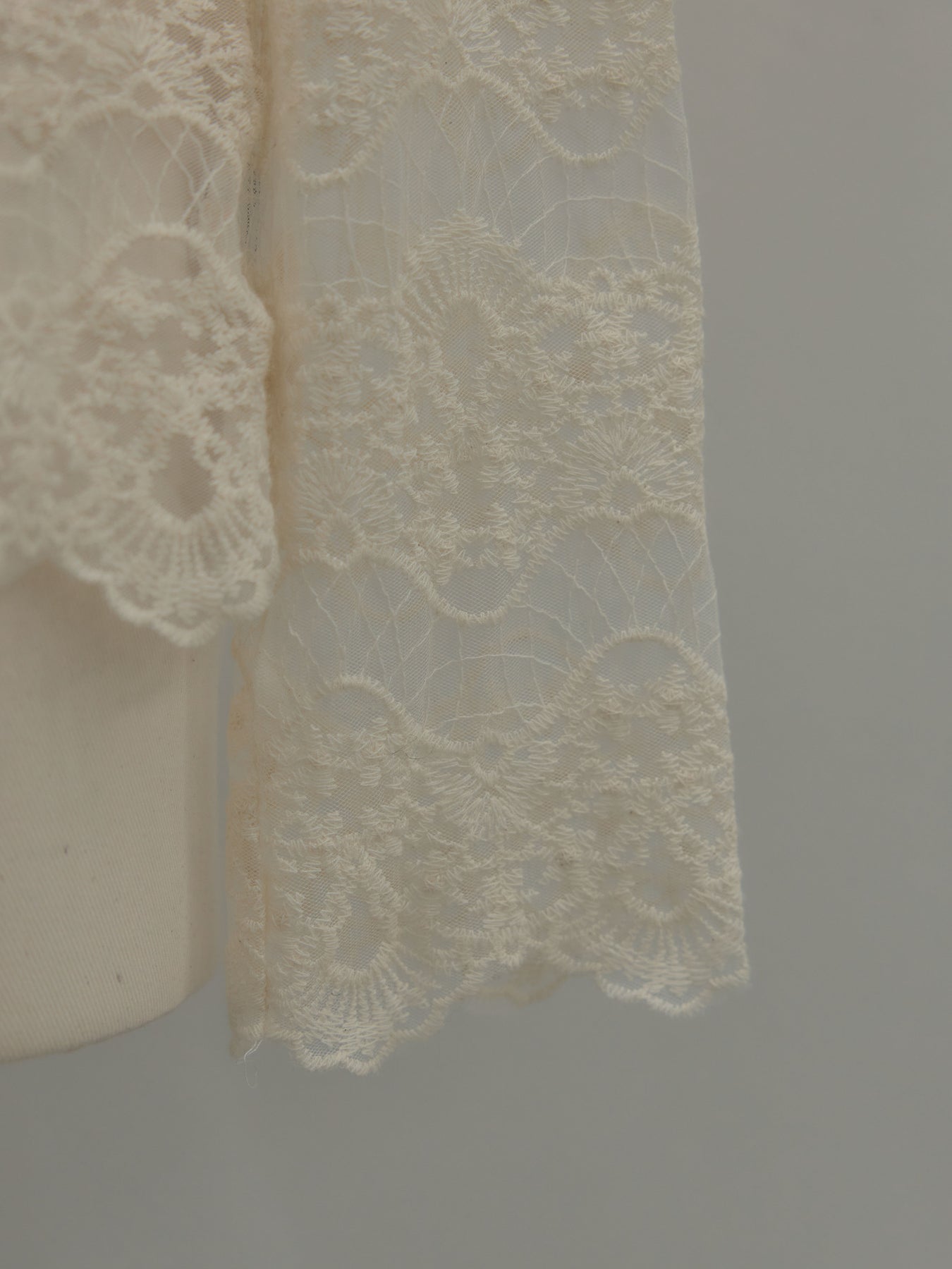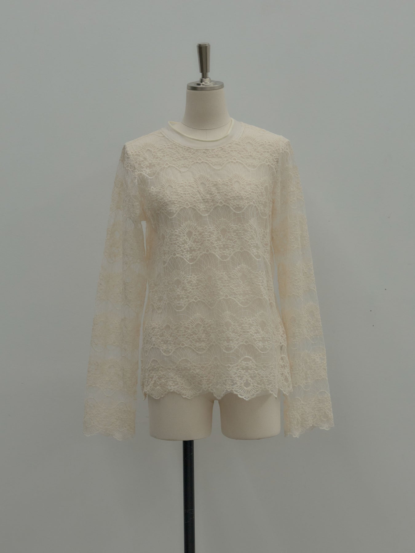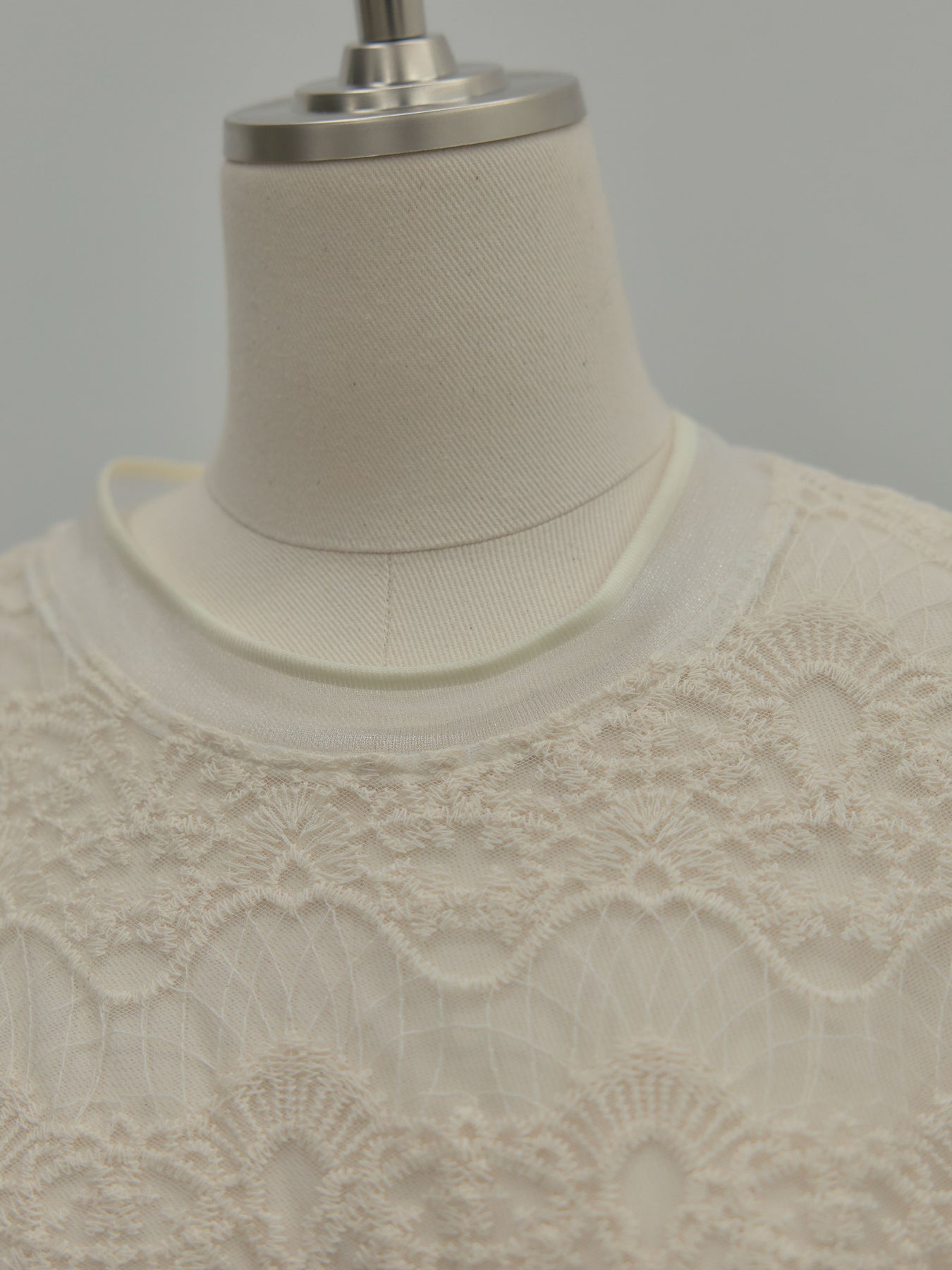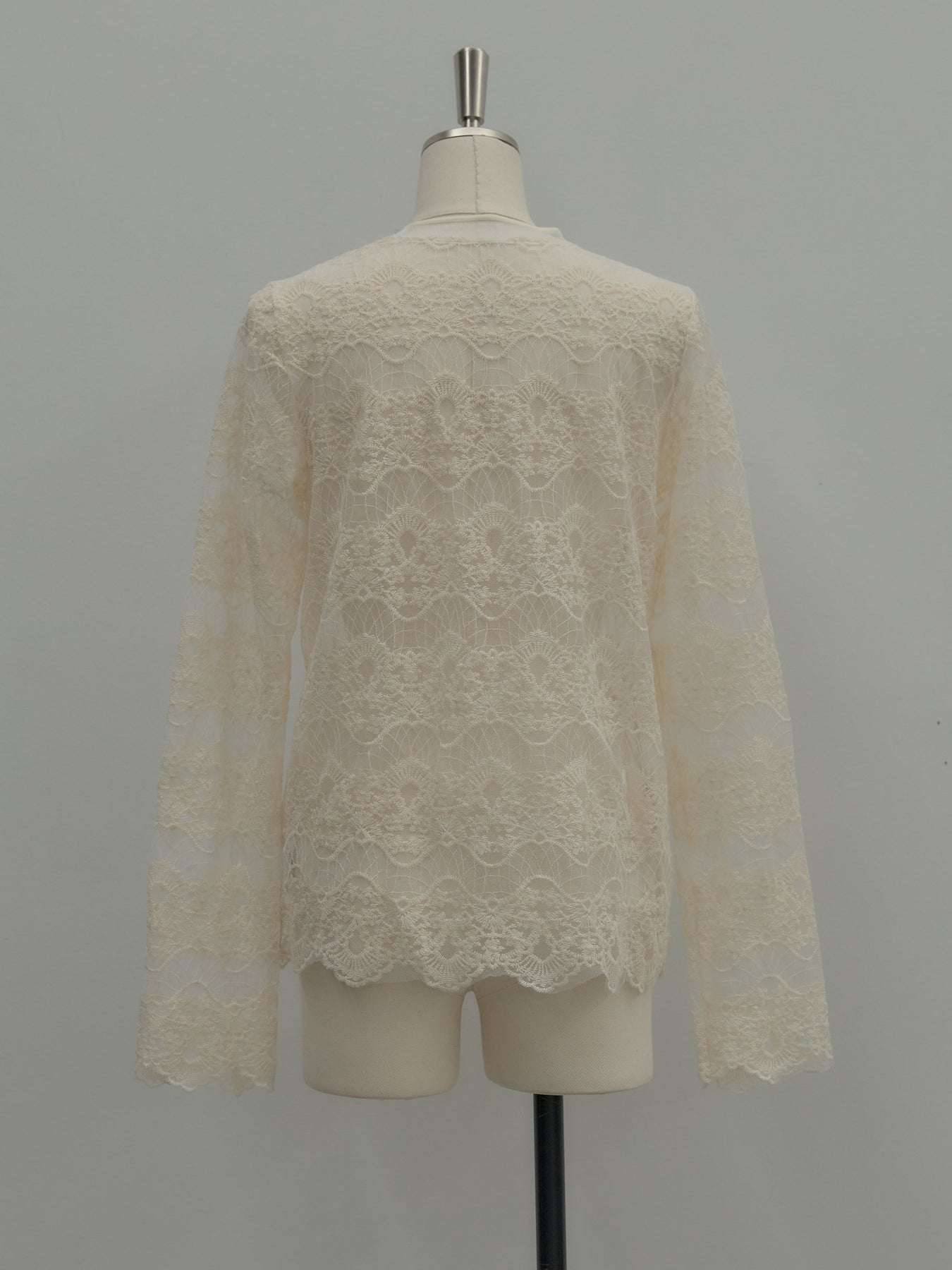 繊細なチュールレースが軽やかに映えるトップス。 アイボリーの柔らかな色味が女性らしさを引き立て、レイヤードにも活躍します。 一枚でもインナーとしても使いやすく、コーデに程よい華やかさを添えるアイテム。