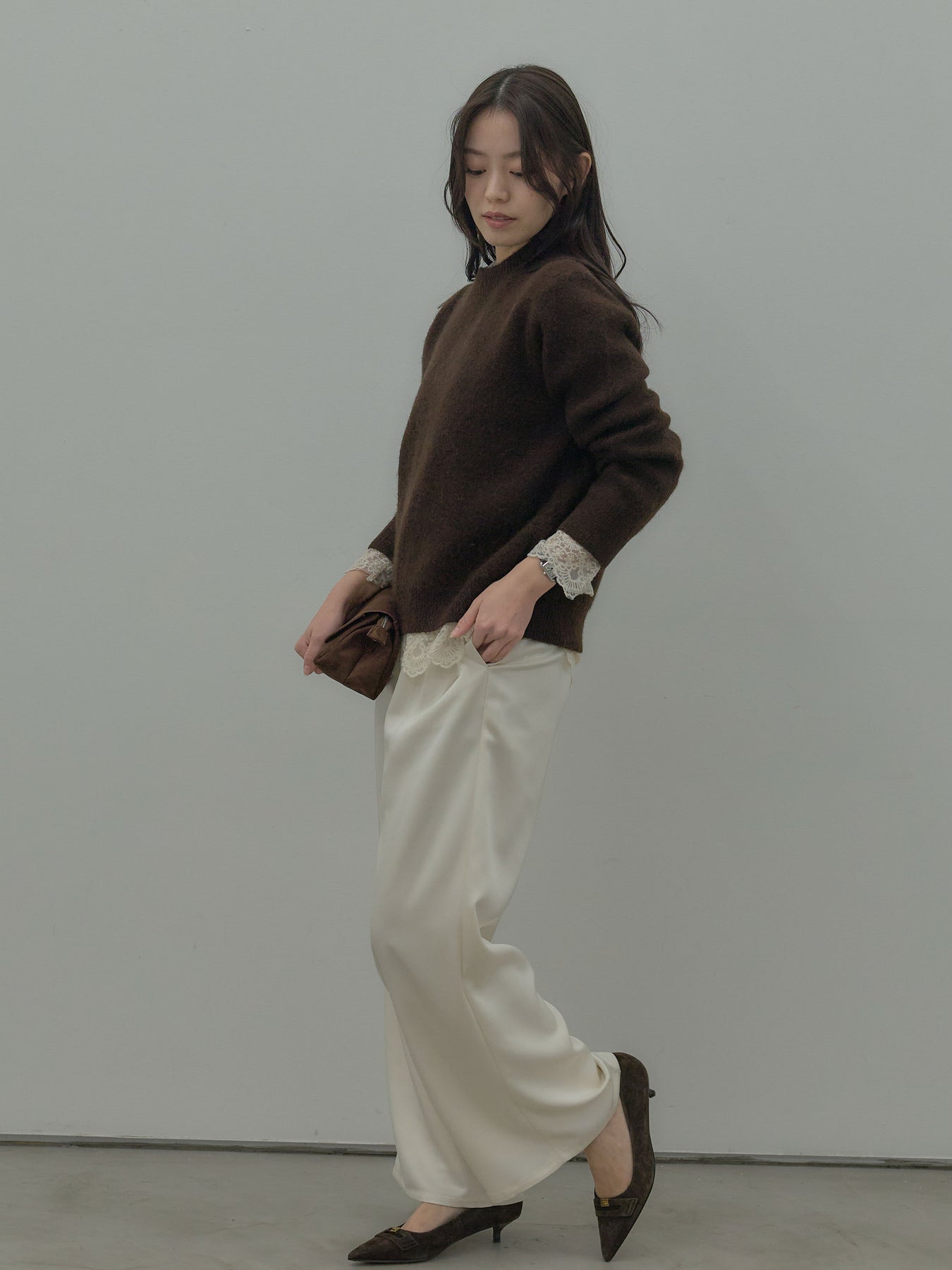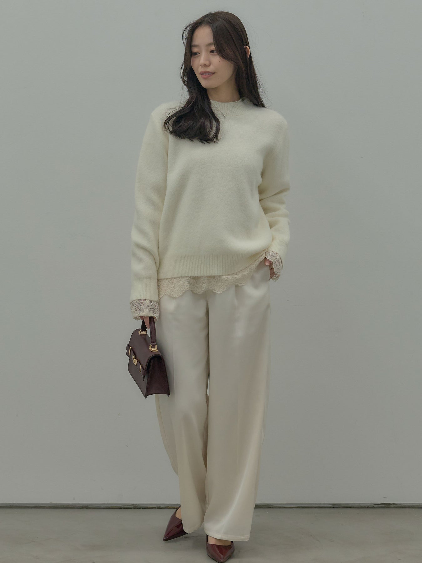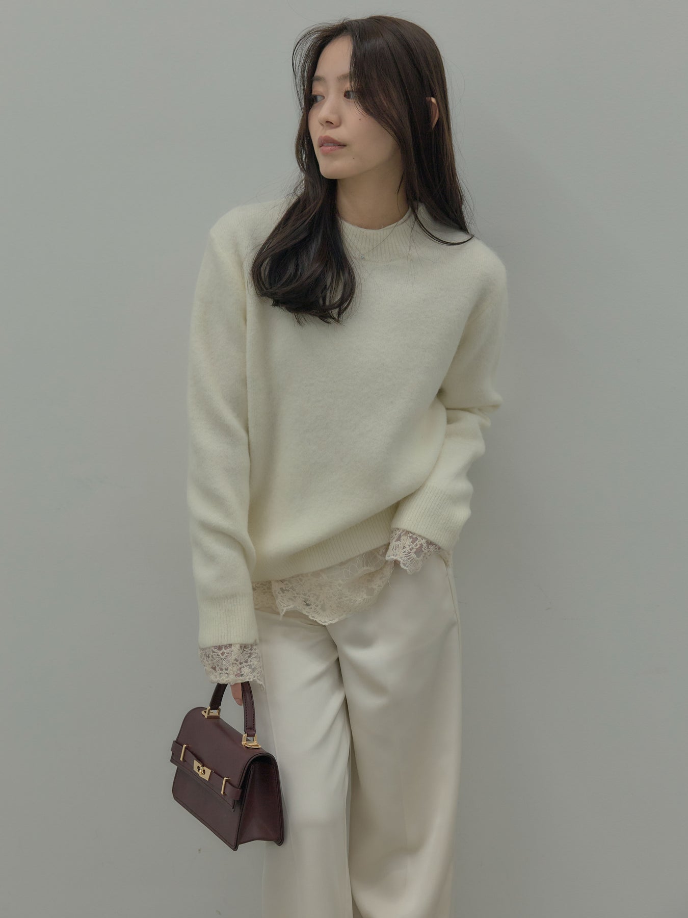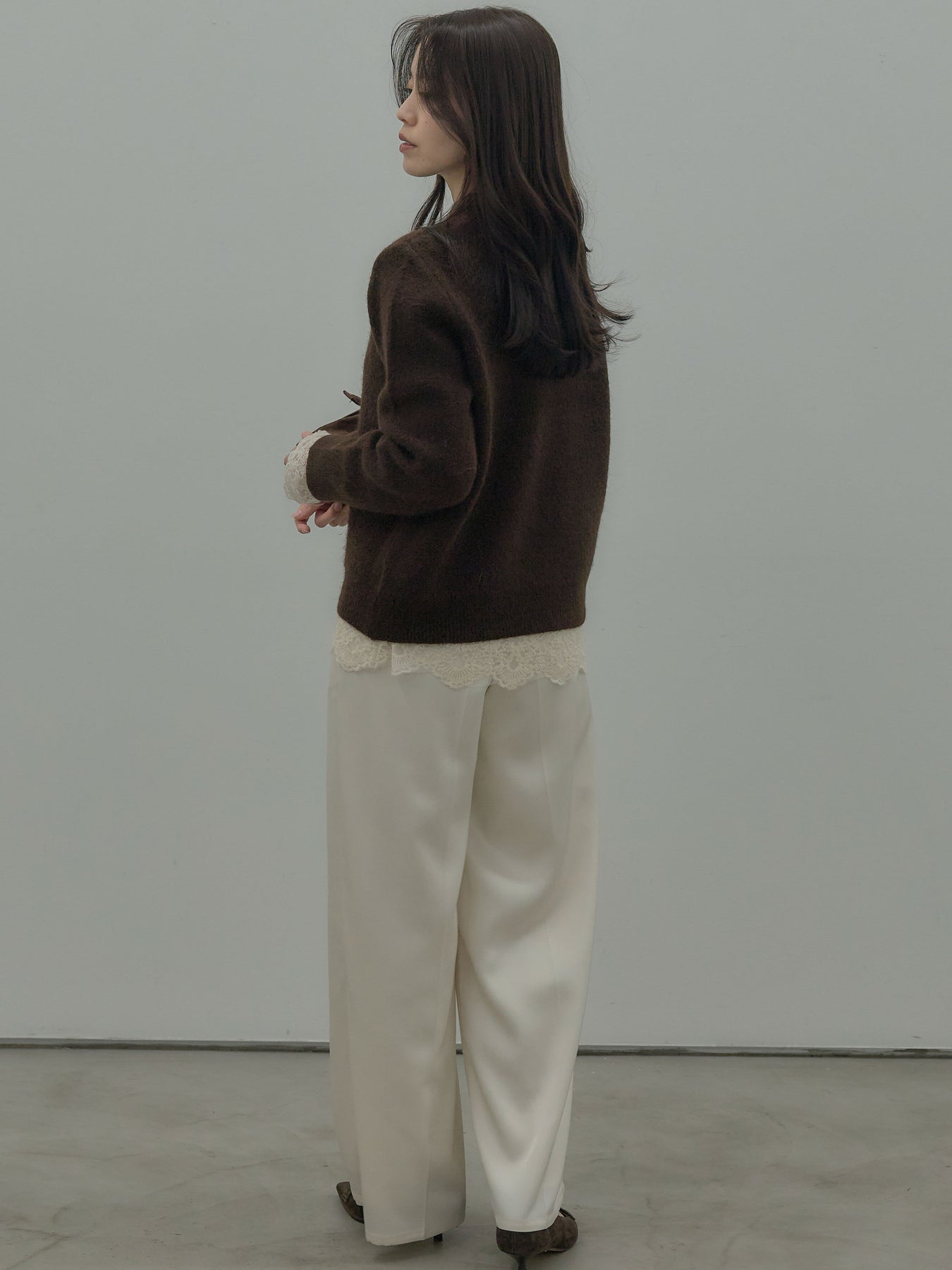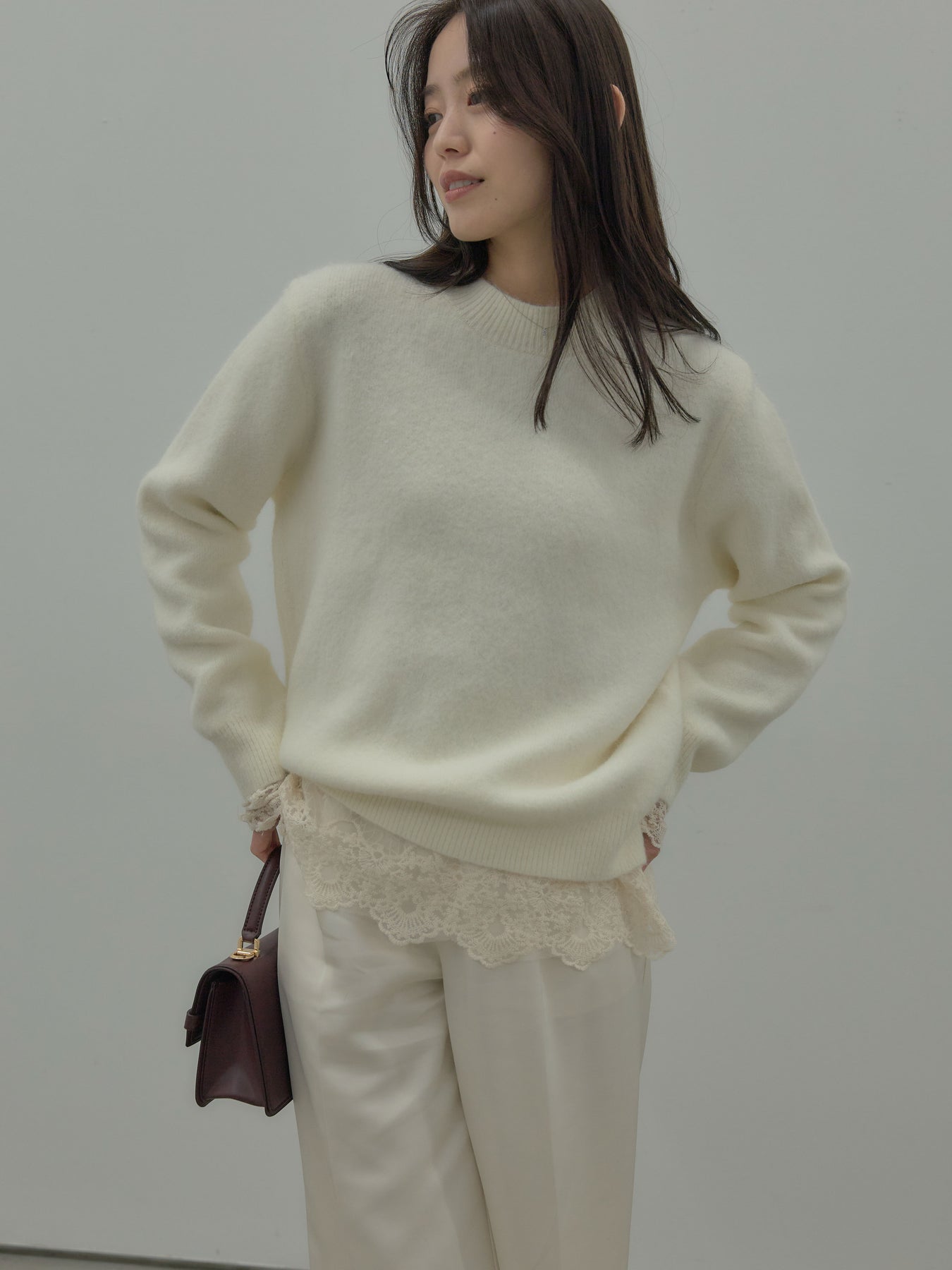繊細なチュールレースが軽やかに映えるトップス。 アイボリーの柔らかな色味が女性らしさを引き立て、レイヤードにも活躍します。 一枚でもインナーとしても使いやすく、コーデに程よい華やかさを添えるアイテム。
