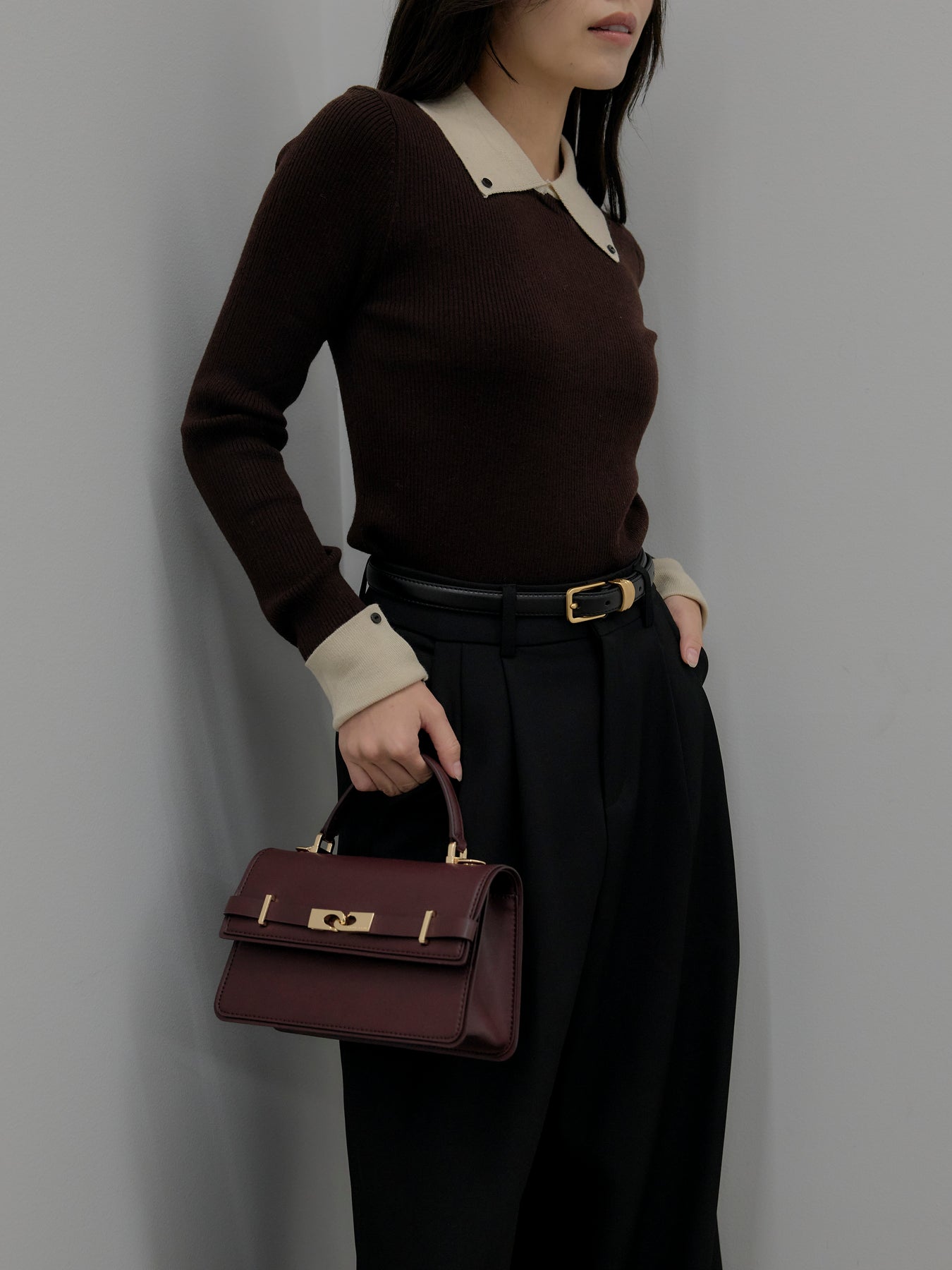 配色のカフスデザインがアクセントになったニットポロ。 程よく身体に沿うシルエットで、上品さとカジュアルさを兼ね備えた一枚です。 襟付きデザインがきちんと感をプラスし、デニムからスカートまで幅広いスタイリングにマッチします。