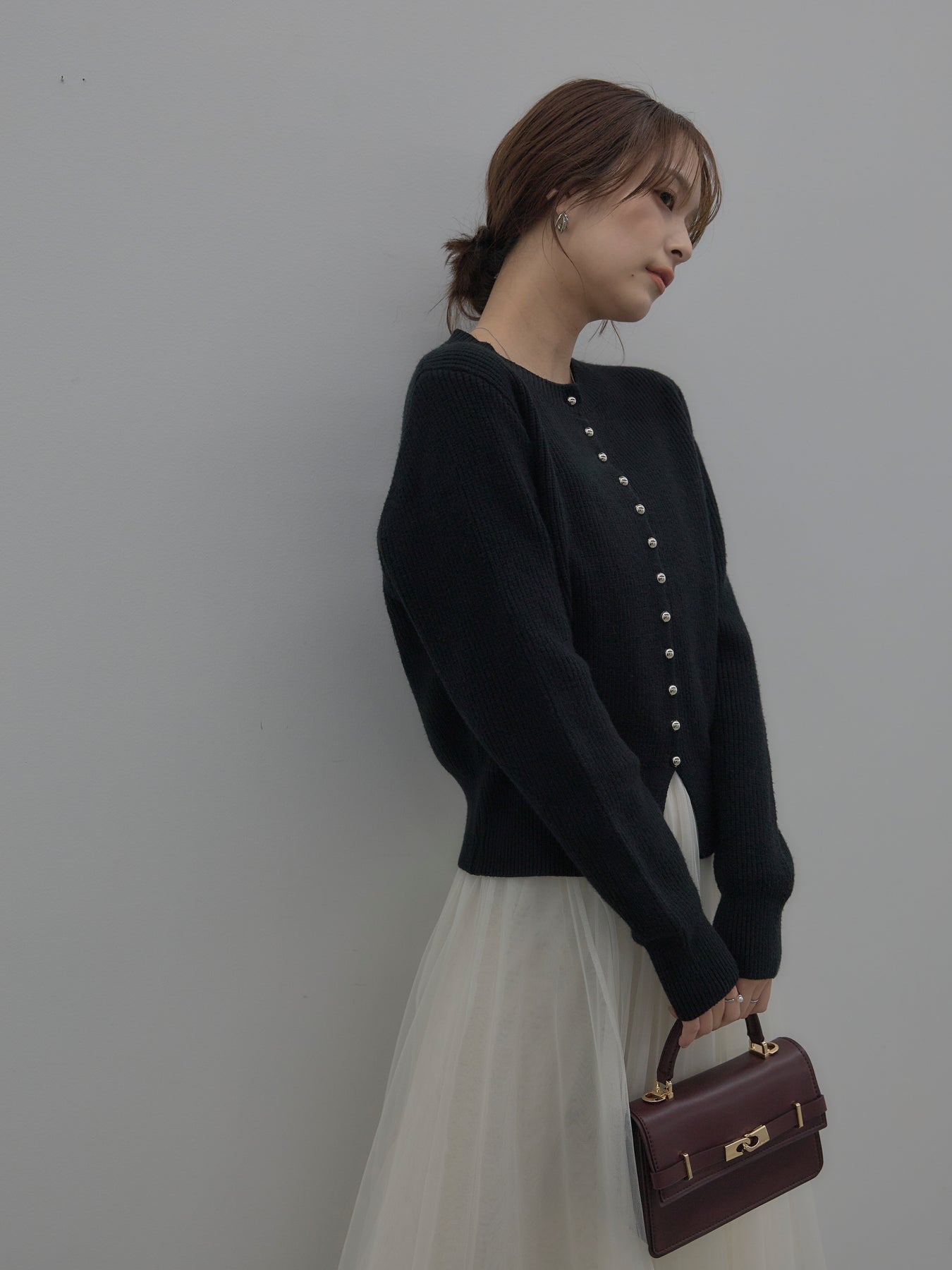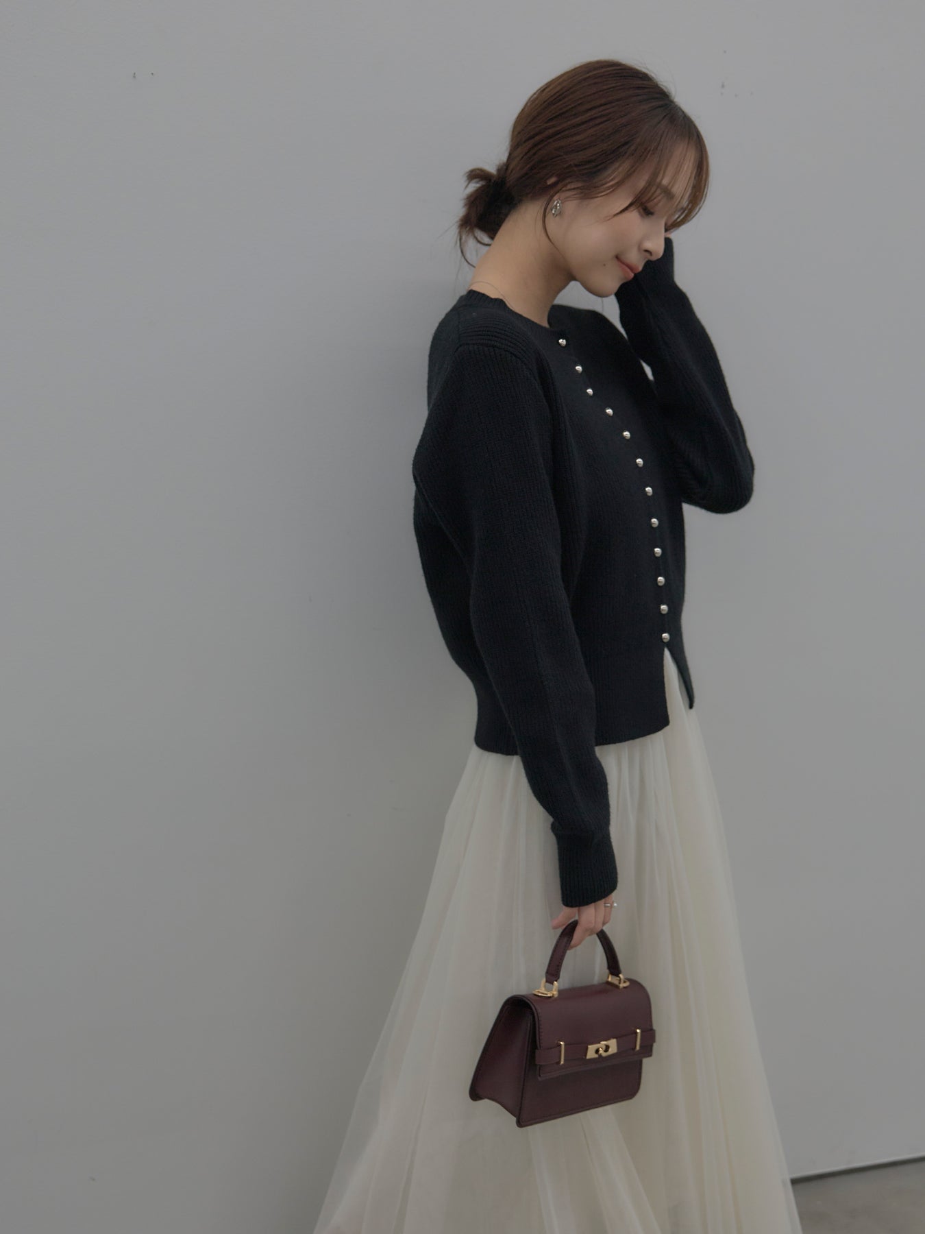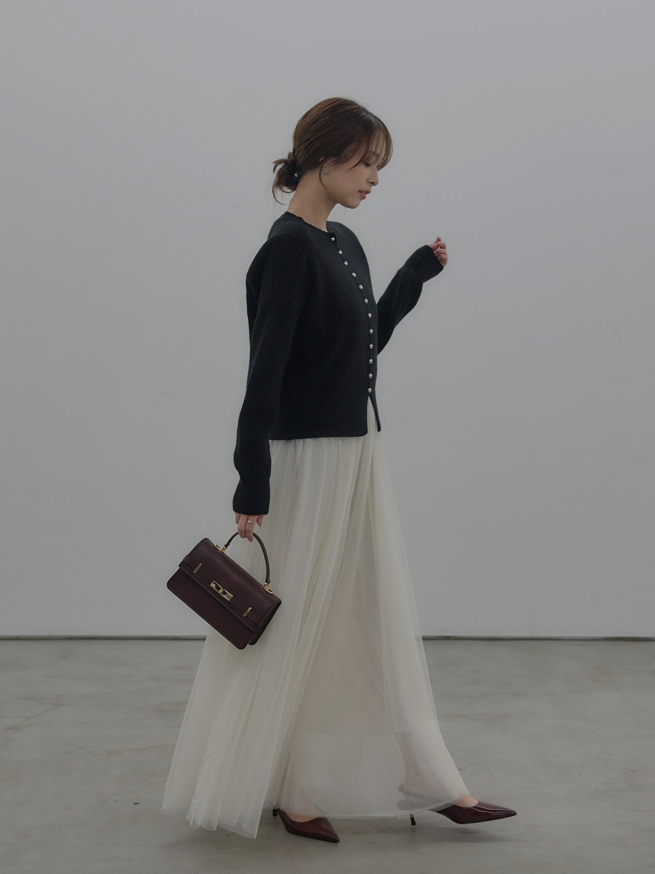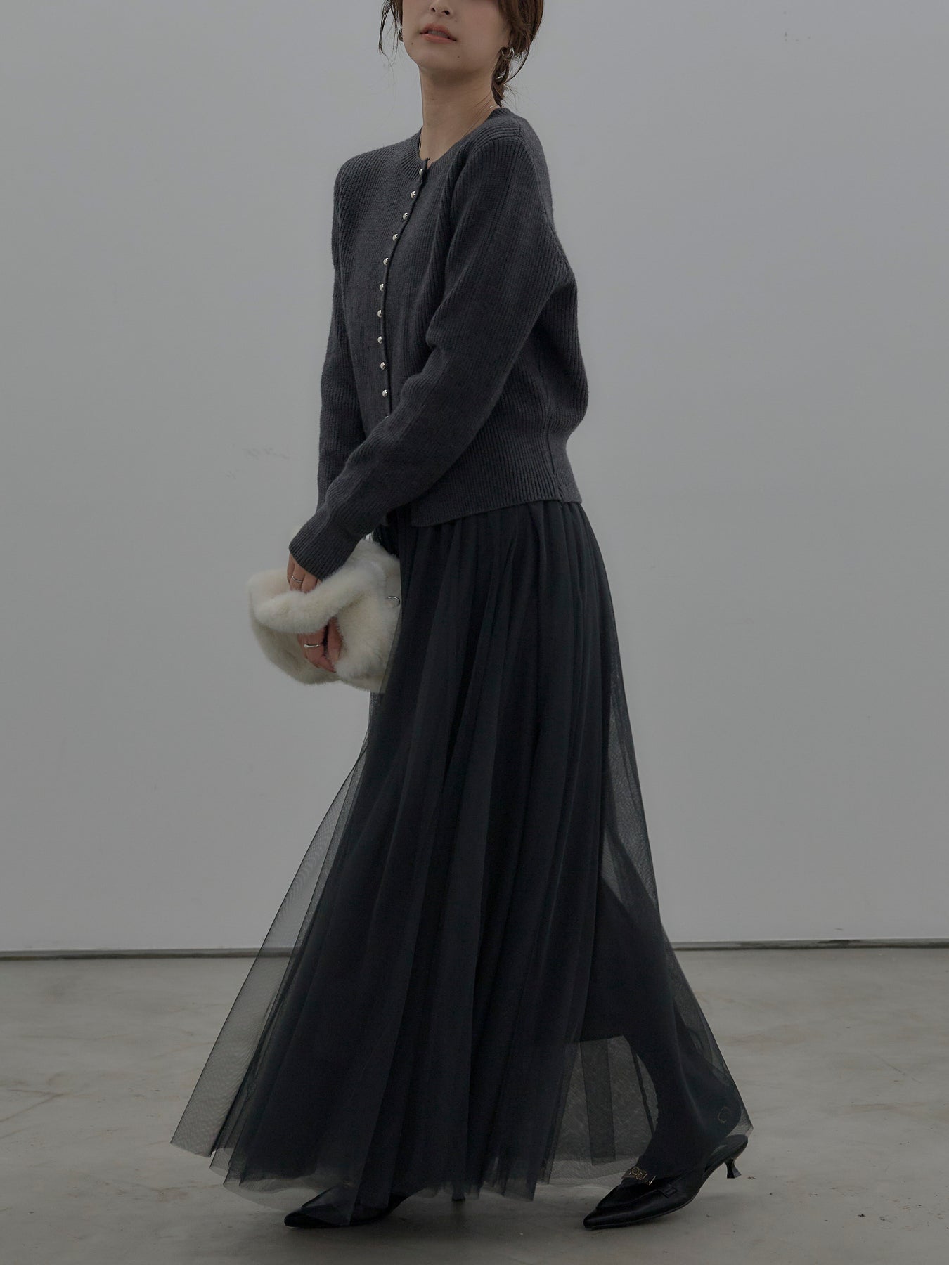 【SET】メタルボタンリブニットカーディガン+ボリュームチュールスカート(2set)