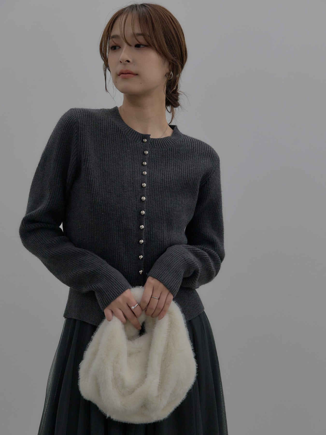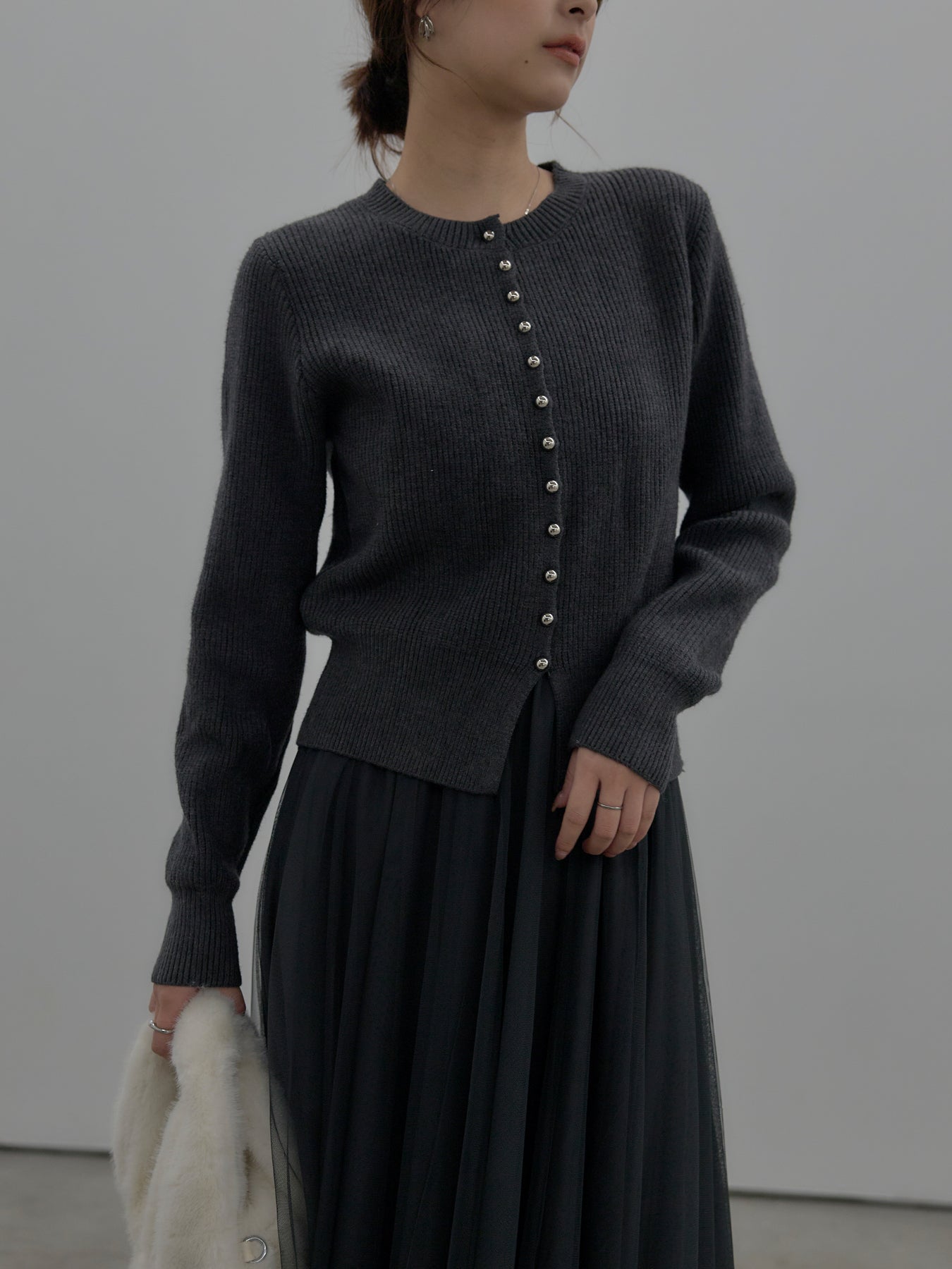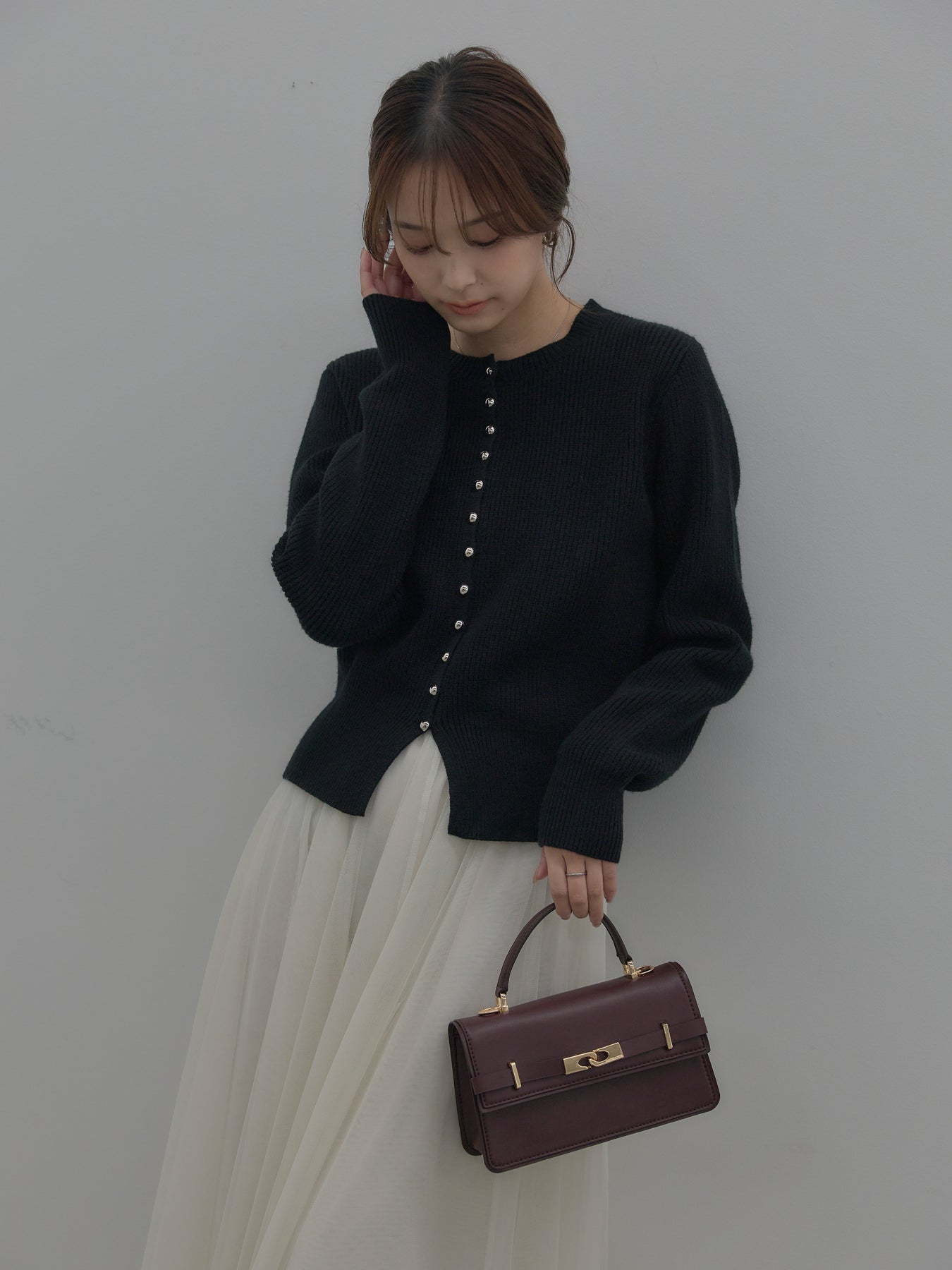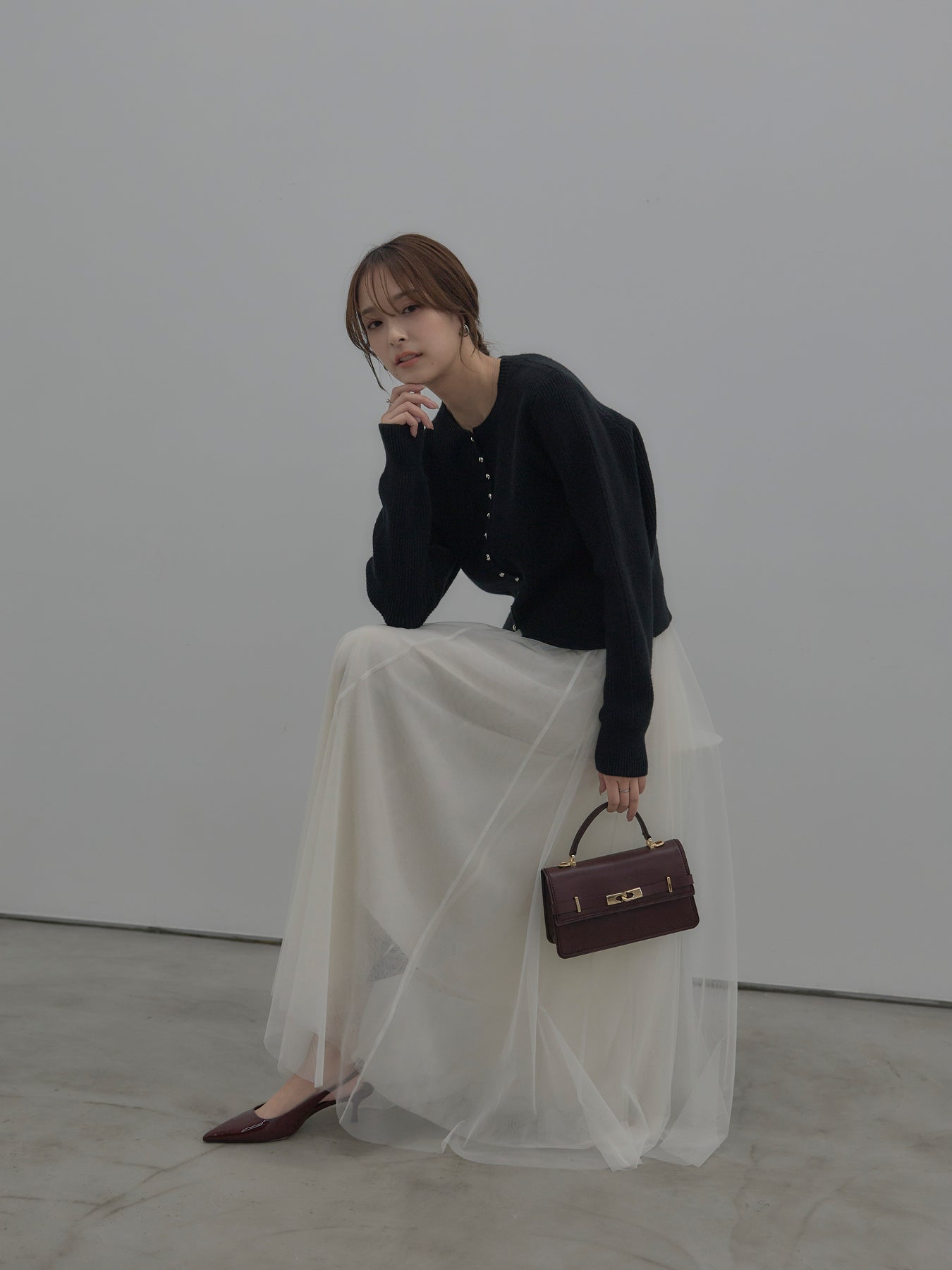 【SET】メタルボタンリブニットカーディガン+ボリュームチュールスカート(2set)