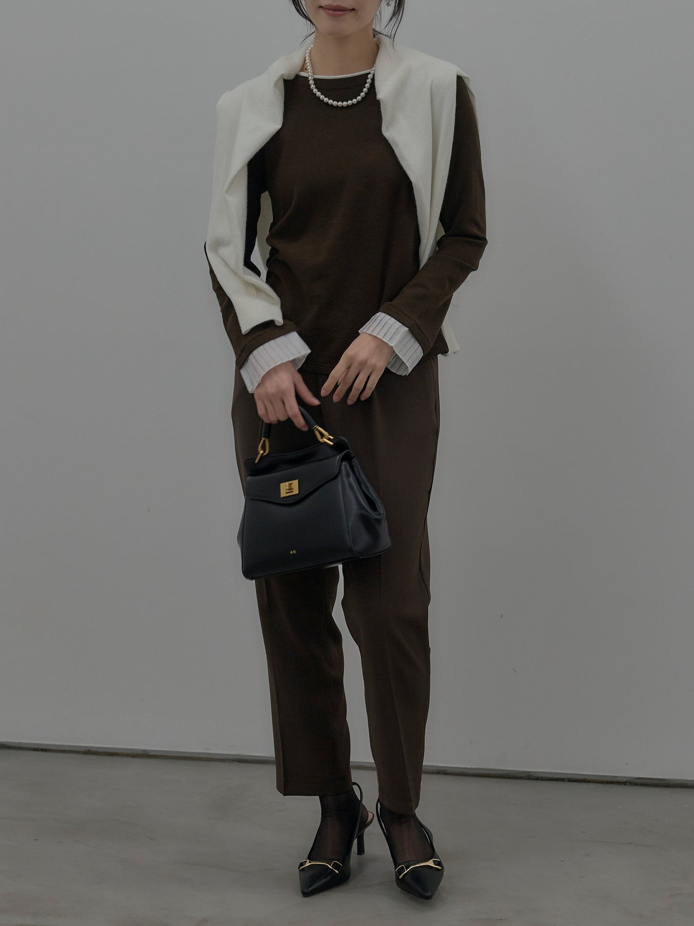 ウエストまわりをすっきり見せつつ、快適な穿き心地を叶えるバランスが魅力。