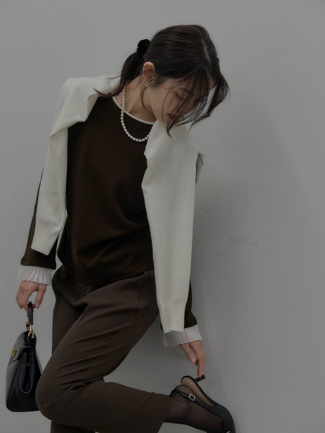 上からニットを重ねて袖を覗かせるのもおすすめです。