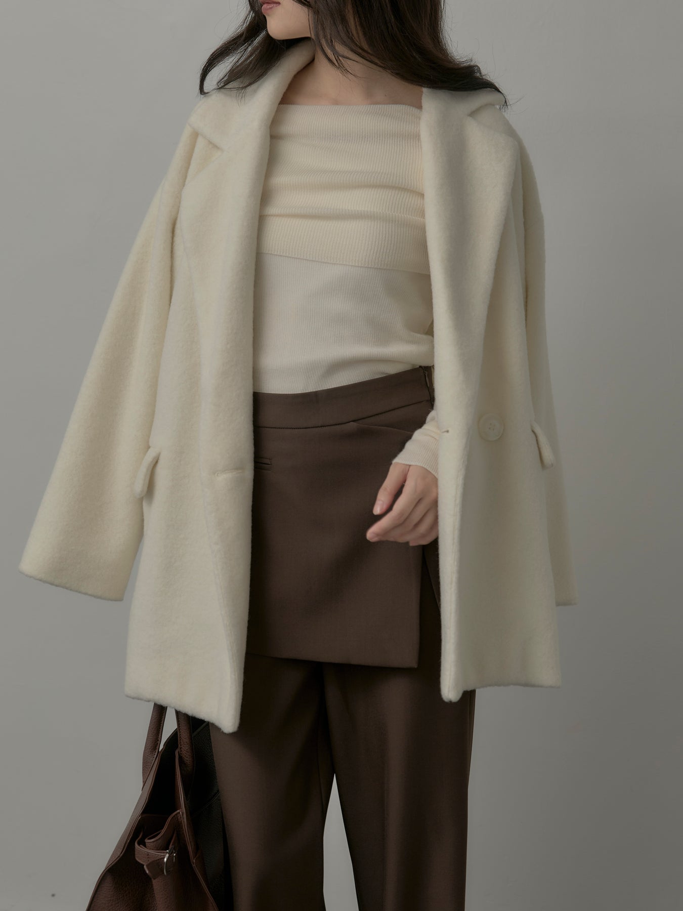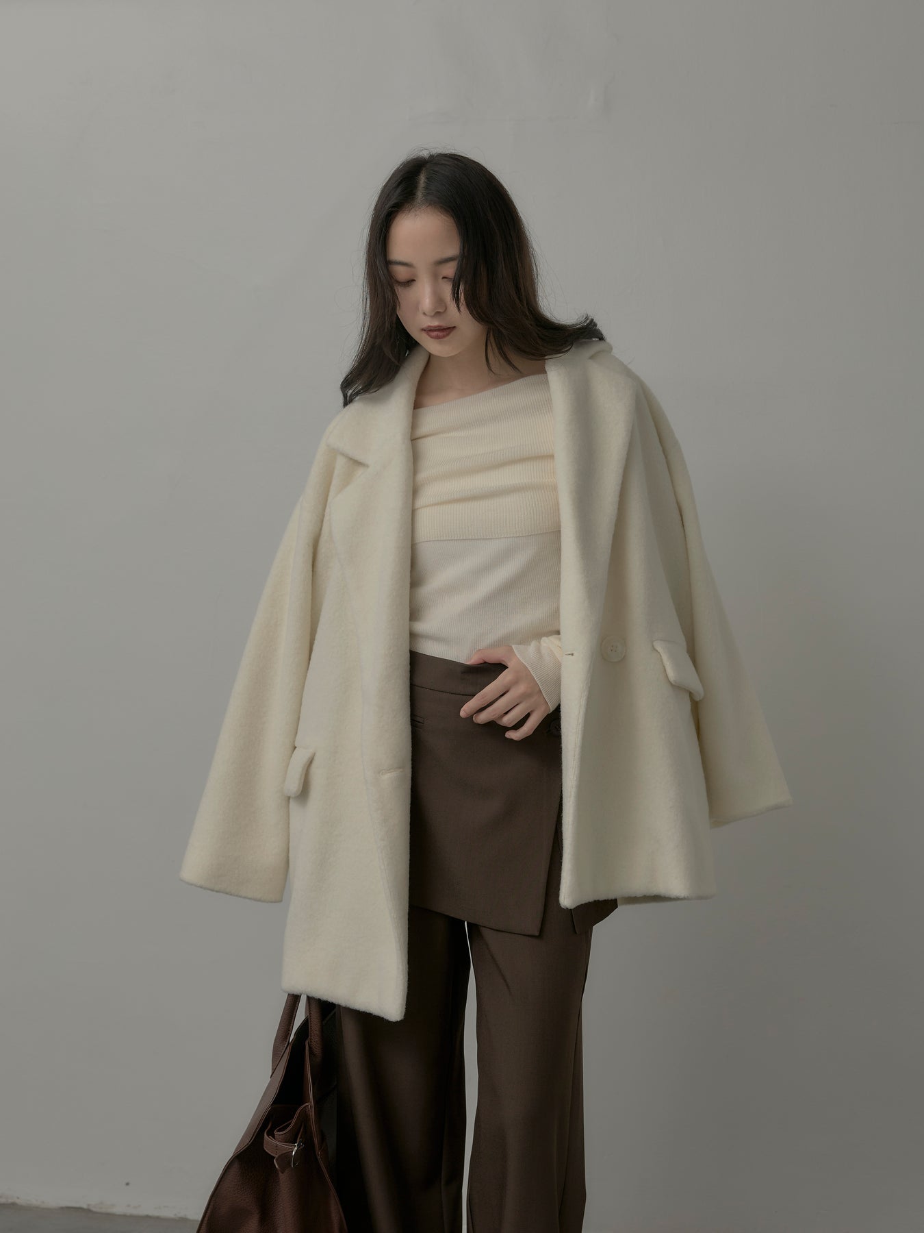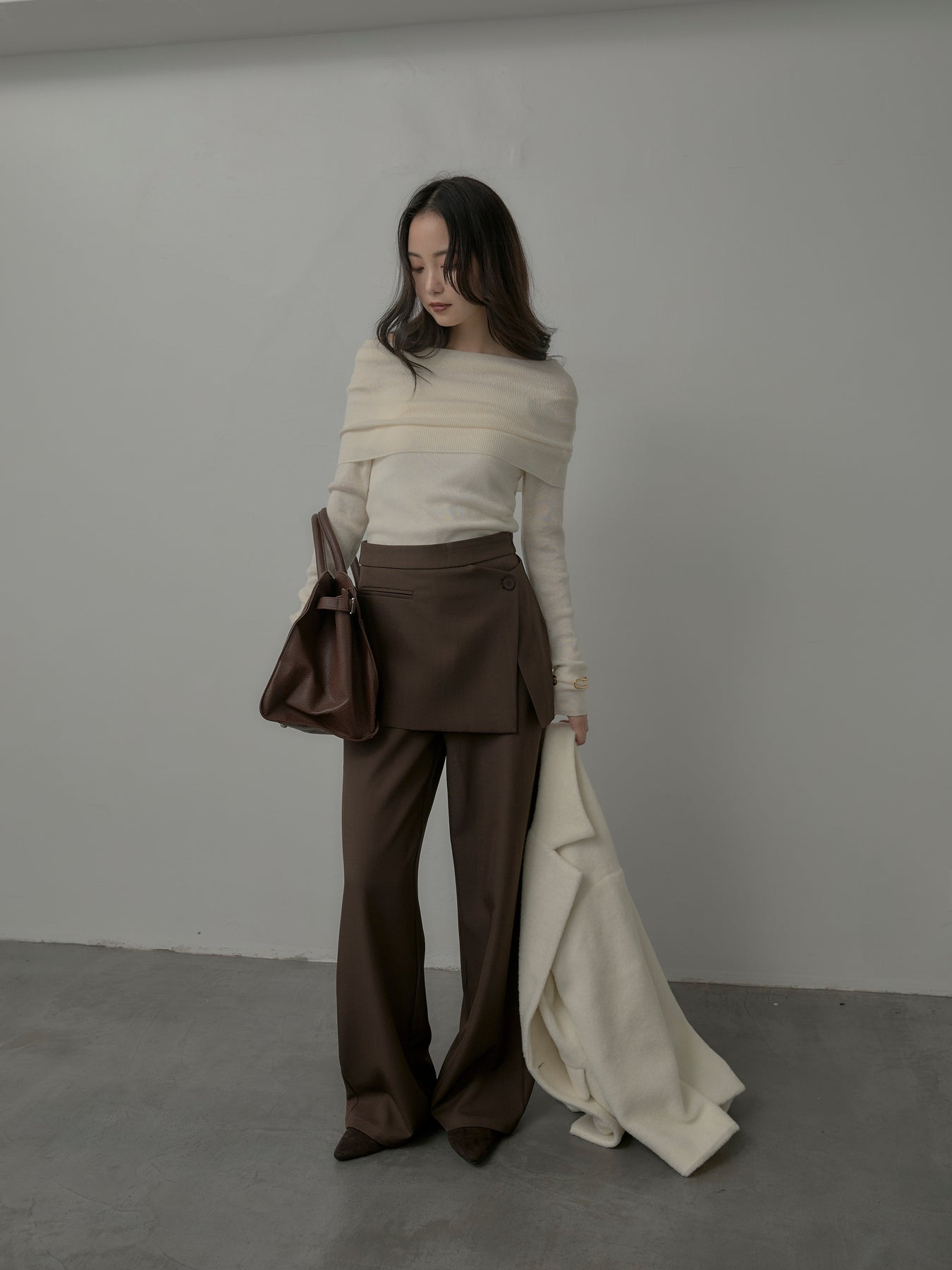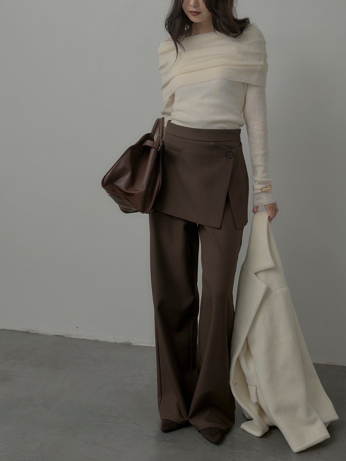 【SET】【Essential】オーバーサイズジャケットコート+オフショルリブニットトップス+ラップワイドパンツ(3set)
