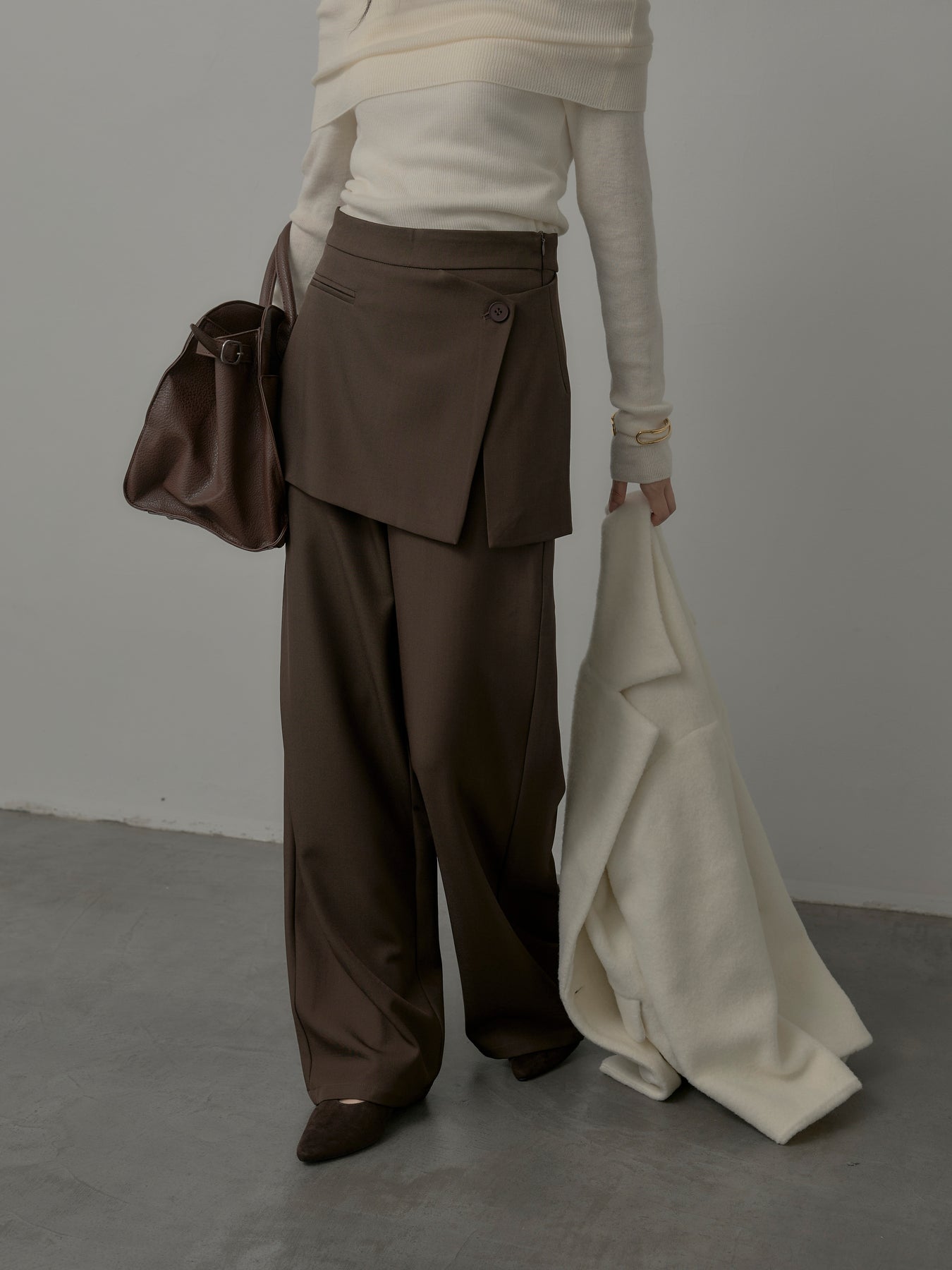 ラップデザインを取り入れたワイドパンツ。立体感のあるシルエットで、モード感と抜け感を兼ね備えたスタイリングを楽しめます。