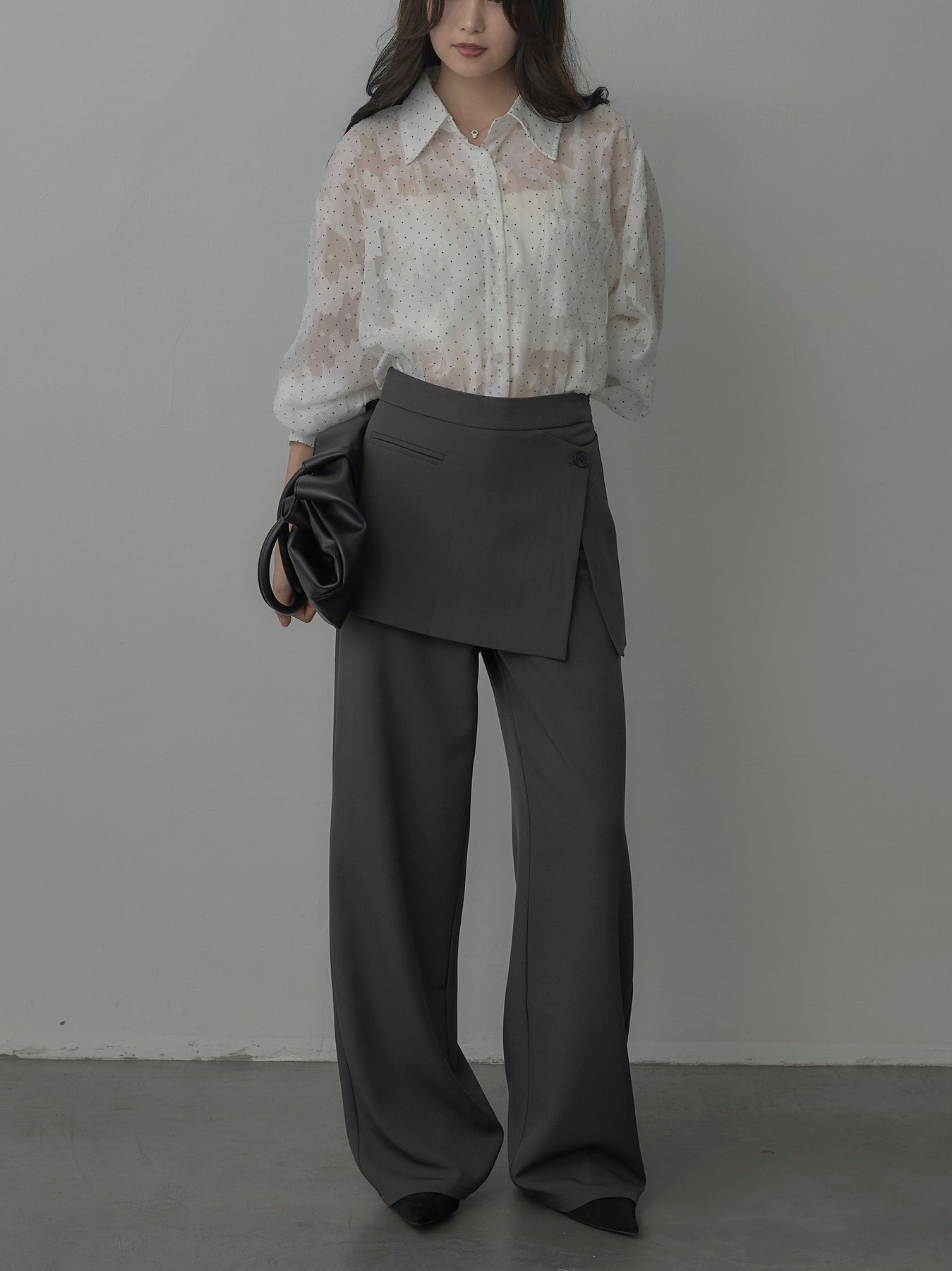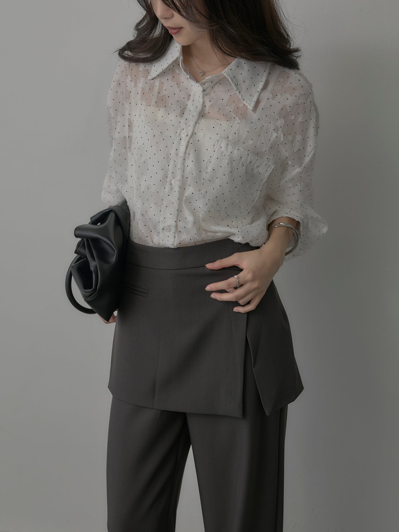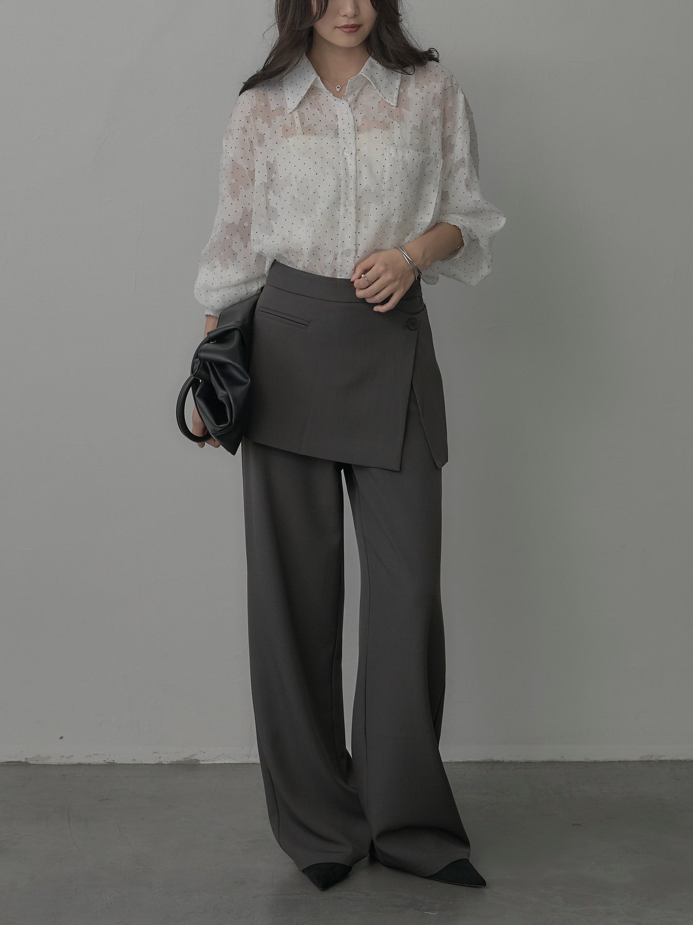 【SET】シアージャガードドットシャツ+ラップワイドパンツ(2set)