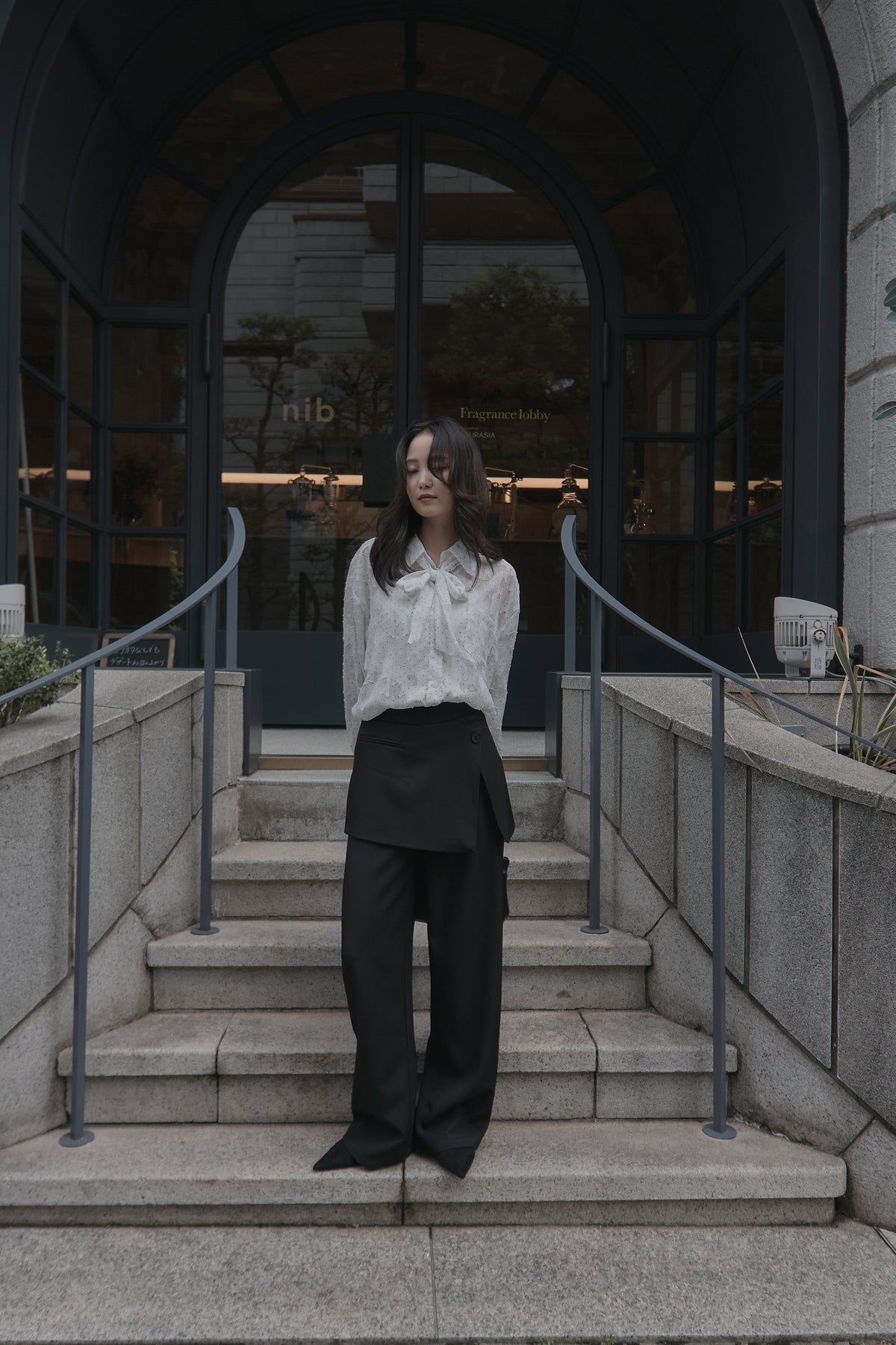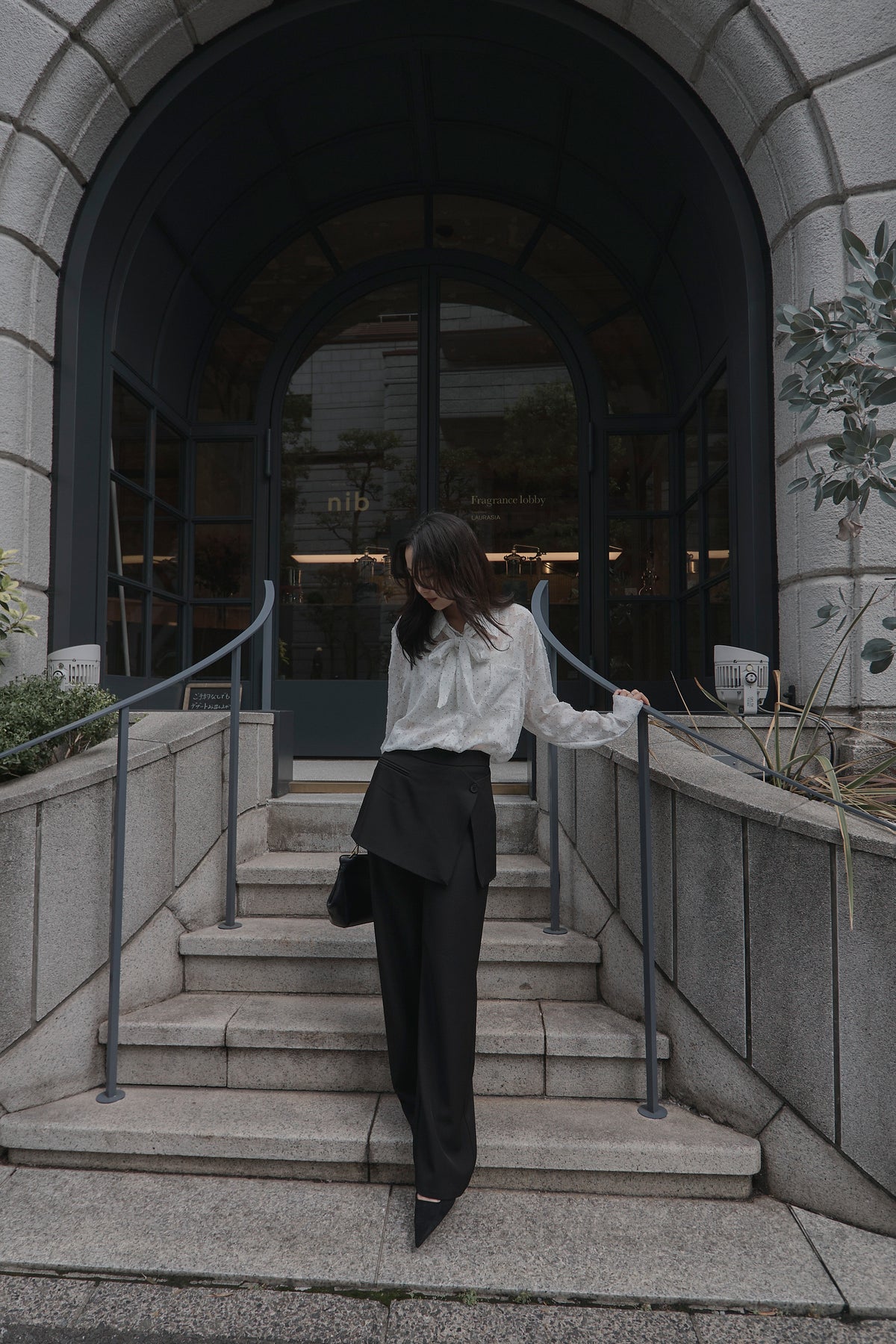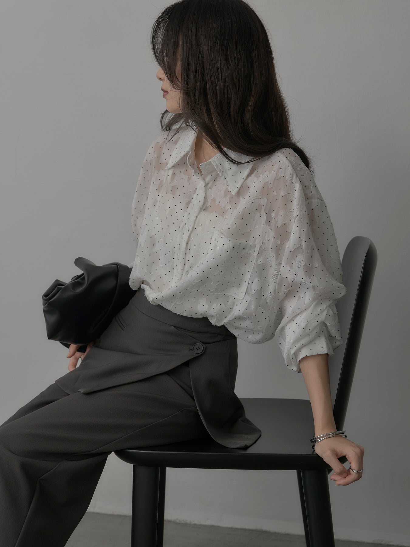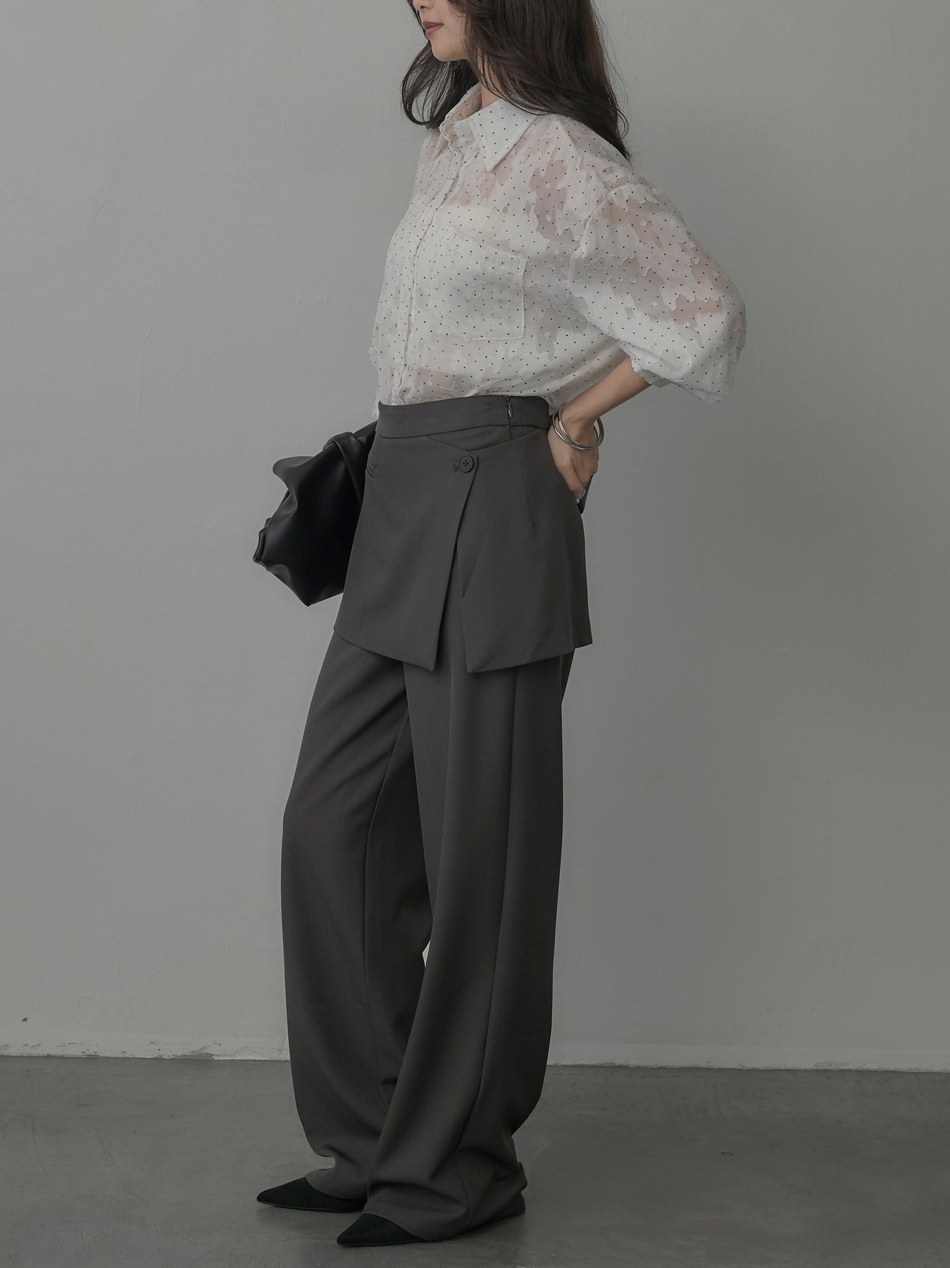 【SET】シアージャガードドットシャツ+ラップワイドパンツ(2set)