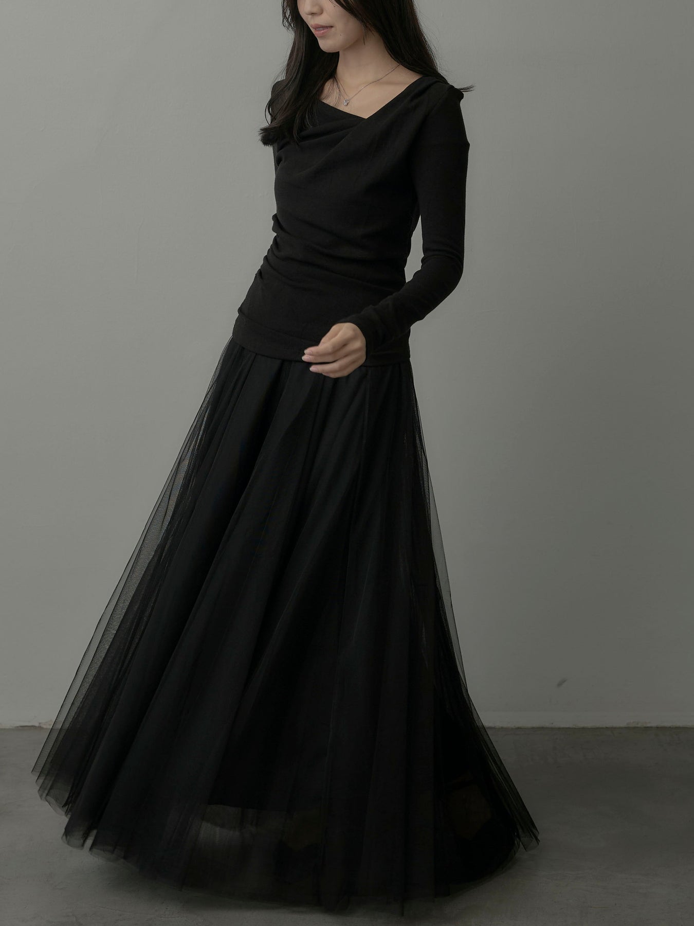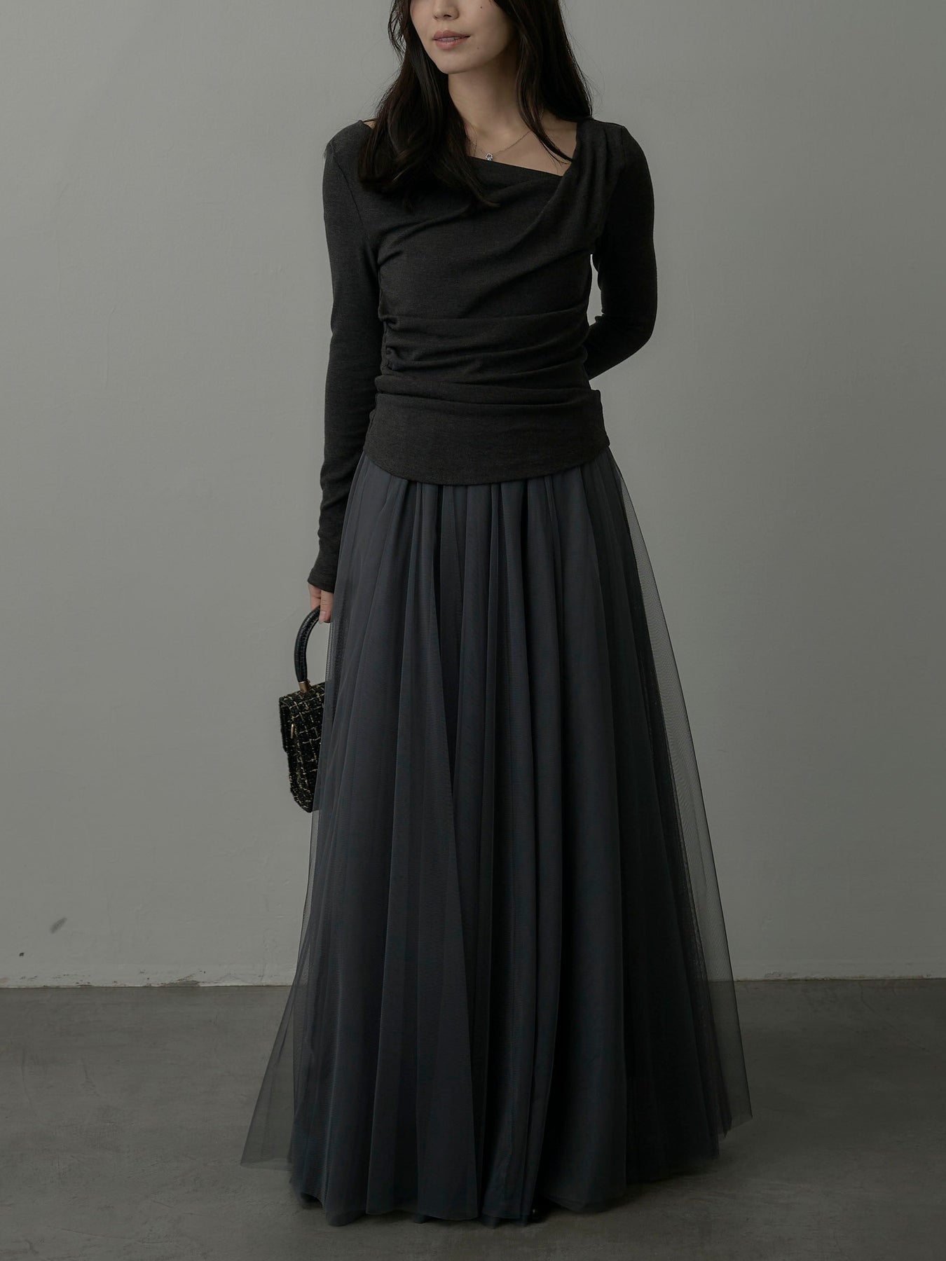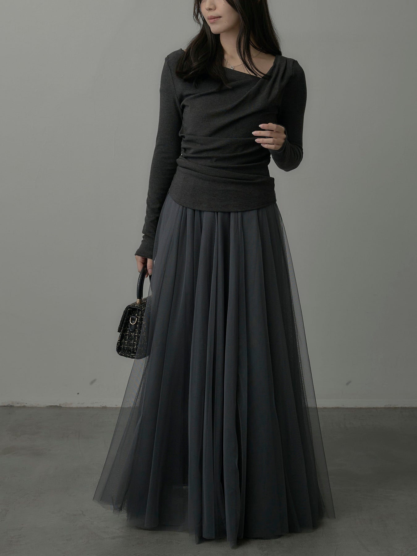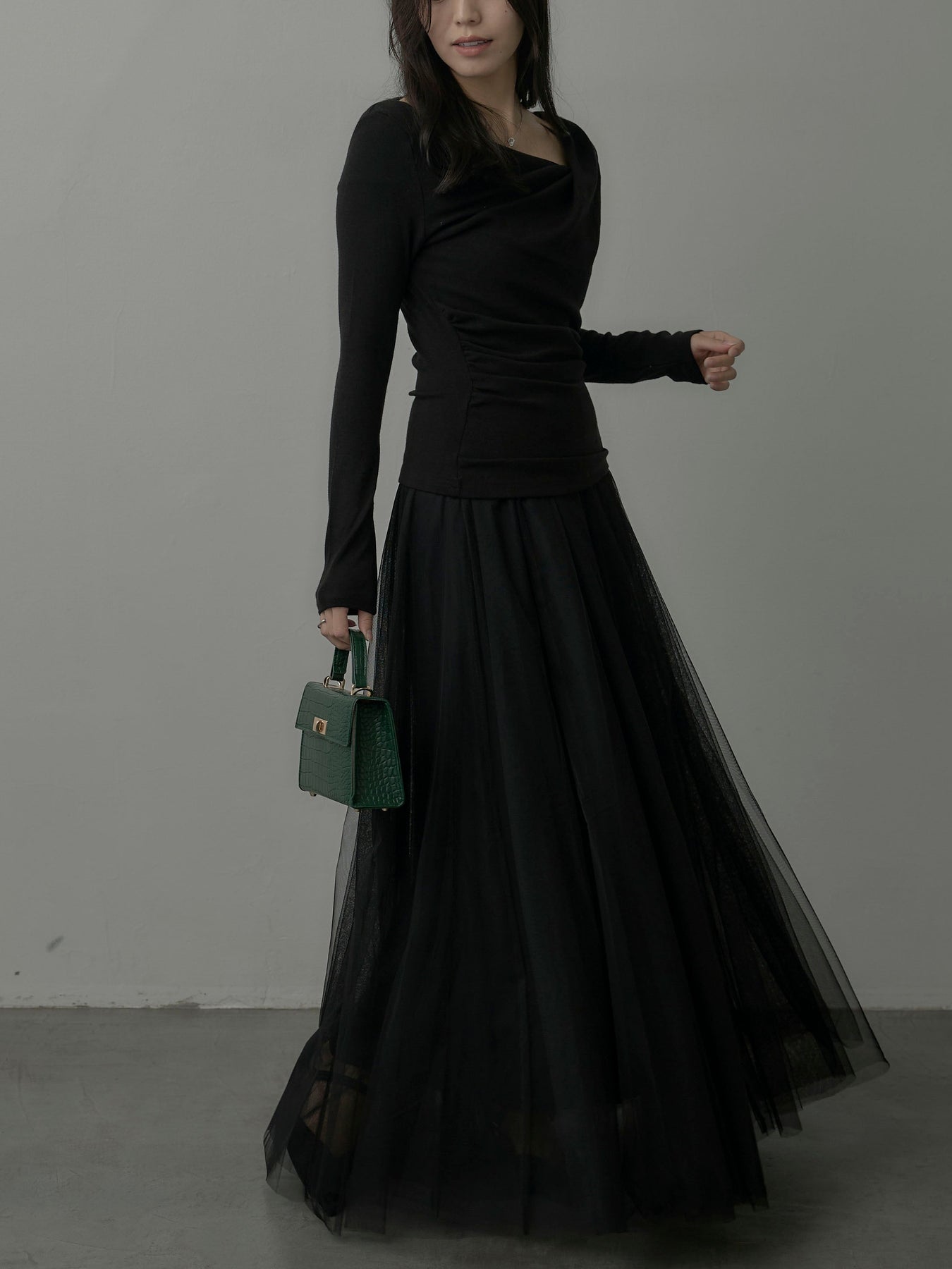 【SET】ドレープデザイントップス+ボリュームチュールスカート(2set)