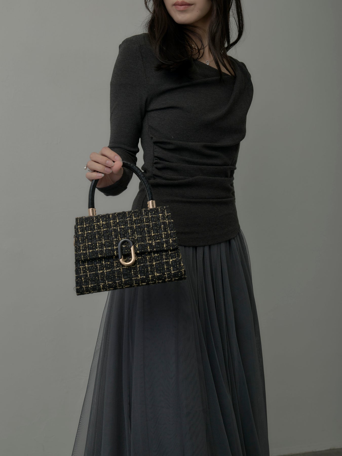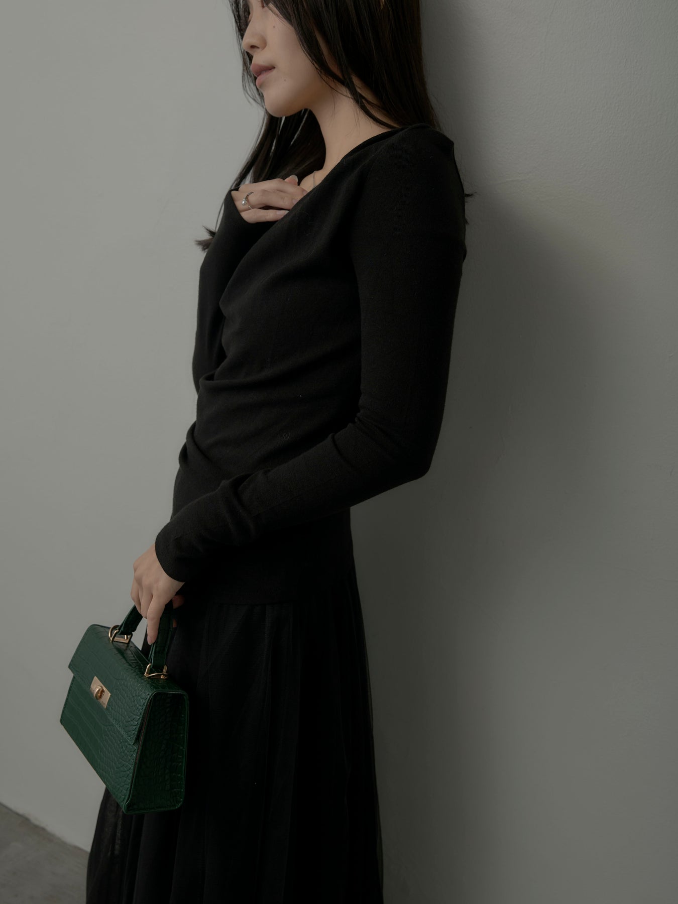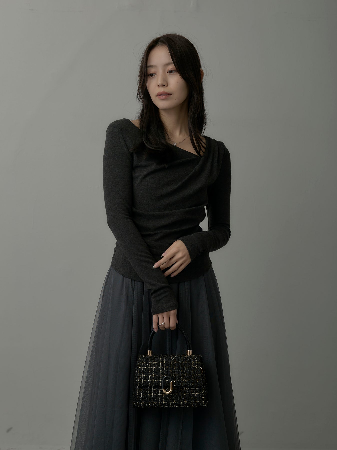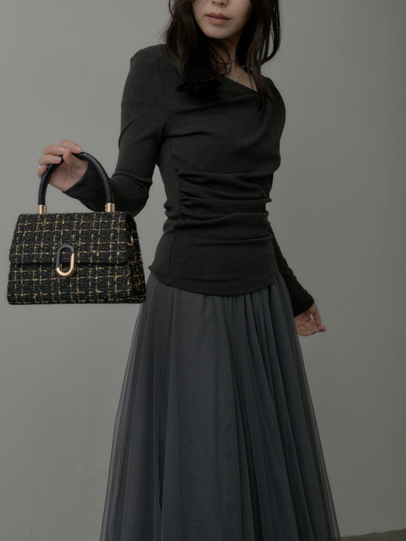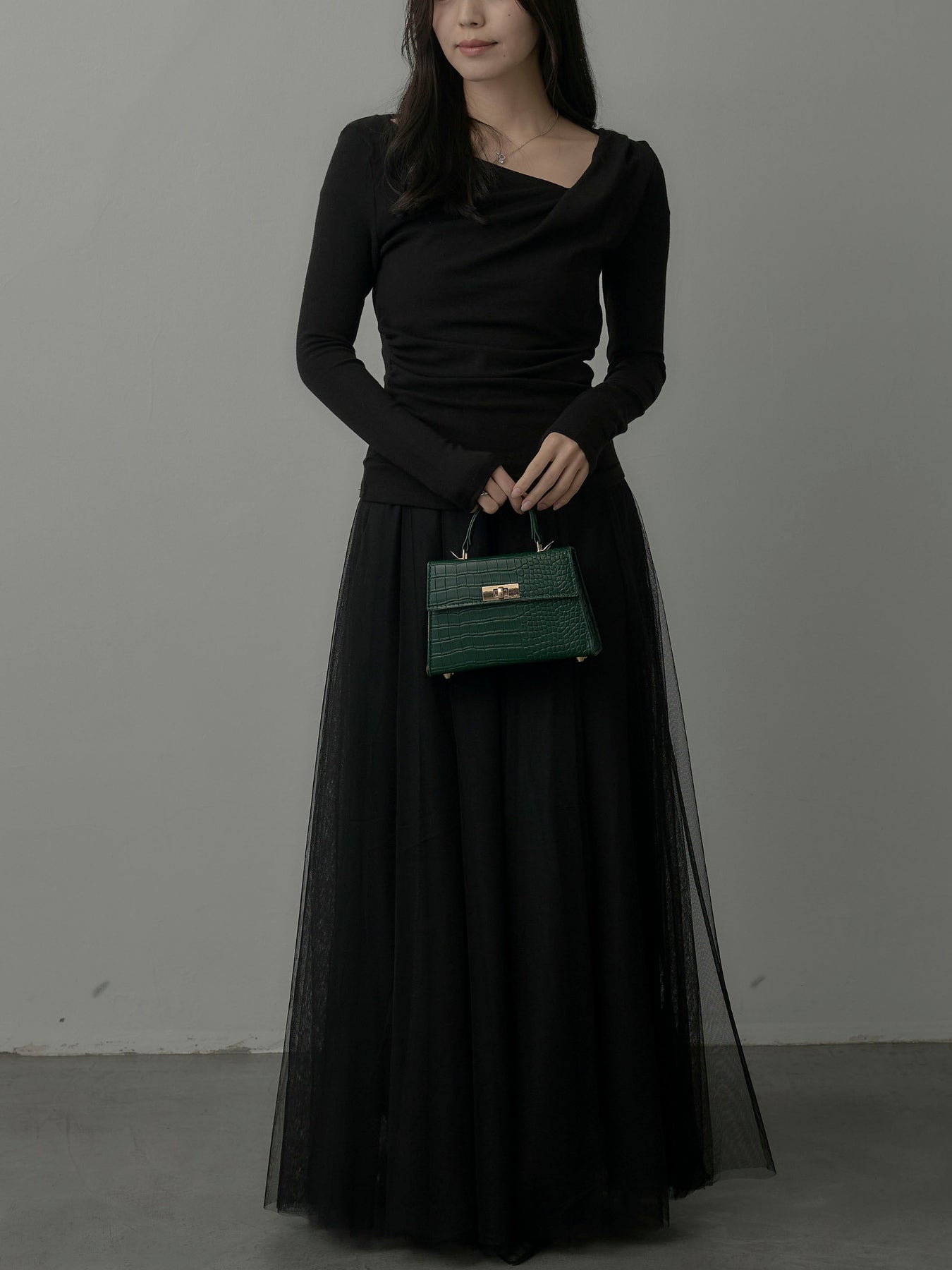 【SET】ドレープデザイントップス+ボリュームチュールスカート(2set)