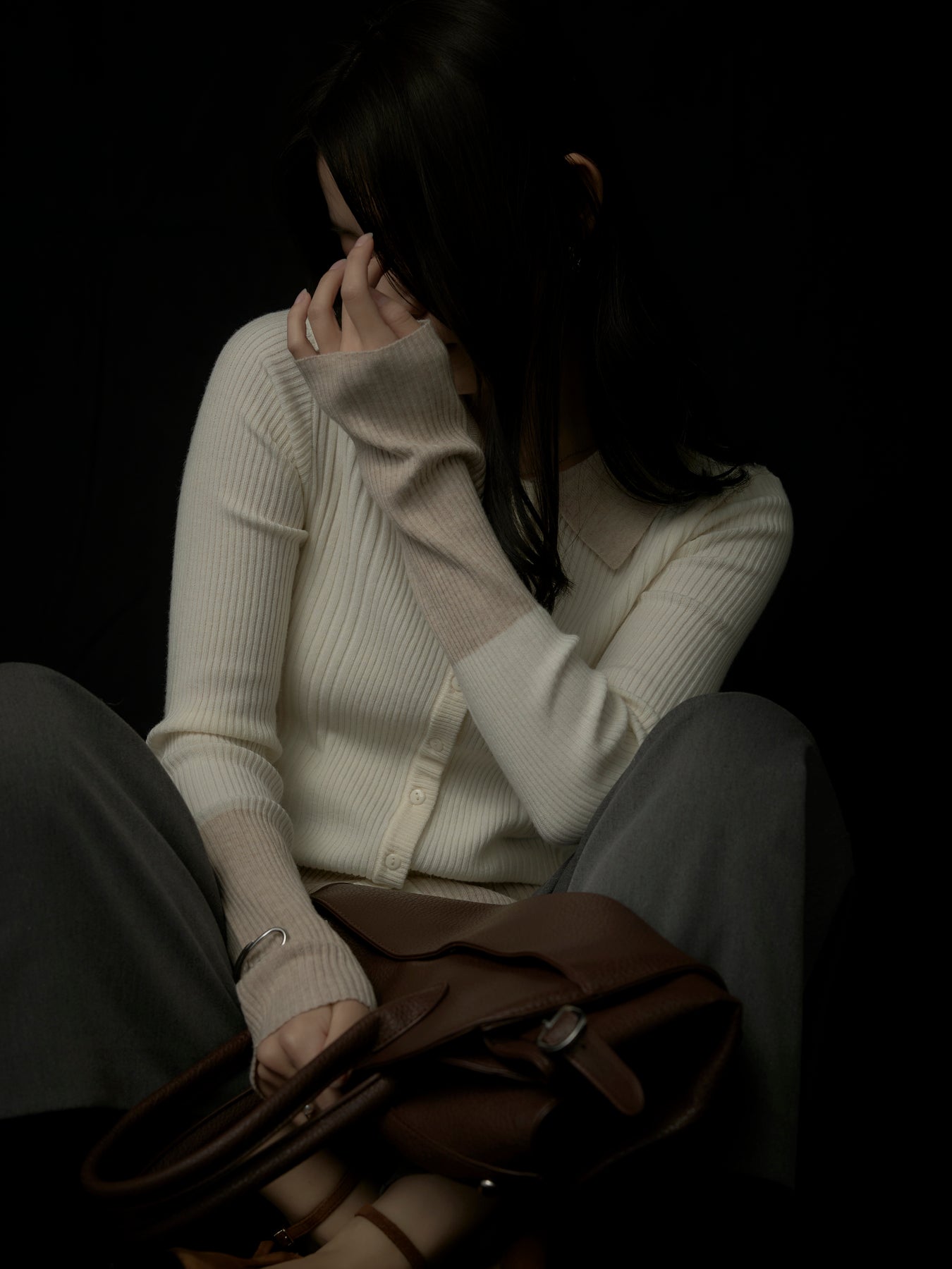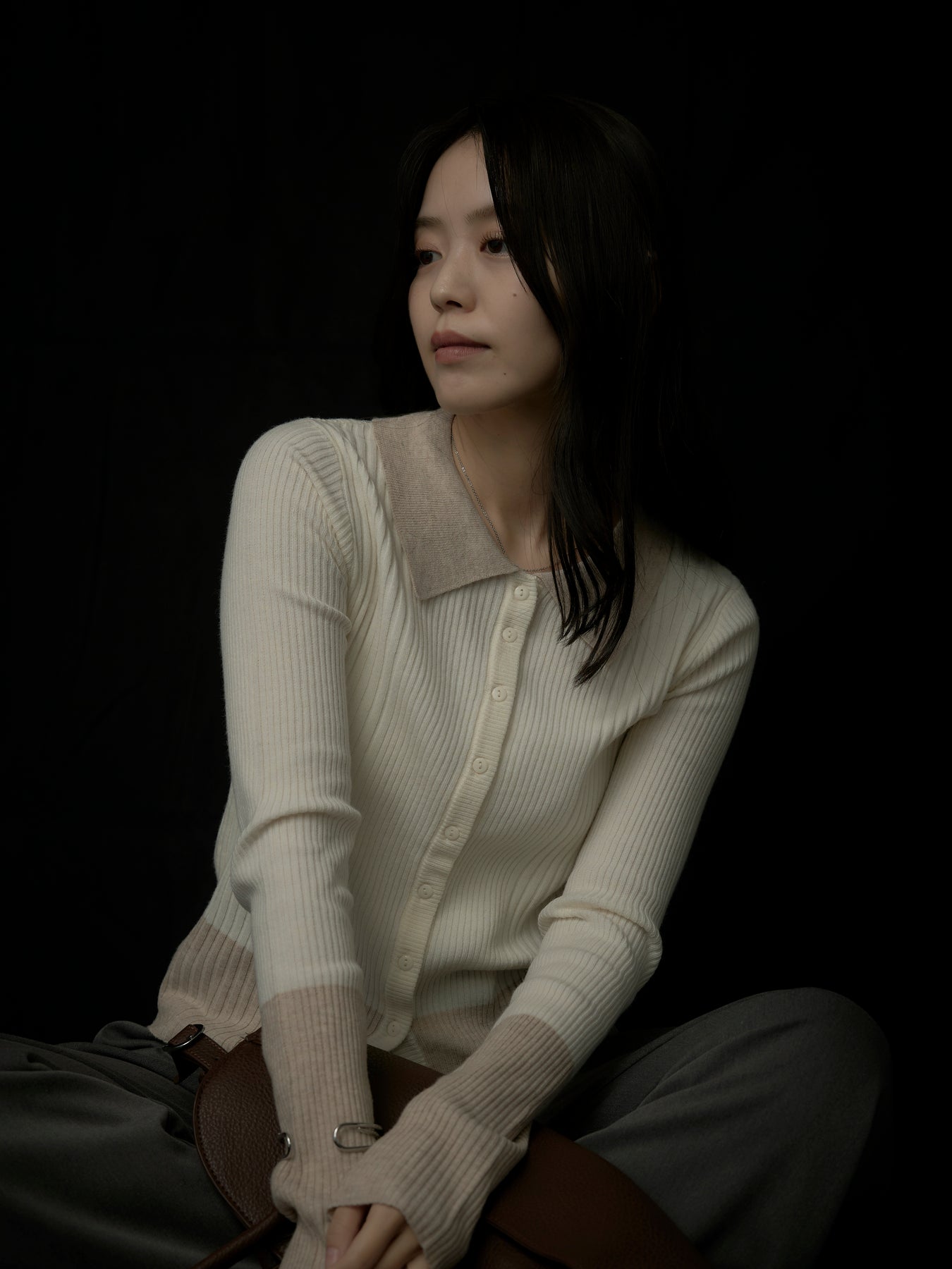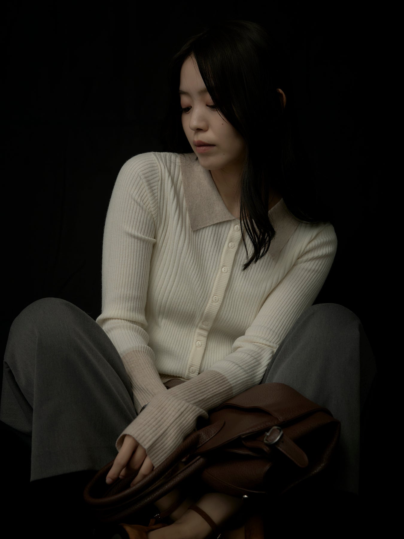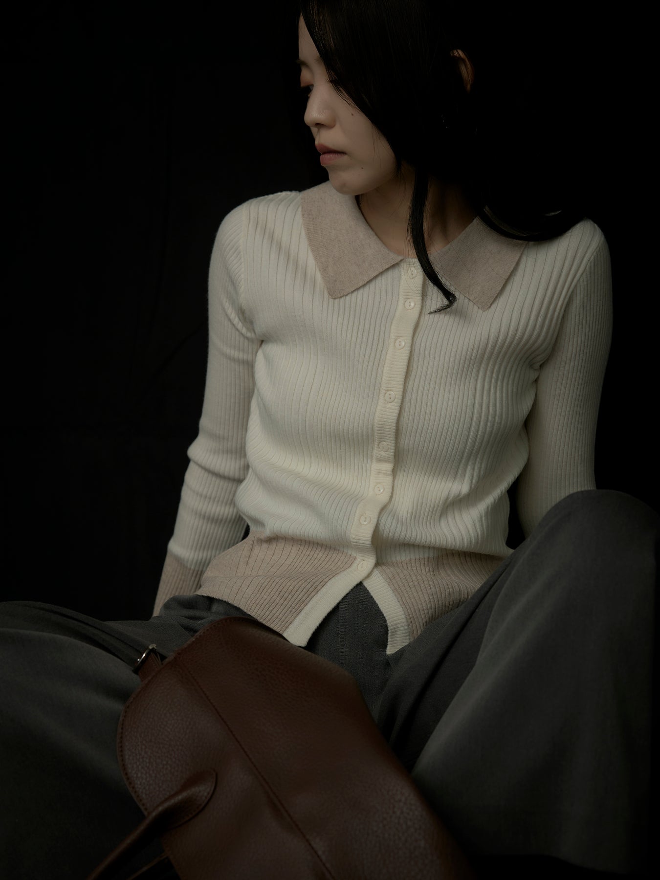 配色デザインが目を惹くバイカラーリブニットトップス。フィット感のあるシルエットがスタイルをすっきりと見せ、メリハリのある印象に。 襟付きのデザインで上品さを添えつつ、カジュアルにもきれいめにもマッチする一枚。