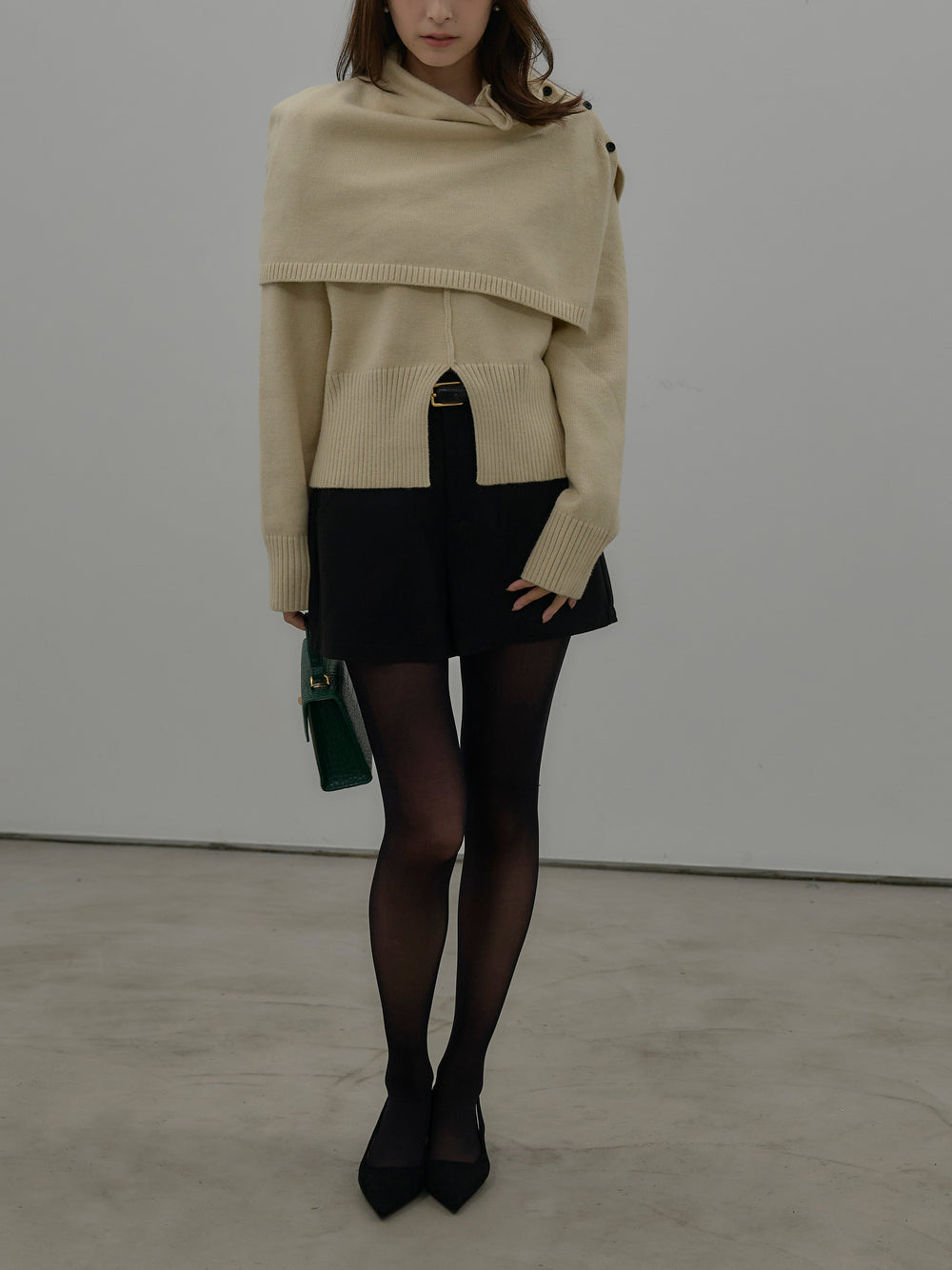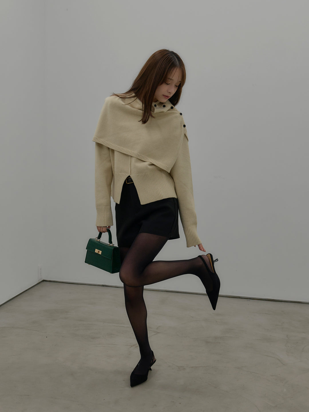【SET】ケープ付き2WAYフロントスリットニットトップス+ウールタッチミニショートパンツ(2set)