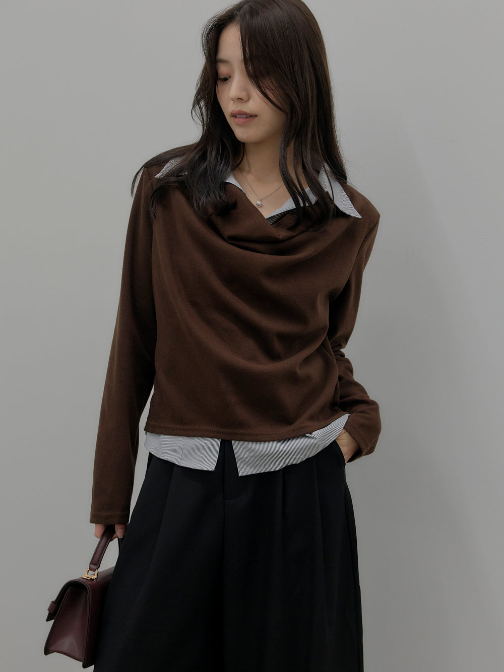 【SET】シャツレイヤードドレープニットトップス+シャツレイヤードドレープニットトップス(2set)