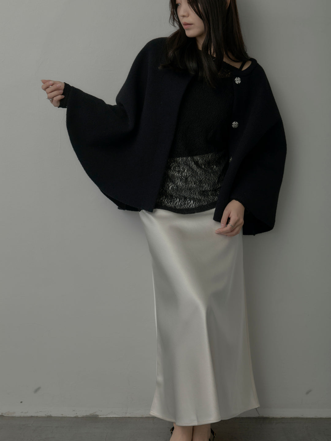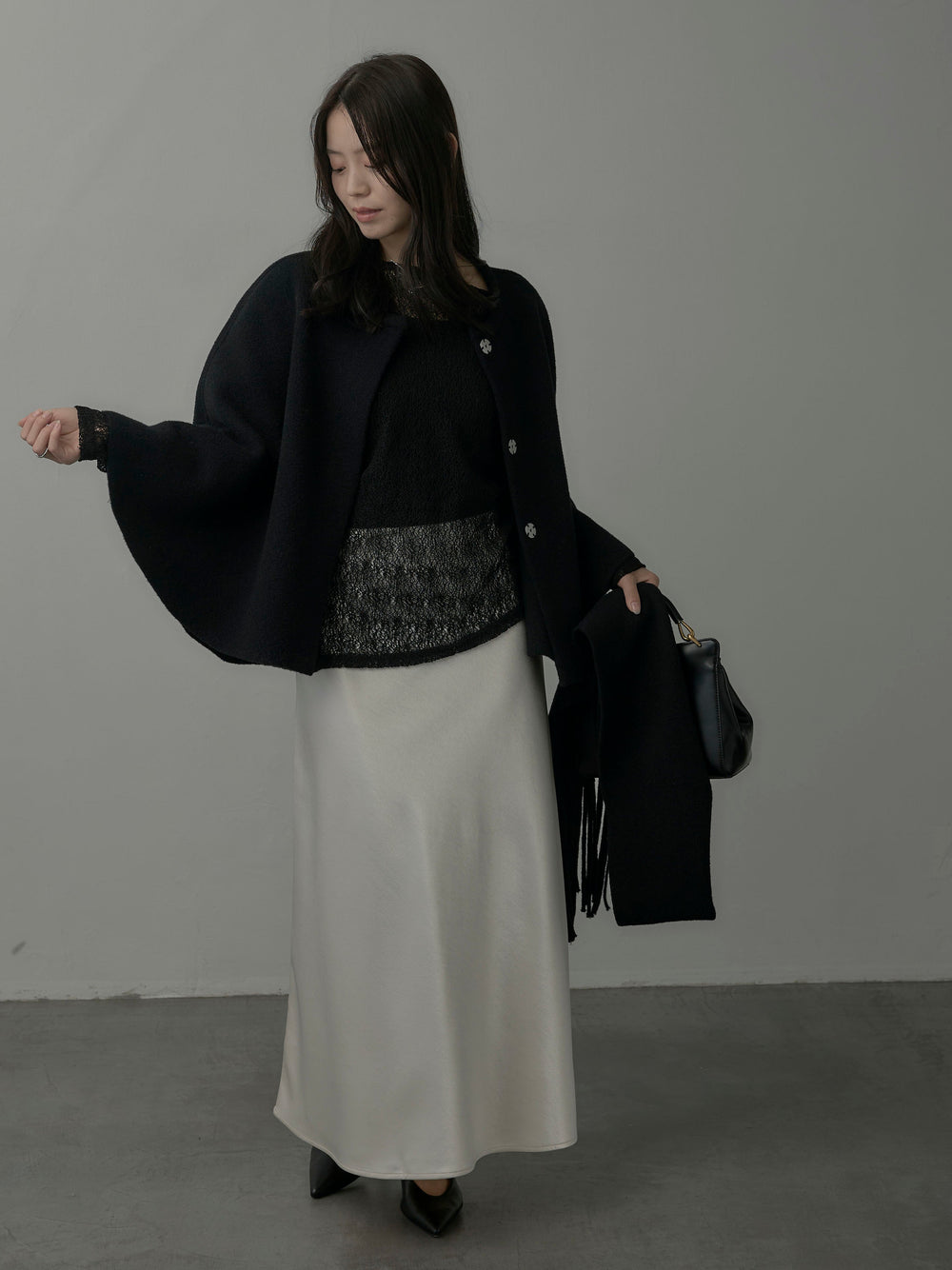 【SET】マフラー付き2WAYケープコート+【インナー付き】シアーレーストップス+ヘビーサテンAラインスカート(3set)