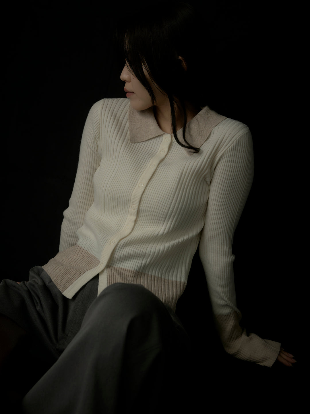 【SET】ニットシャツドッキングオフショルトップス+ニットシャツドッキングオフショルトップス(2set)