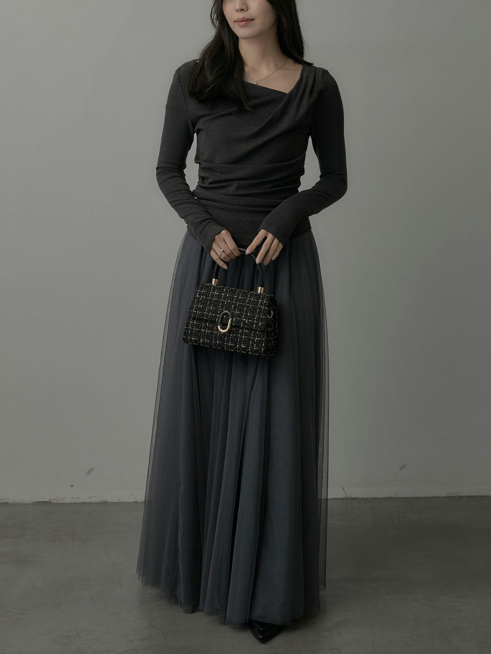 【SET】ドレープデザイントップス+ボリュームチュールスカート(2set)